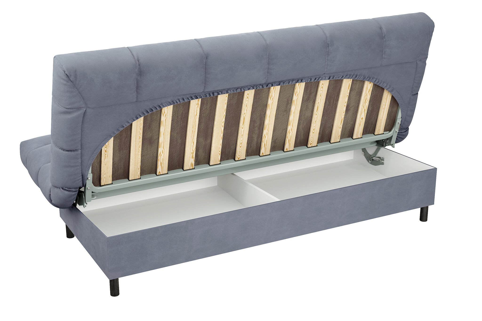 Диван раскладывается при помощи удобного и надежного механизма «Клик-клак». Он отличается долговечностью и простотой эксплуатации. В результате трансформации получается ровное, широкое и удобное спальное место.
