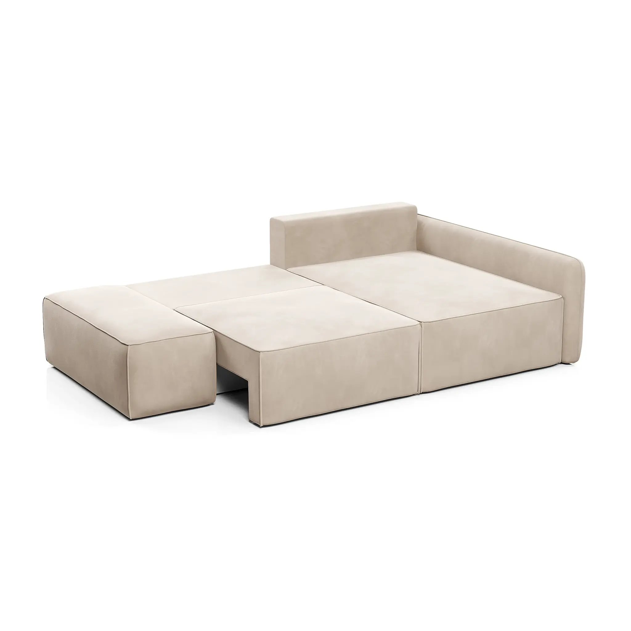 Диван раскладывается при помощи удобного и надежного механизма «еврокнижка». Он отличается долговечностью и простотой эксплуатации. В результате трансформации получается ровное, широкое и удобное спальное место. Чтобы разложить диван, достаточно выдвинуть на себя сиденье и опустить спинку. Каждый модуль раскладывается отдельно.