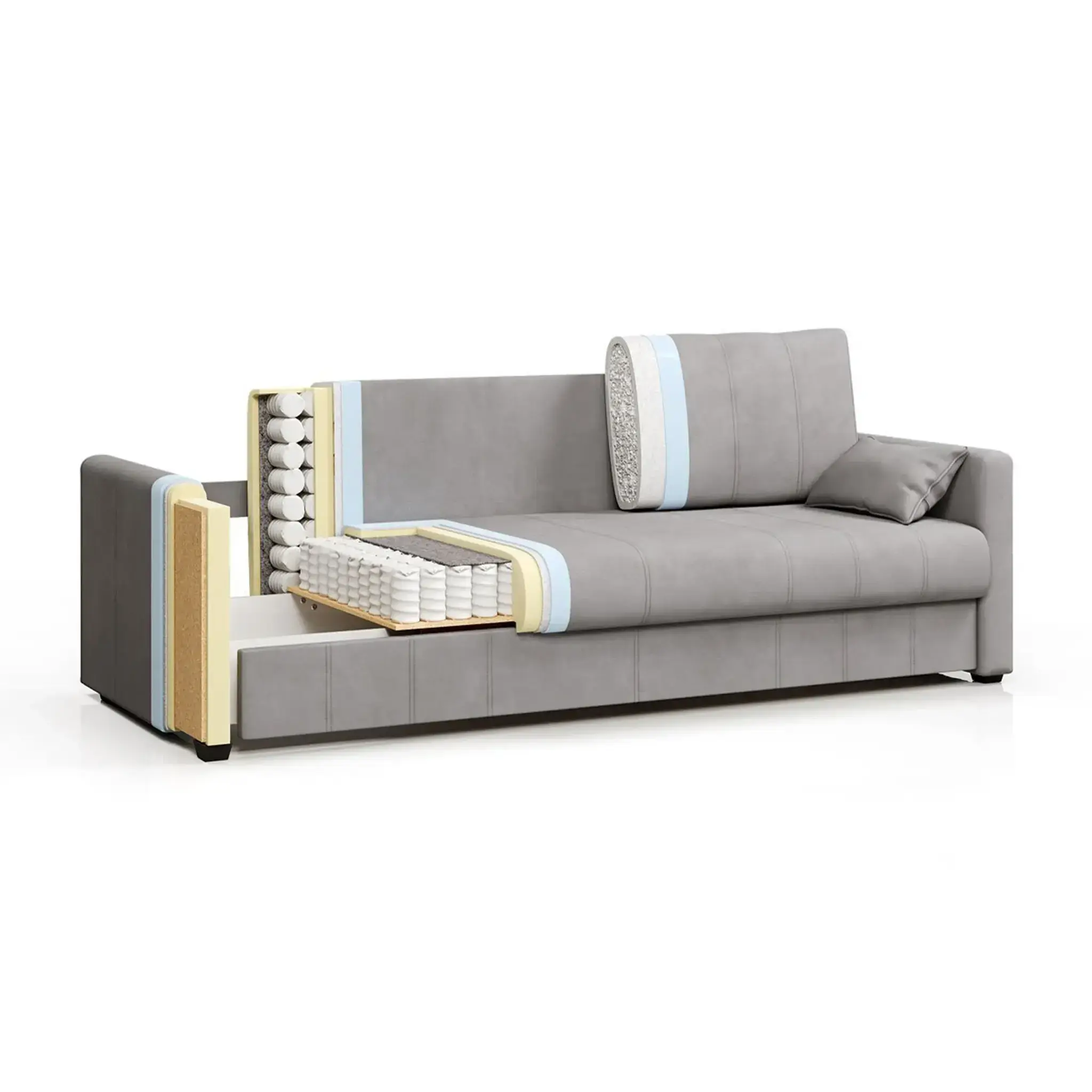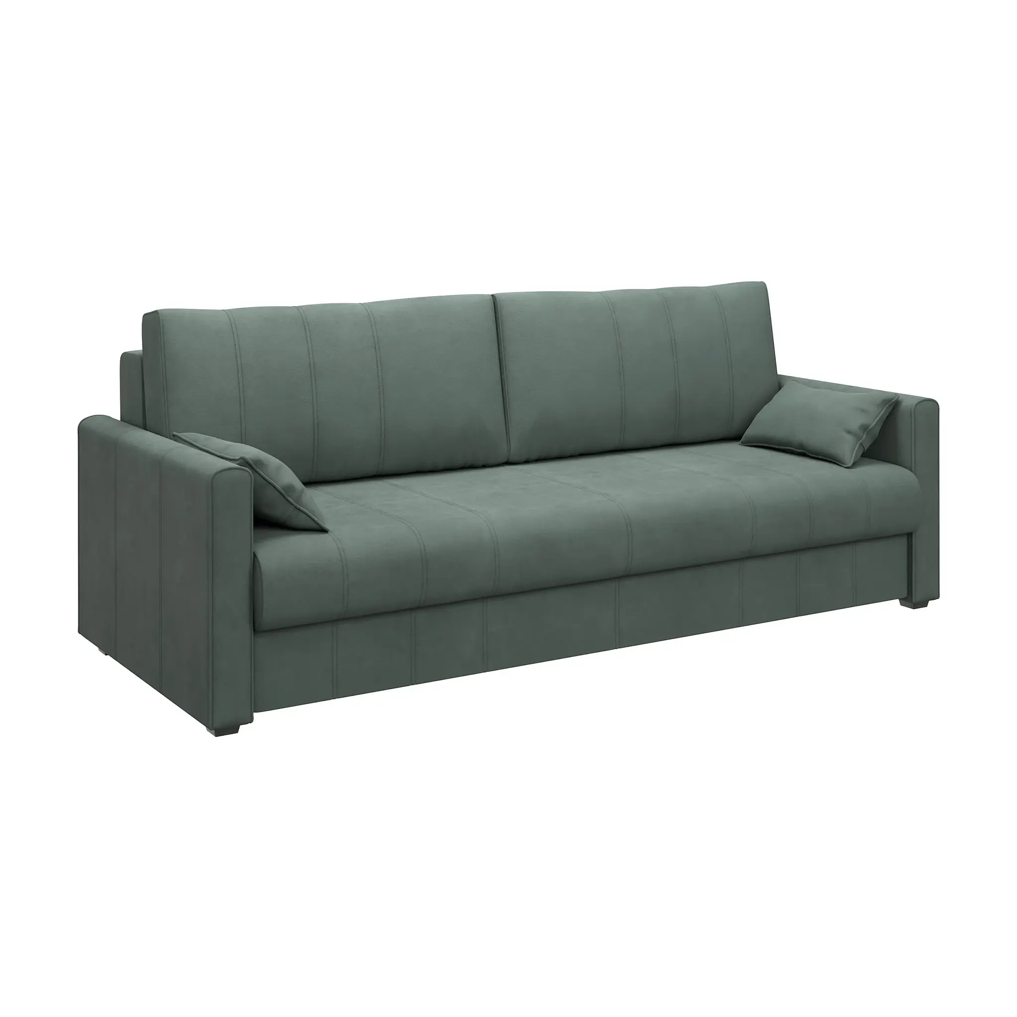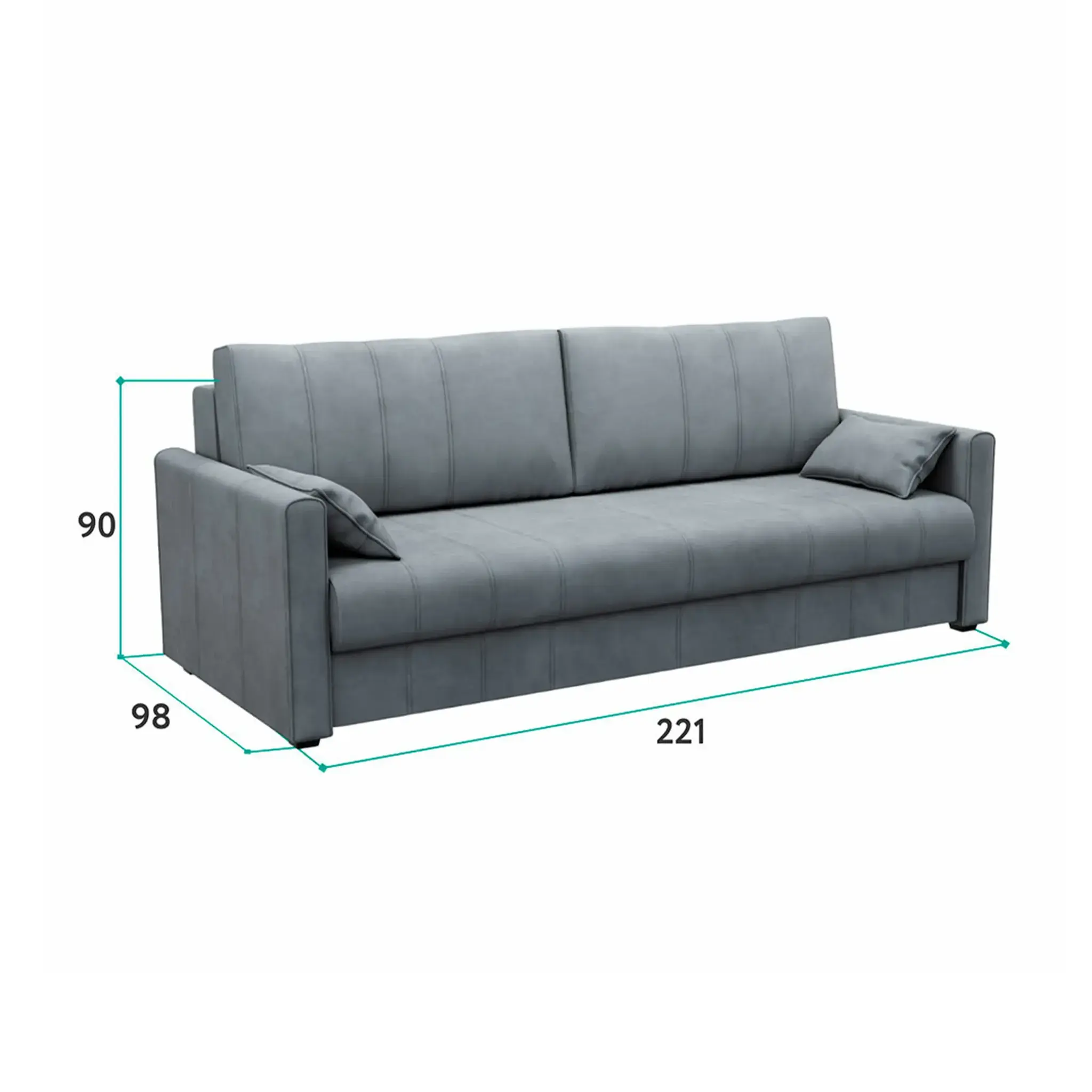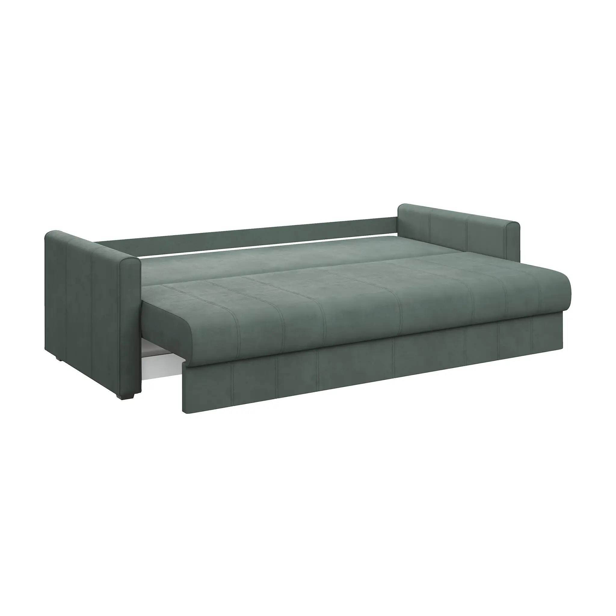 Диван раскладывается при помощи удобного и надежного механизма «еврокнижка». Он отличается долговечностью и простотой эксплуатации. В результате трансформации получается ровное, широкое и удобное спальное место. Чтобы разложить диван, достаточно выдвинуть на себя сиденье и опустить спинку.