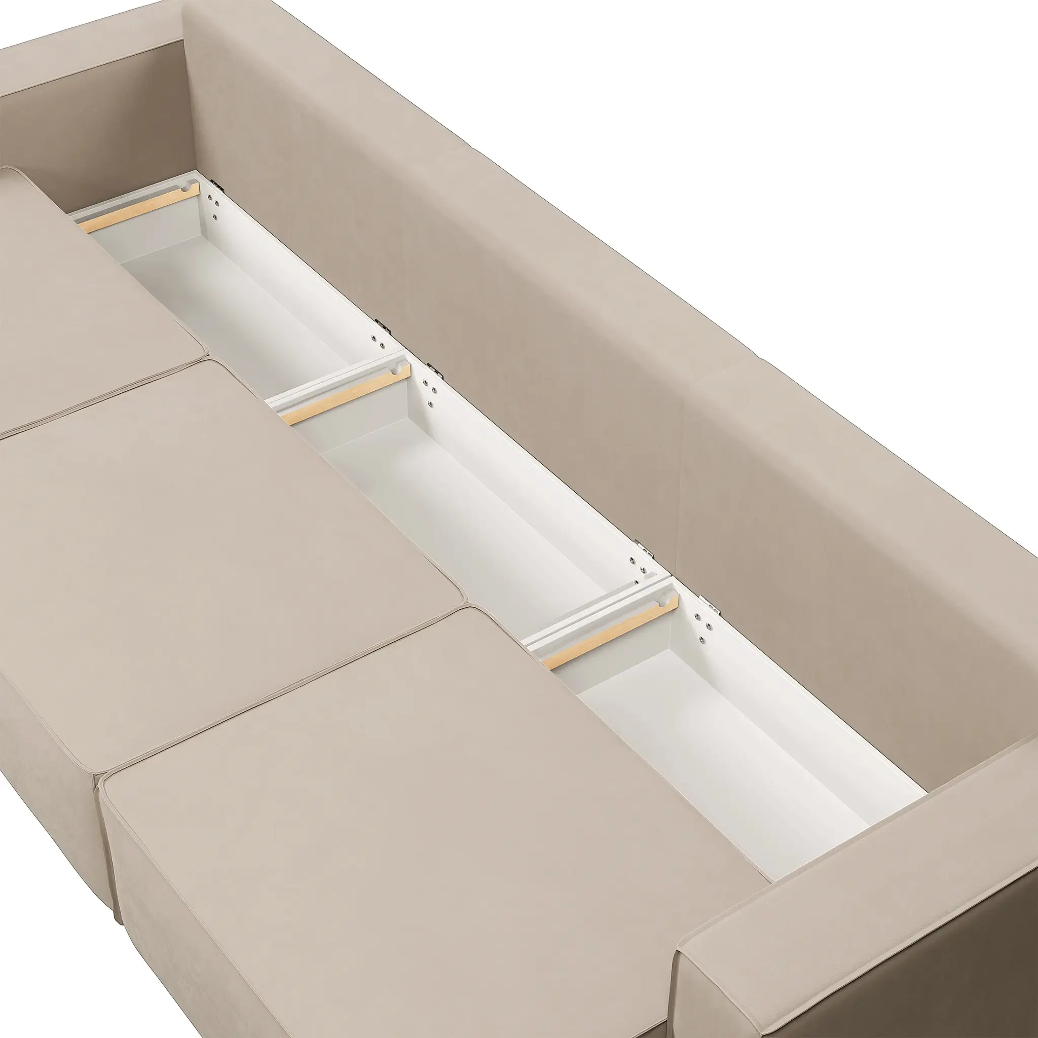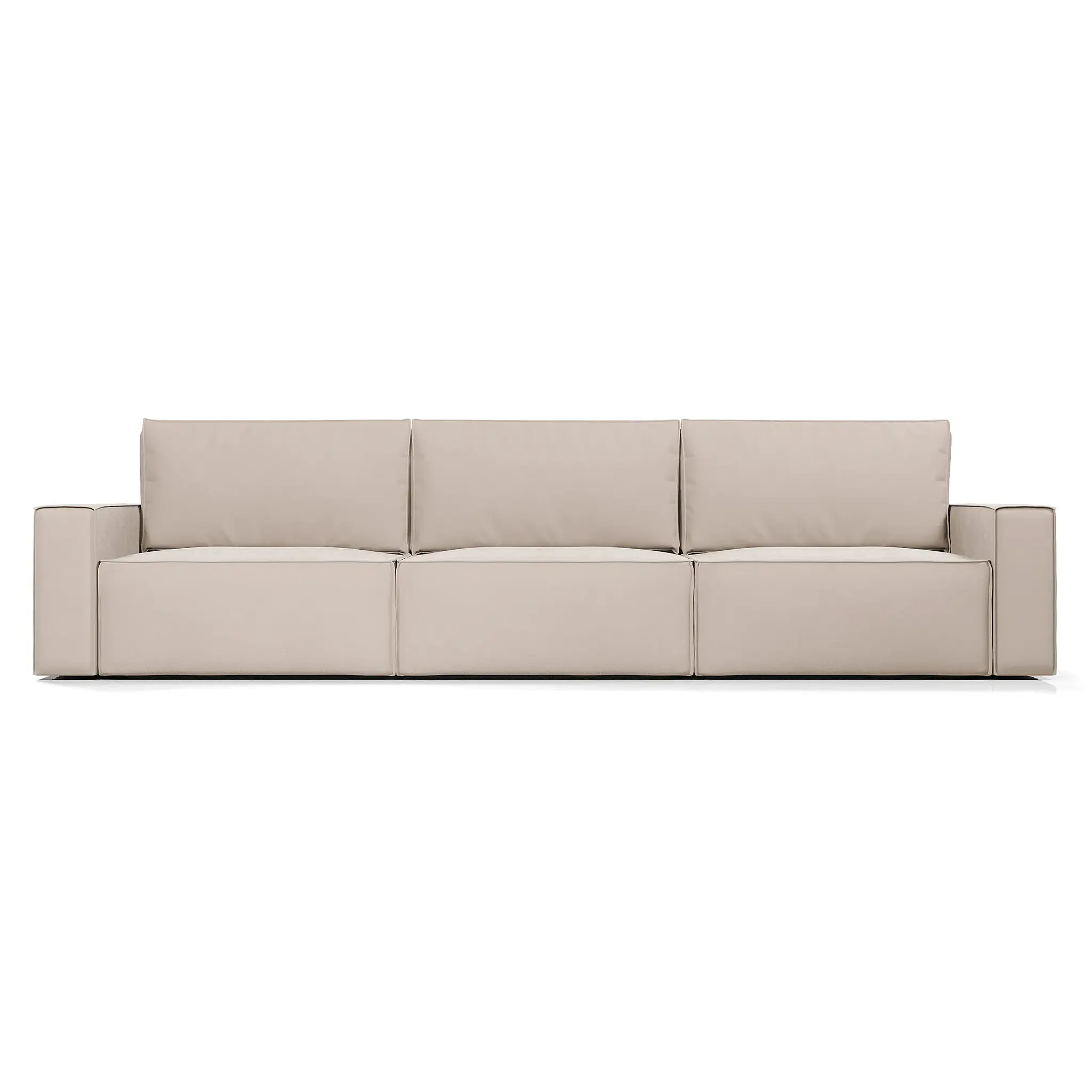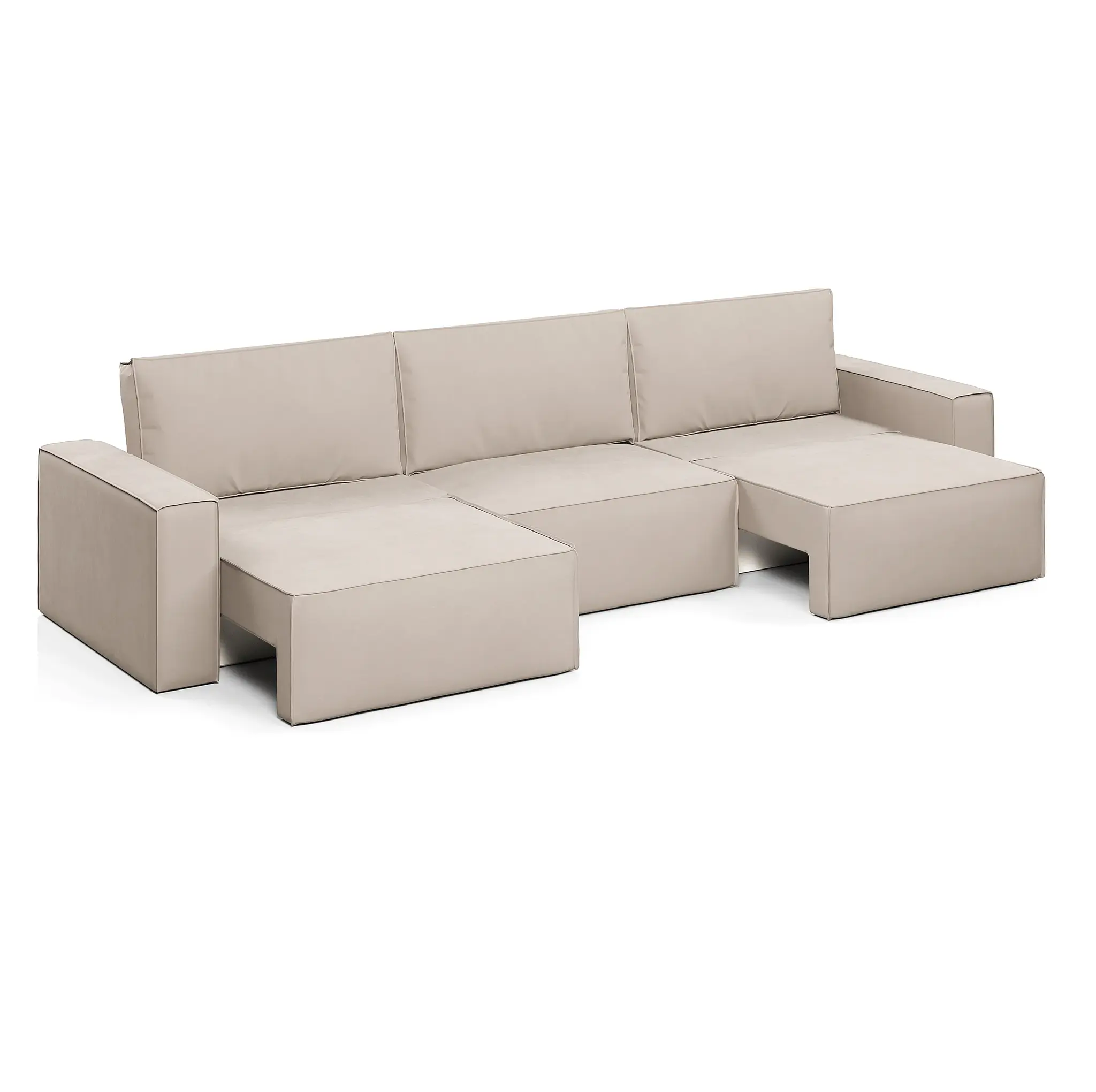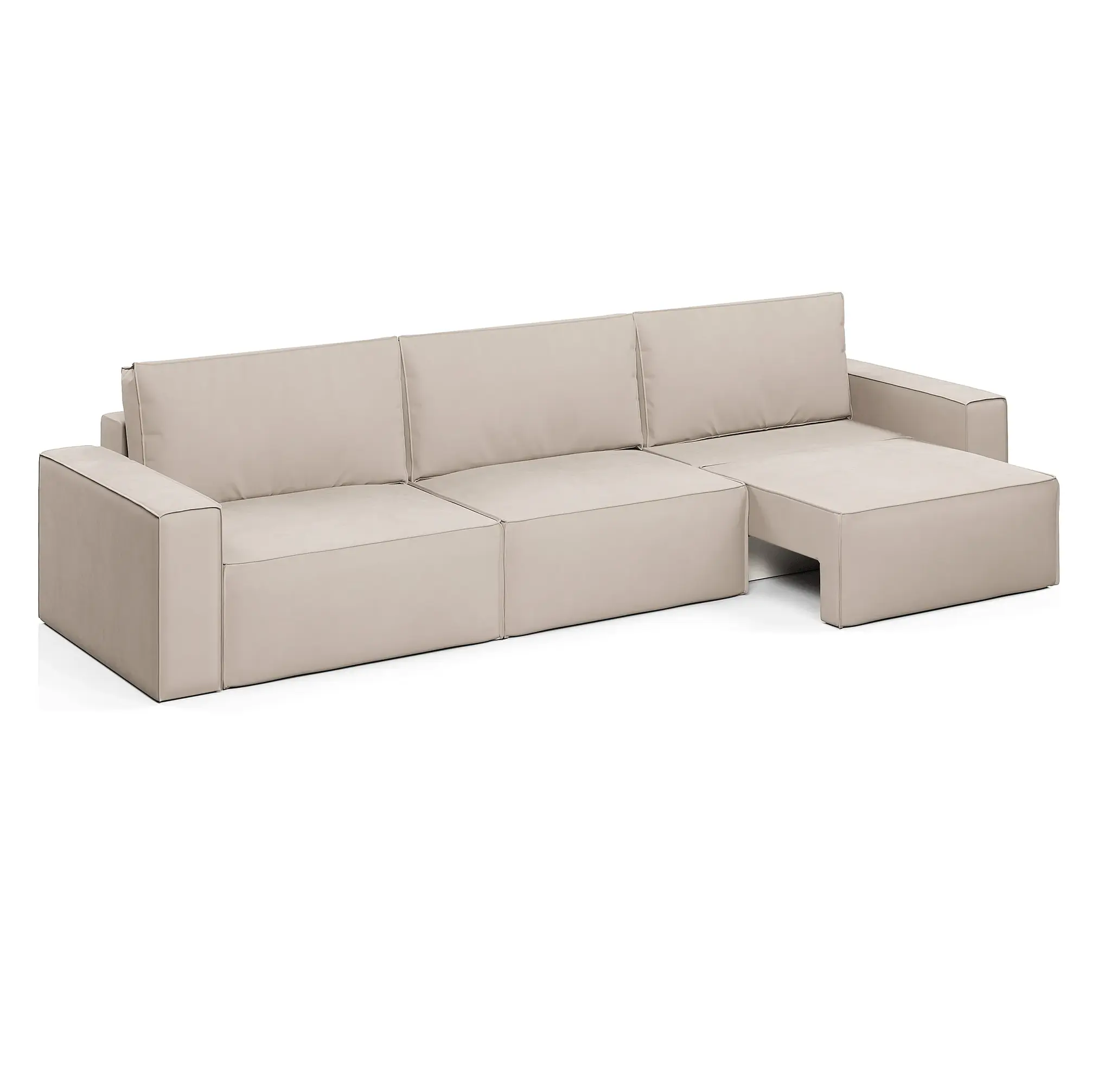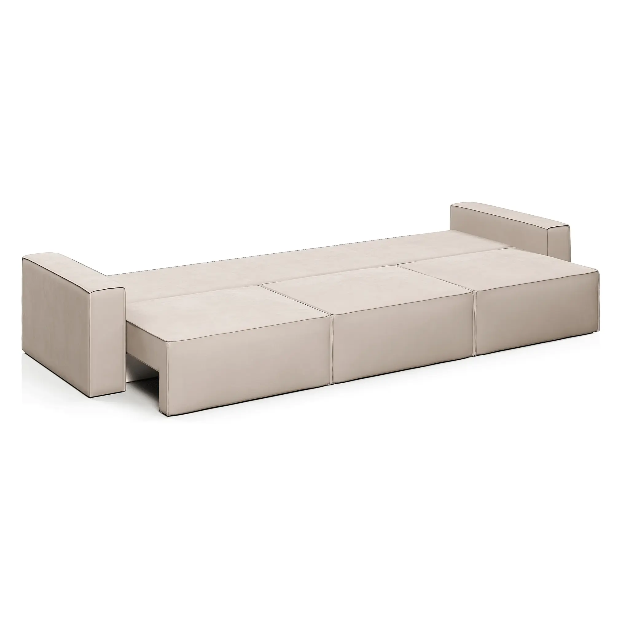 Диван раскладывается при помощи удобного и надежного механизма «еврокнижка». Он отличается долговечностью и простотой эксплуатации. В результате трансформации получается ровное, широкое и удобное спальное место. Чтобы разложить диван, достаточно выдвинуть на себя сиденье и опустить спинку. Каждый модуль раскладывается отдельно.