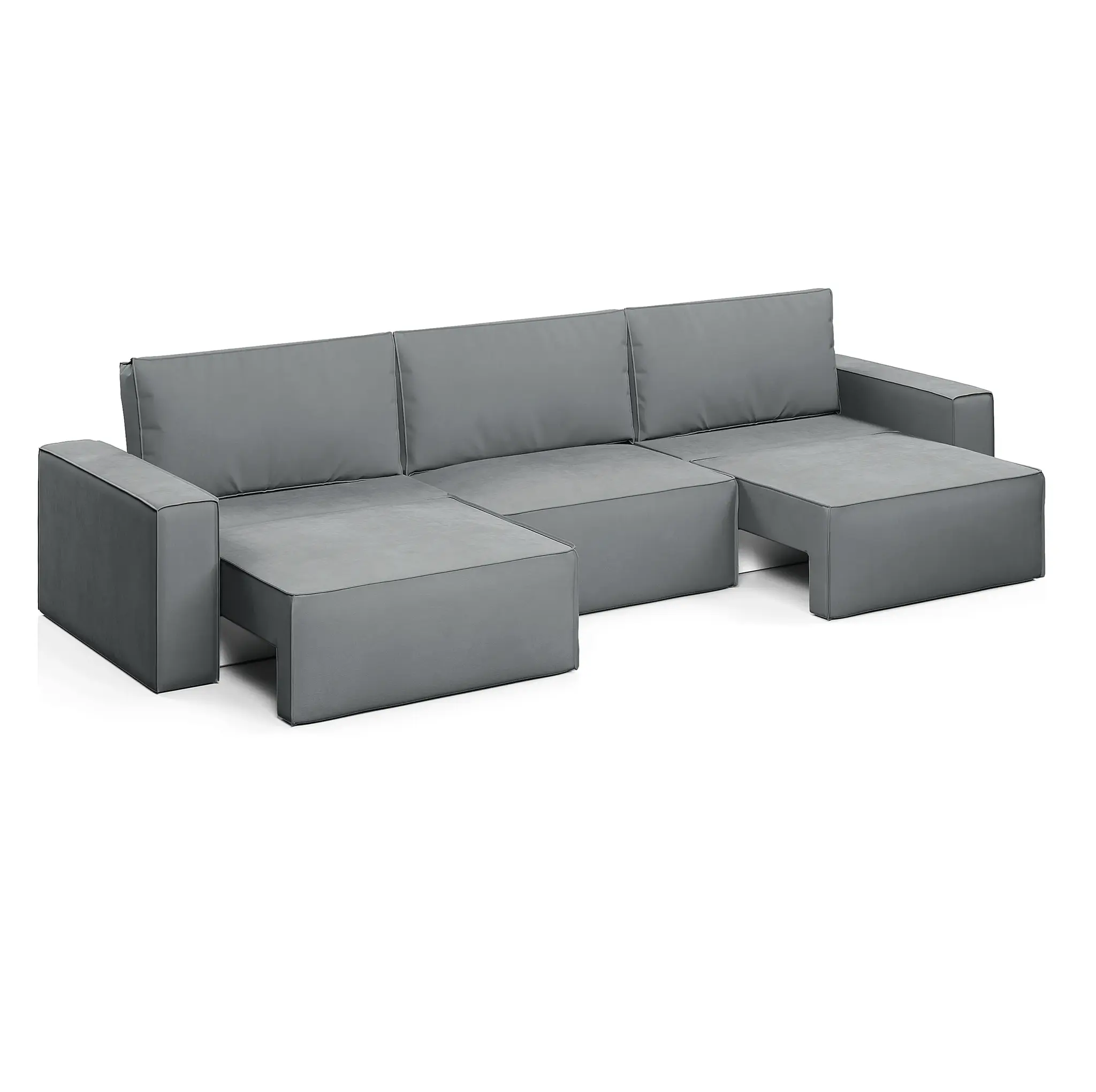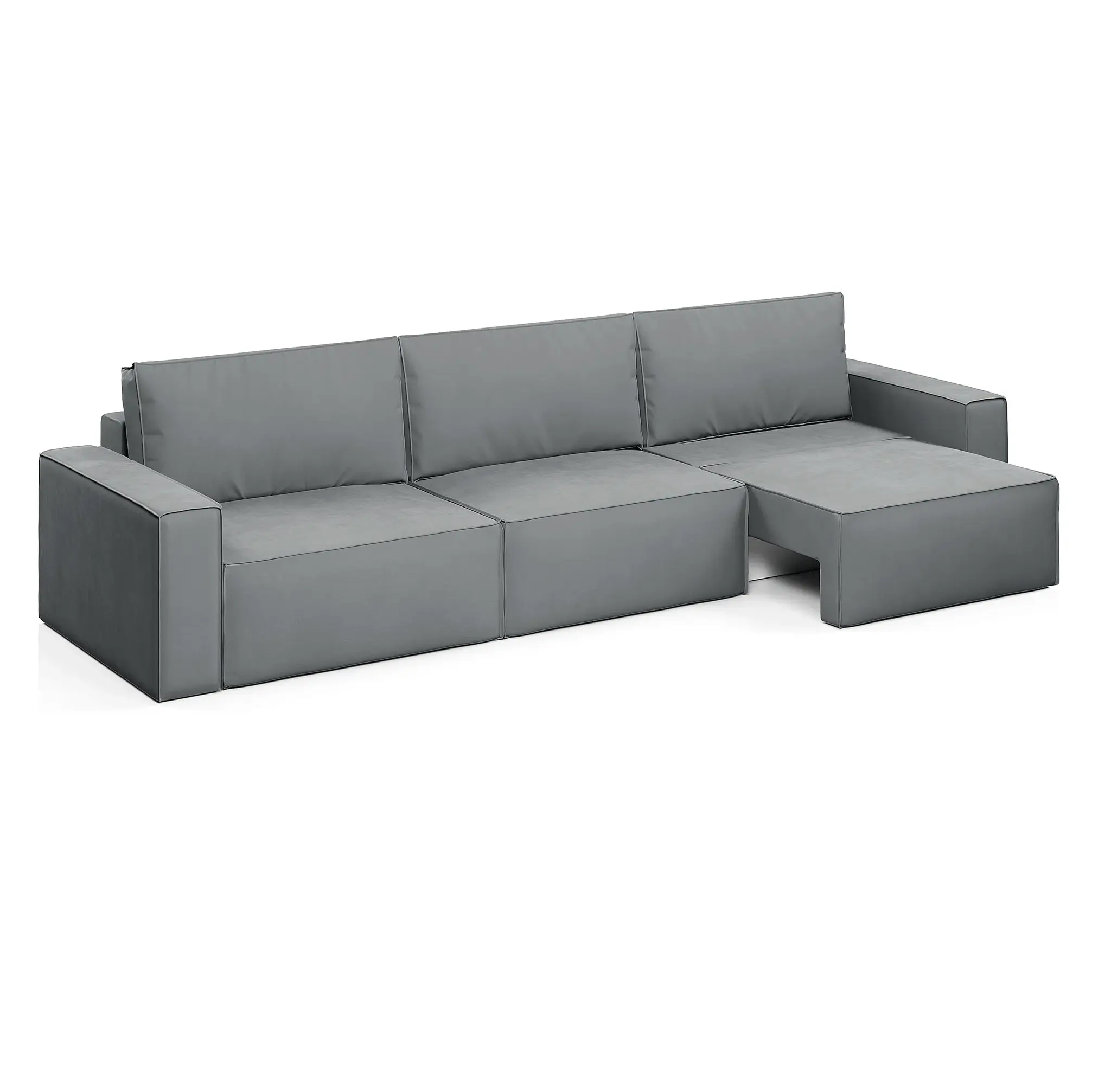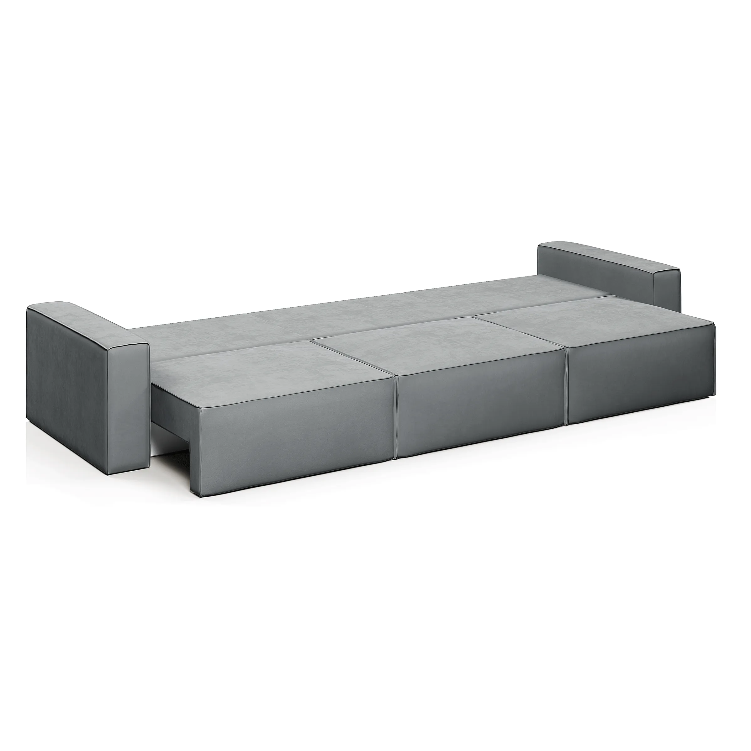 Диван раскладывается при помощи удобного и надежного механизма «еврокнижка». Он отличается долговечностью и простотой эксплуатации. В результате трансформации получается ровное, широкое и удобное спальное место. Чтобы разложить диван, достаточно выдвинуть на себя сиденье и опустить спинку. Каждый модуль раскладывается отдельно.