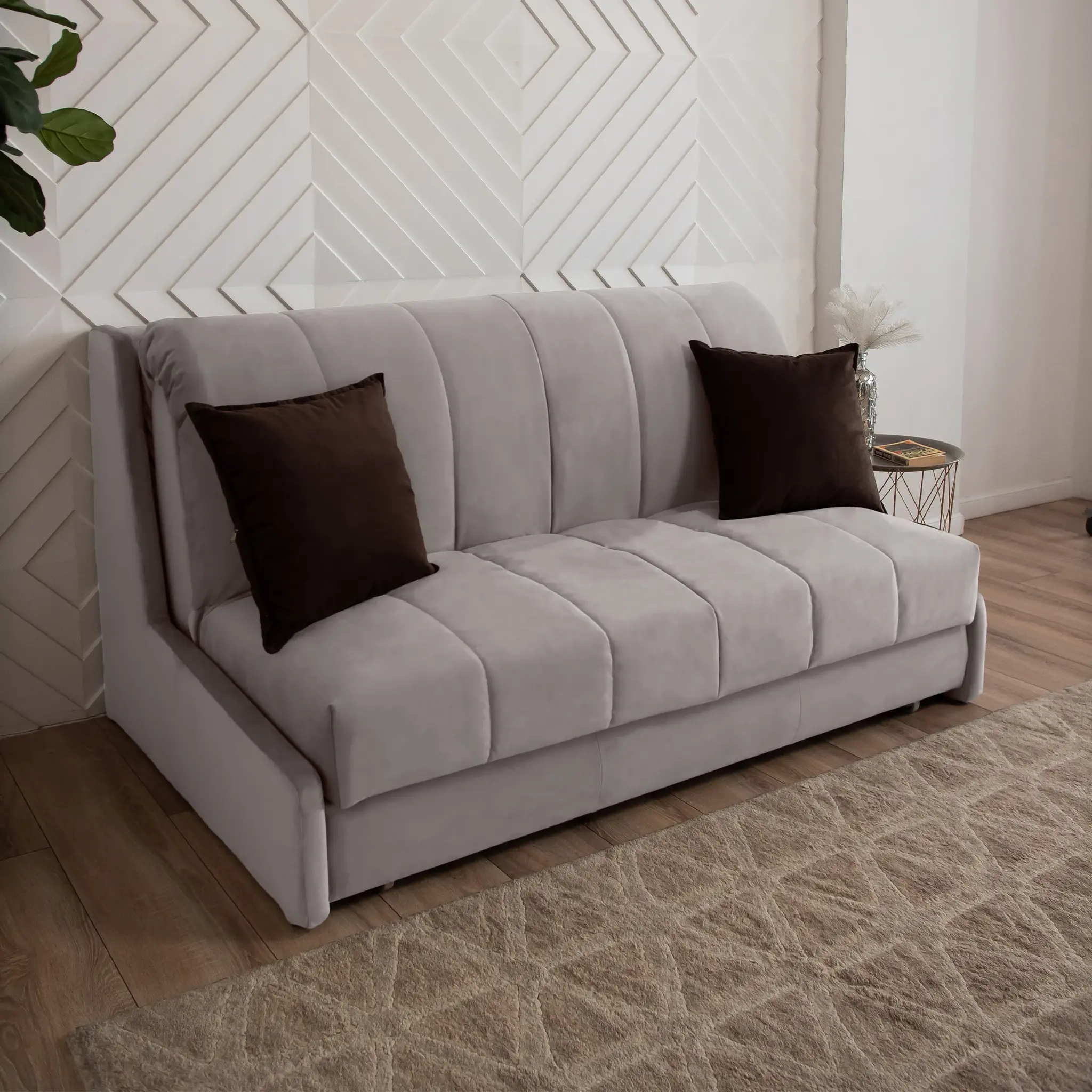 Диван раскладывается при помощи удобного и надежного механизма «аккордеон». В основании металлокарсас и латовая решетка кроватного типа. Конструкция отличается долговечностью и простотой эксплуатации.