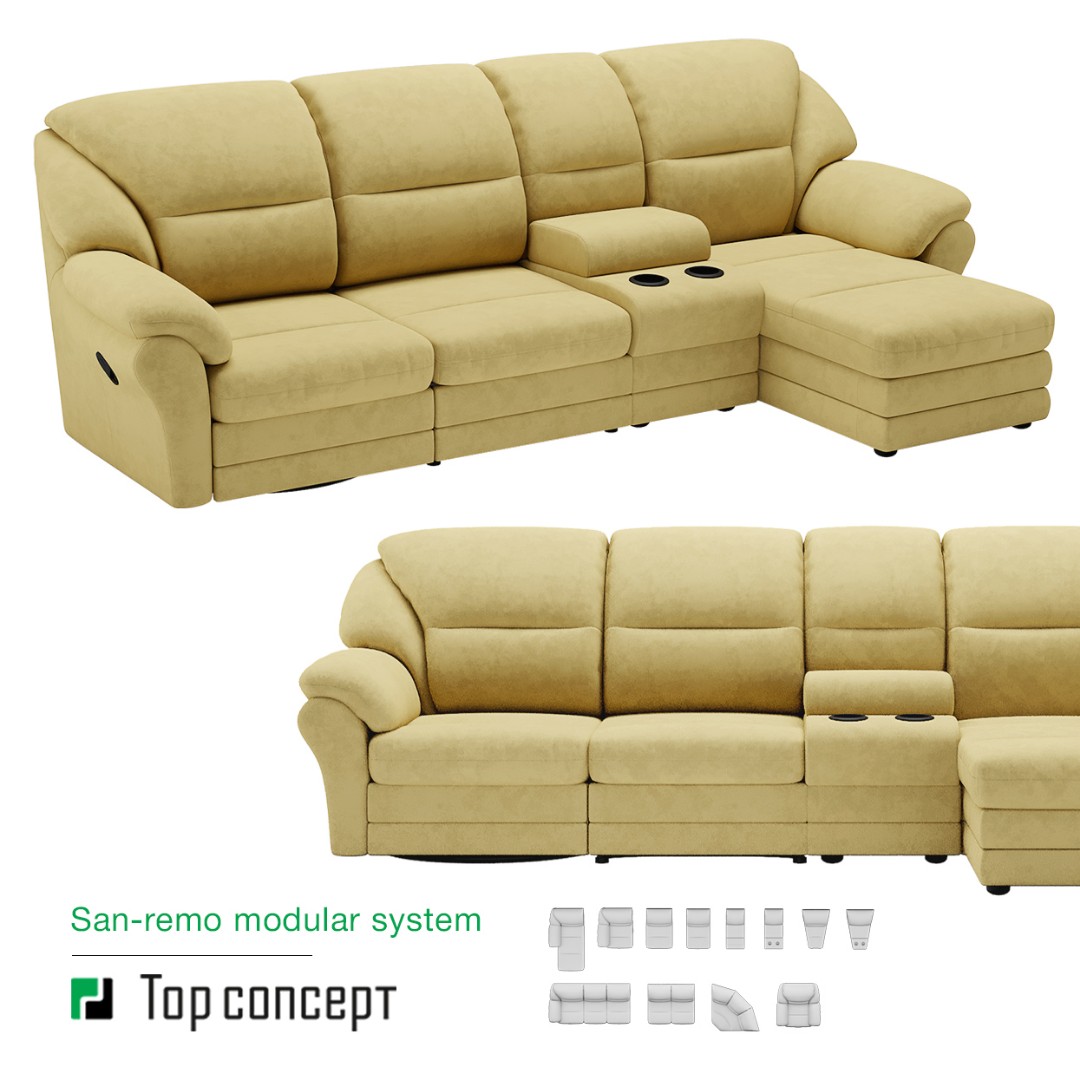 San-Remo угловой диван-кровать с реклайнером велюр бежевый 6607