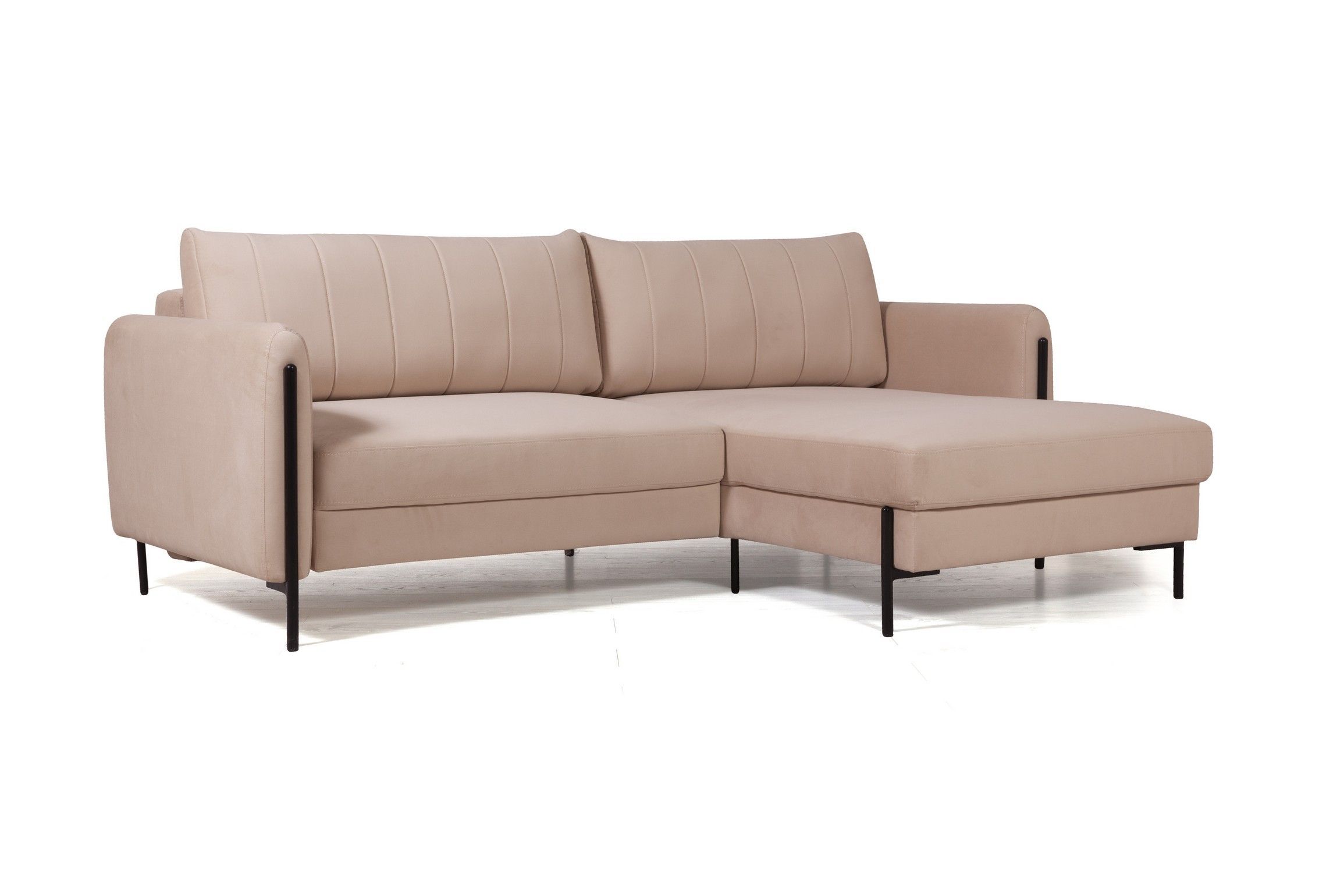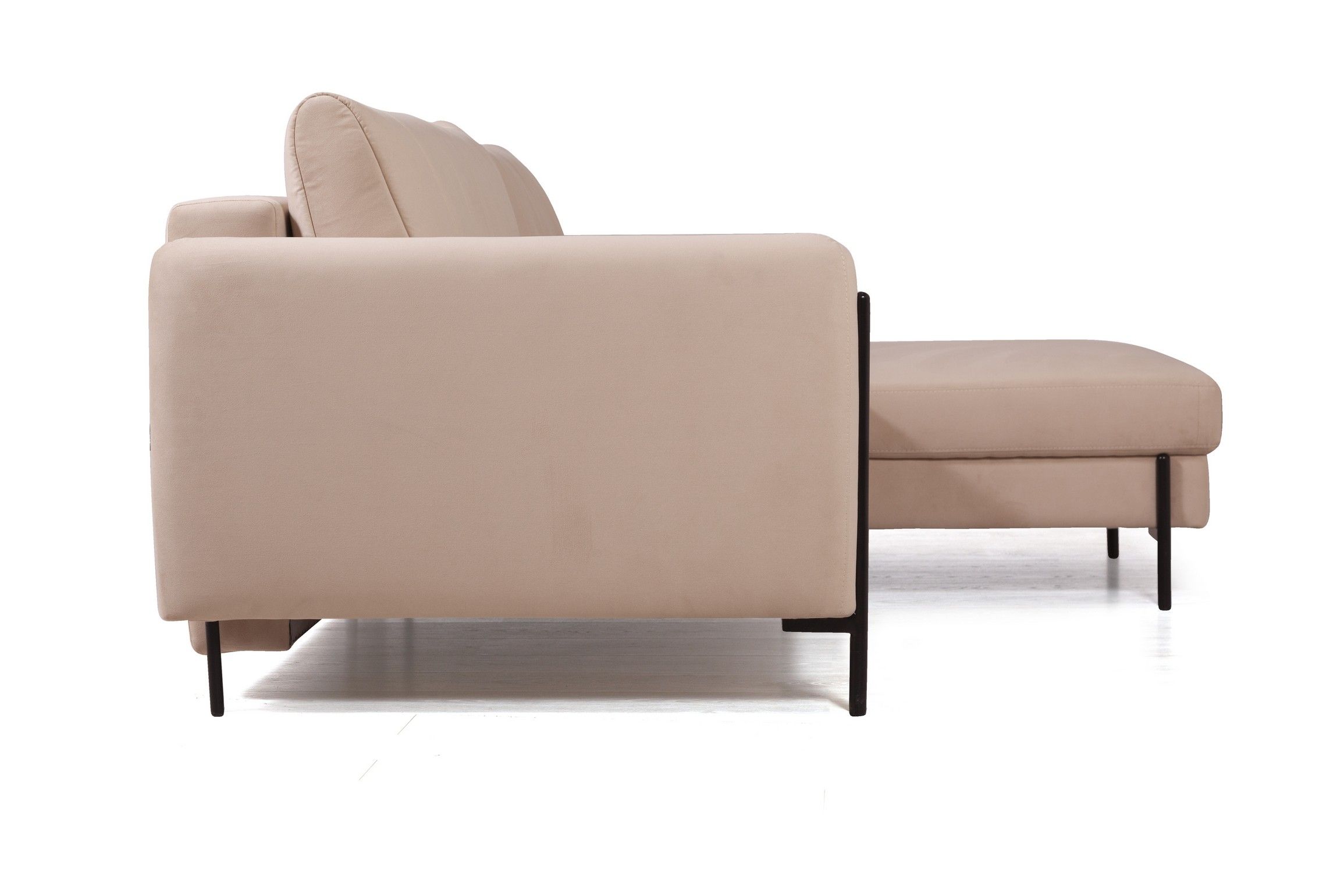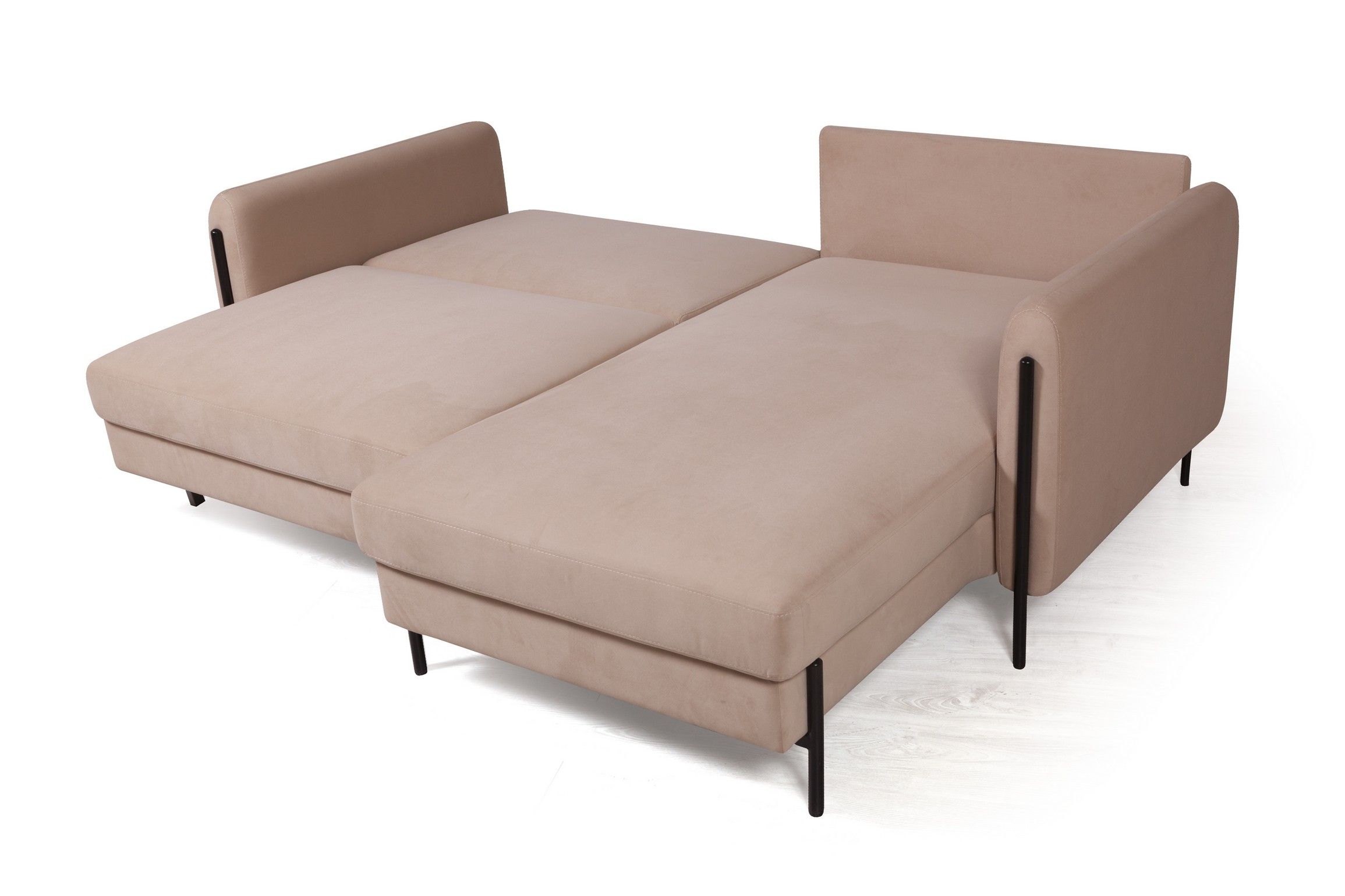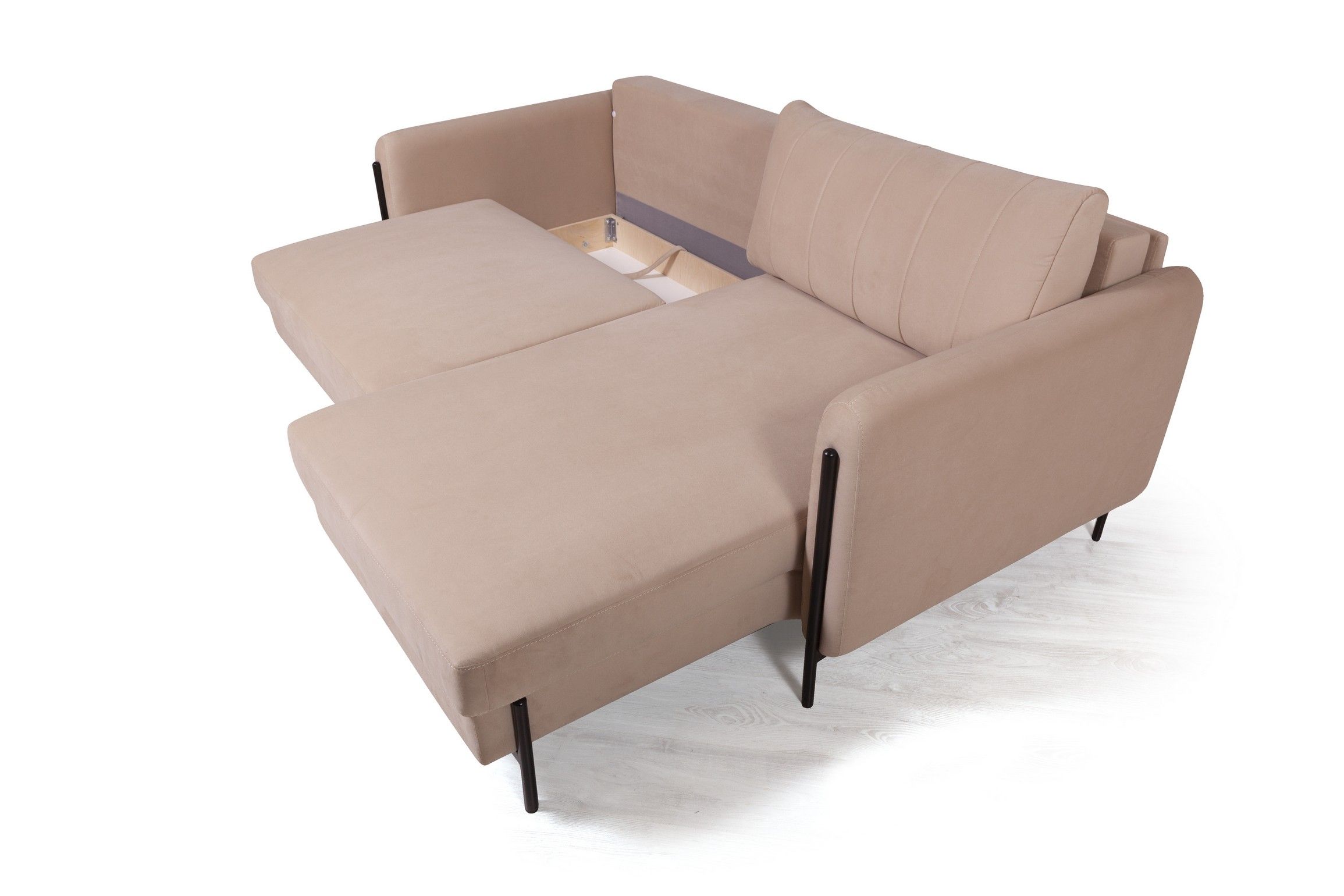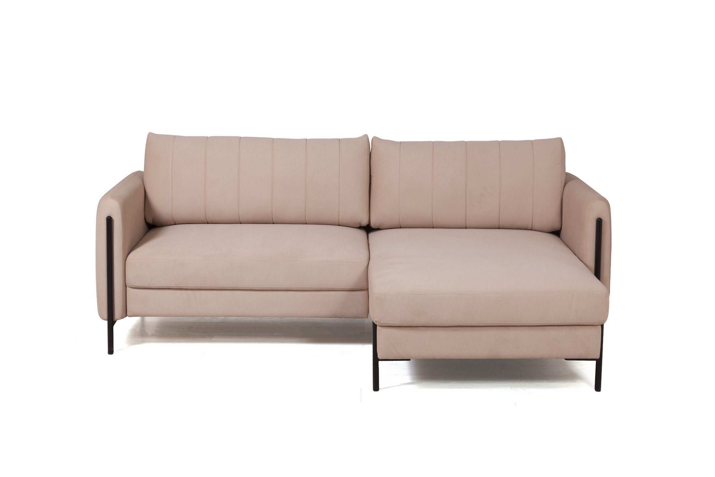 Металлические опоры гладко переходят в декоративный элемент, что придает акцент дивану и неповторимый эффект легкости. Высота опор - 14,5 см. Это позволяют применить современные технологии уборки, например, робот-пылесос.
