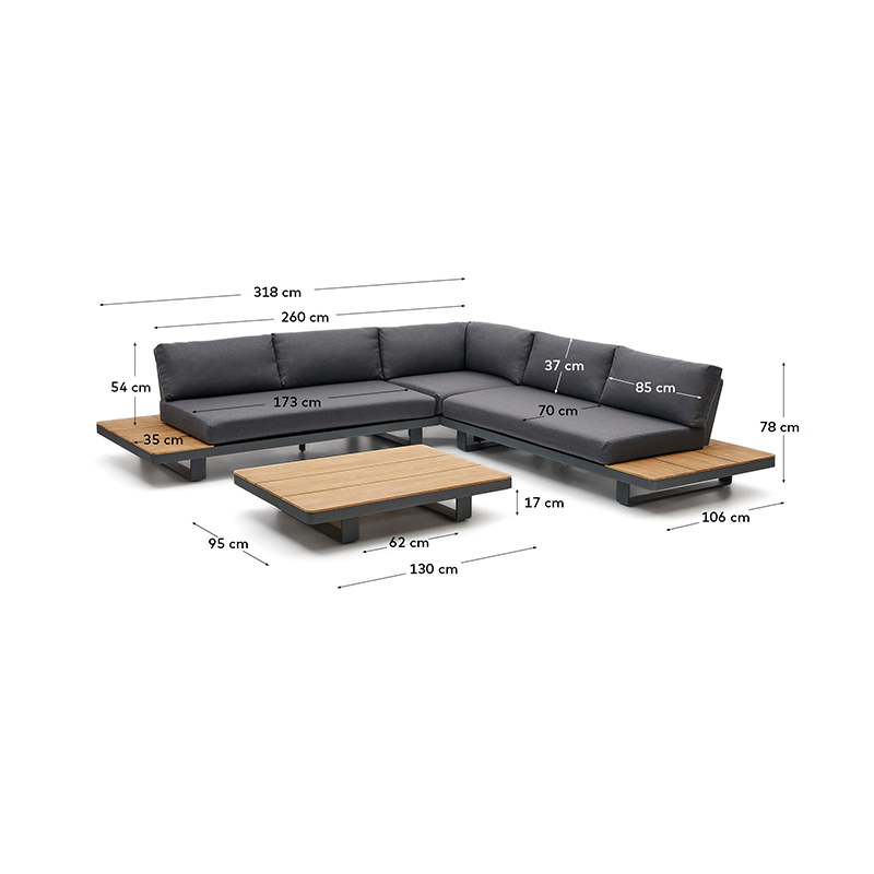 5-местный угловой диван и стол Tosqueta из алюминия и массива тикового дерева