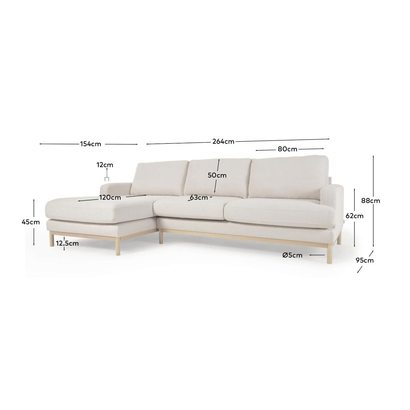 Mihaela 3-местный диван с левым шезлонгом из белого микробукле 264 см