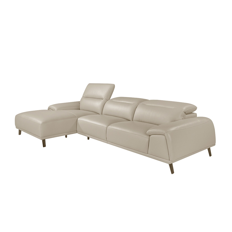Запросить индивидуальное предложениеУгловой диван 6149/6150/KF112-M5652 от фабрики Angel Cerda – натуральная кожа и конструкция с расслабляющим механизмом. Диван 6149/6150/KF112-M5652 – это современный дизайн, минималистичный стиль и абсолютная эргономика. Все эти качества производитель заложил в изделие благодаря натуральной коровьей коже, независимым шарнирным подголовникам и трендовому серо-бежевому цвету. Позвольте себе совершенную мебель, поднимите уровень вашей гостиной! Диван каркасный. Структура изготовлена из прочной сосновой древесины. Сиденье и спинка смягчены пенополиуретаном плотностью 20 кг/м3, что обеспечивает дополнительный комфорт, необходимый для отдыха. Обивка из натуральной кожи светло-бежевого цвета. Кожа высокого качества, толщиной 1,5 мм. Она износостойкая, с гладкой фактурой. Ножки дивана изготовлены из нержавеющей стали, с накладками для защиты напольного покрытия от повреждений. Размеры: ширина – 316 см, высота – 70 см, глубина – 176 см. Вес изделия – 110 кг. Потребуется самостоятельная сборка. Инструкция и крепеж включены в комплектацию. В коллекцию входят диваны с правым и левым расположением шезлонга.