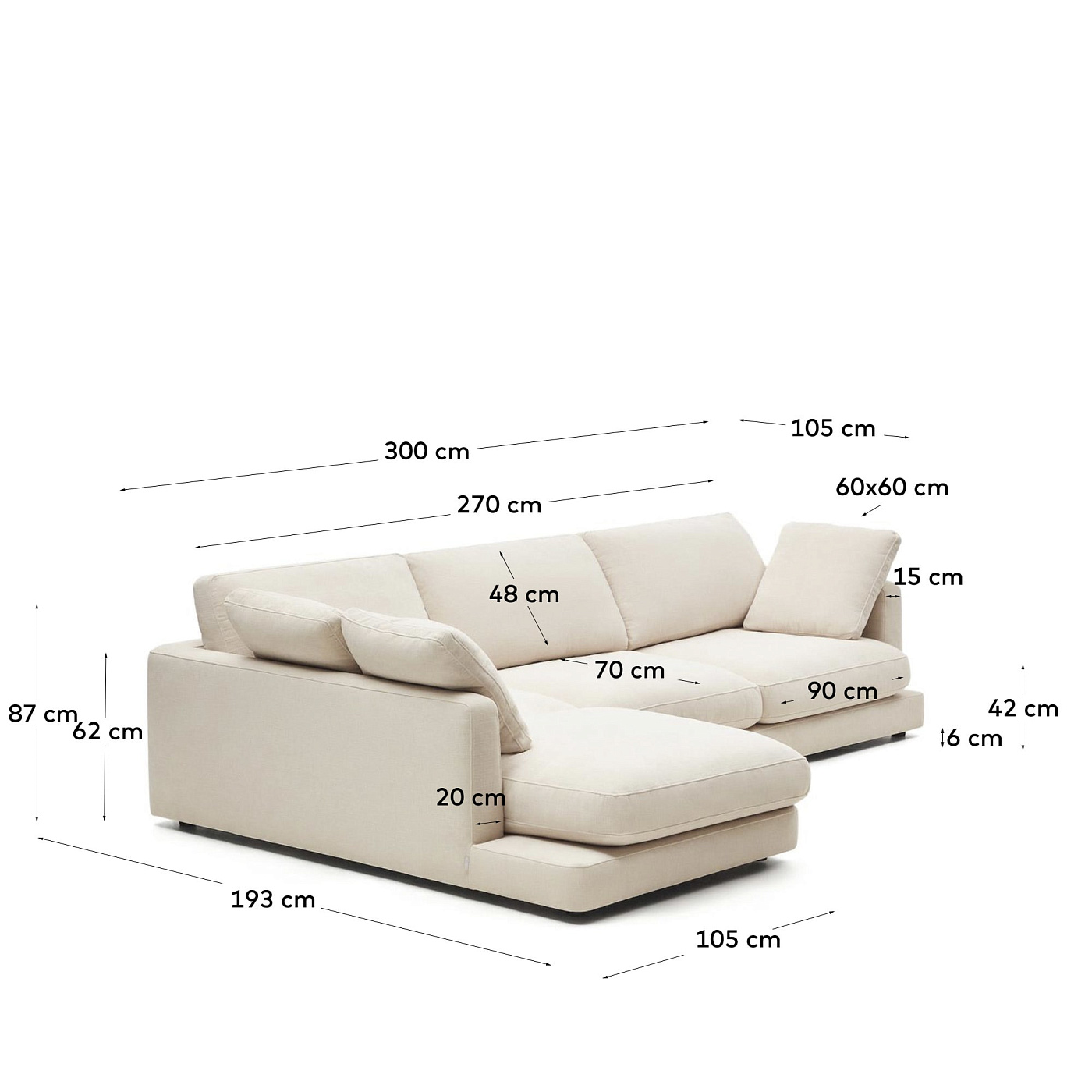 Gala 4-местный диван с левым шезлонгом бежевый 300 см