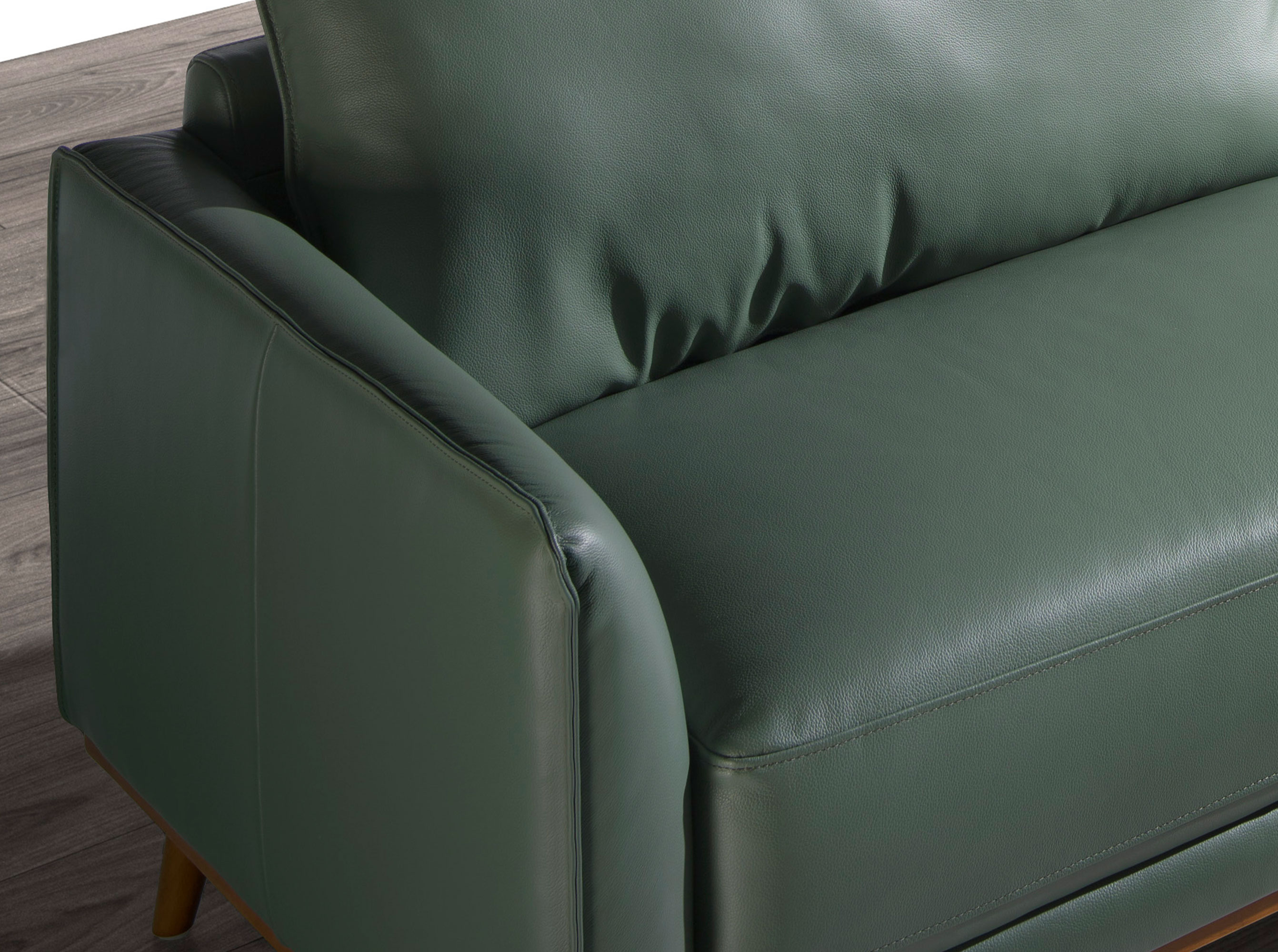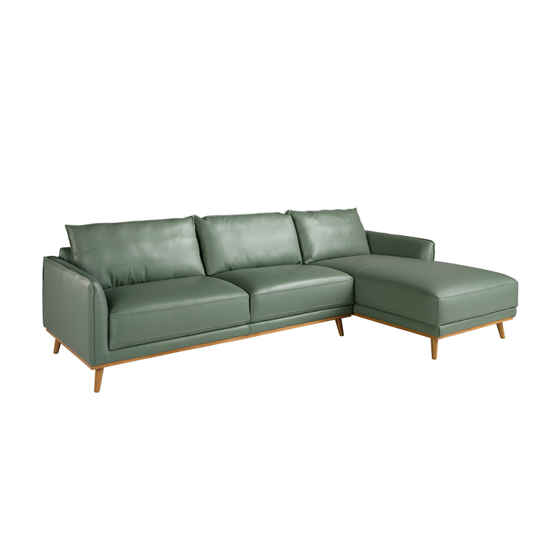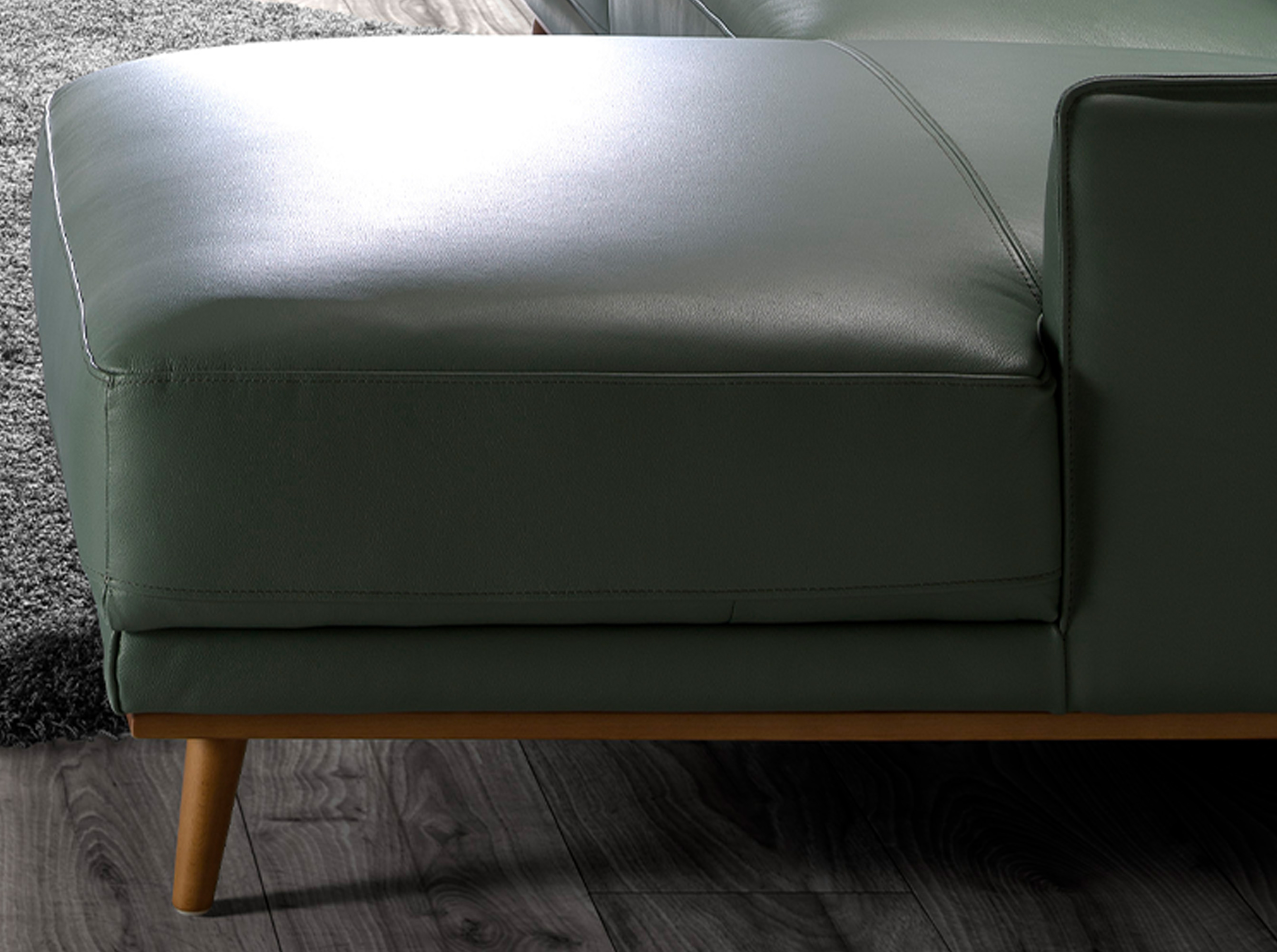 Угловой диван с правым/левым шезлонгом 6199/5607-M5677 с реклайнером от фабрики Angel Cerda – изумительная зеленая кожа и идеальное исполнение. Угловой диван 6199/5607-M5677 уверенно заявляет о своем превосходстве. Его шикарный вид дополнен продуманной эргономикой. А зеленый цвет кожи выглядит незаурядно и стильно. Позвольте своей гостиной стать идеальной, сделайте обстановку на порядок выше, а комфорту придайте больше значения! Диван имеет каркасную конструкцию из прочной древесины сосны. Она обеспечивает стойкость к высоким нагрузкам, не теряет своих свойств при долгой эксплуатации. Наполнитель из пенополиуретана плотностью 20 кг/м3. Этот материал обеспечивает анатомический комфорт, быстро принимает изначальную форму. Обивка – воловья кожа темно-зеленого цвета. Материал премиум-качества, плотный, с гладкой равномерной фактурой. Диван установлен на круглые деревянные ножки. Они обеспечивают стойкость к высоким нагрузкам, имеют свой уникальный медовый цвет. Для улучшения устойчивости ножки дополнены пластиковыми накладками. Размеры: ширина – 295 см, высота – 90 см, глубина – 160 см. Вес изделия – 107 кг. Возможна минимальная сборка. Инструкция и крепеж включены в комплектацию. В коллекции два варианта расположения шезлонга – слева и справа.