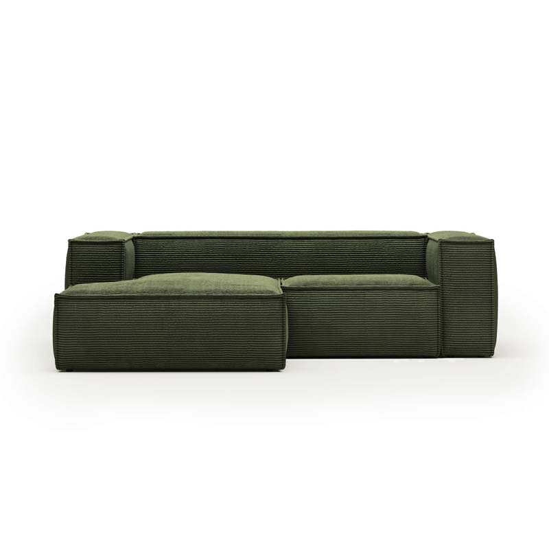 2-местный диван Blok с левым шезлонгом в зеленом толстом вельвете 240 см