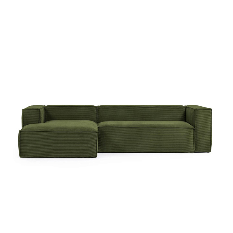 3-х местный диван Blok с левым шезлонгом в зеленом толстом вельвете 300 см