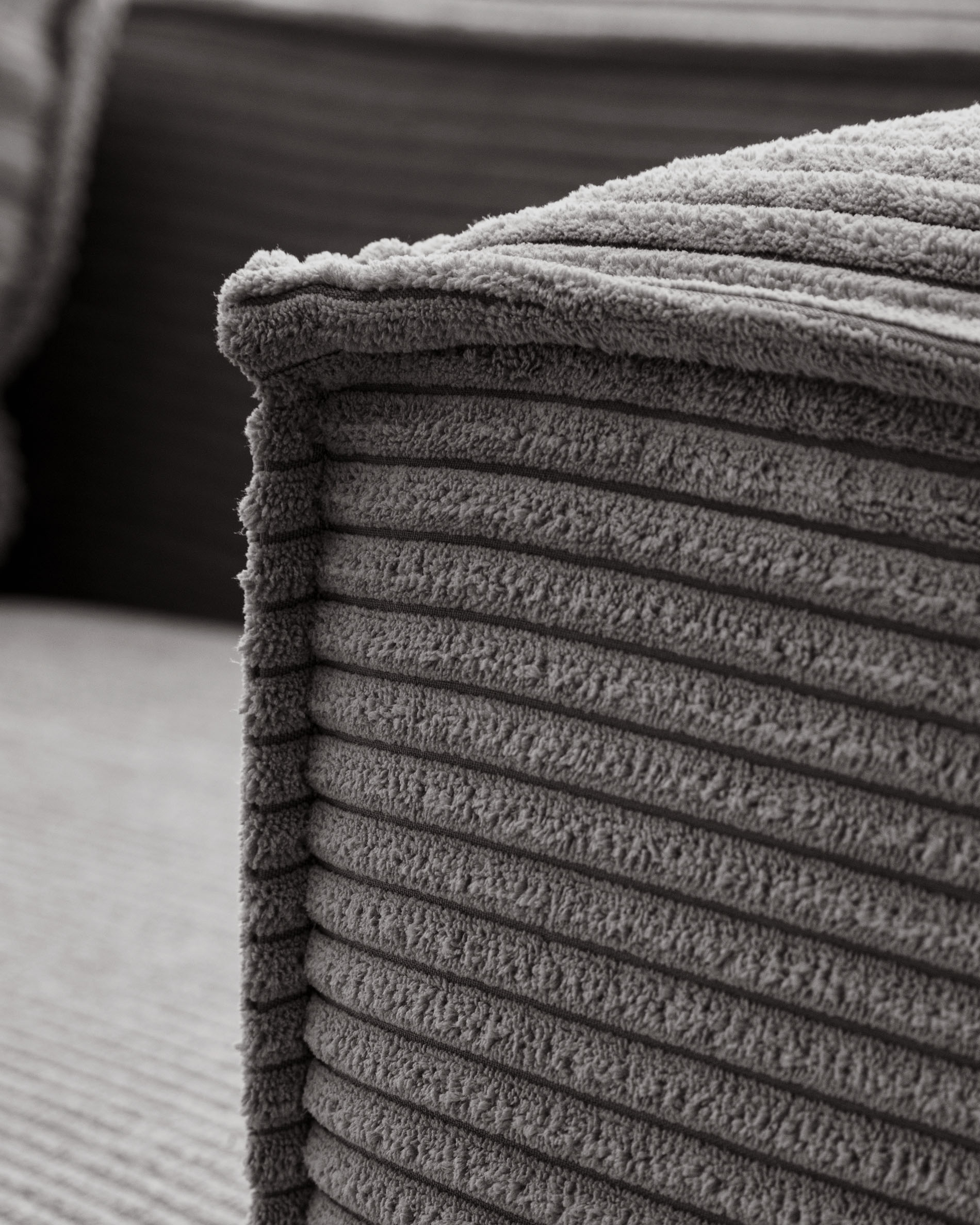 Диван Blok – это сдержанный минимализм, точно не лишенный комфорта. Здесь мягкость сиденья подчеркнуто выделена двойным слоем наполнителя, а фактурный полосатый вельвет не дает думать о том, что изделие выглядит скучно и безлико. Его четкая геометрия и прямые линии позволят легко и гармонично зонировать пространство. А выбранные дизайнерами цвета обивки не доставят хлопот в совместимости с интерьером.