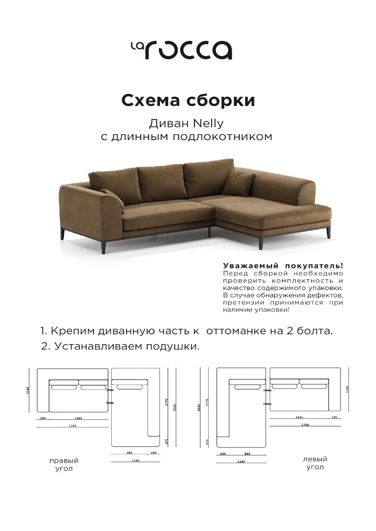 Диван с длинным подлокотником Nelly левый угол Milano 42