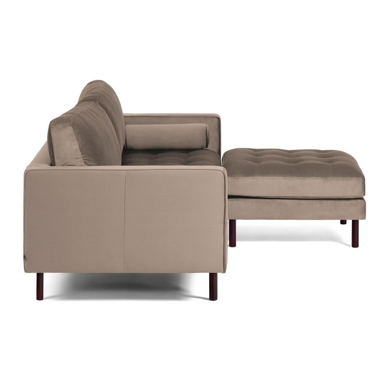 BOGART Диван 3-местный бежево-серый бархат с пуфом 222 cm
