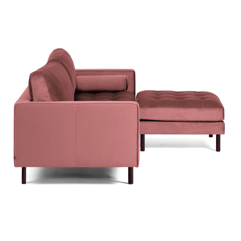 Бархатный диван с пуфом в коллекции BOGART представлен в двух вариантах длины – двухместный и трехместный. Конструкционно модели одинаковые и отличаются лишь размером.