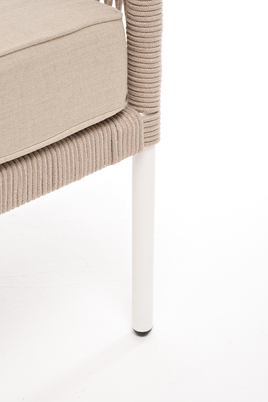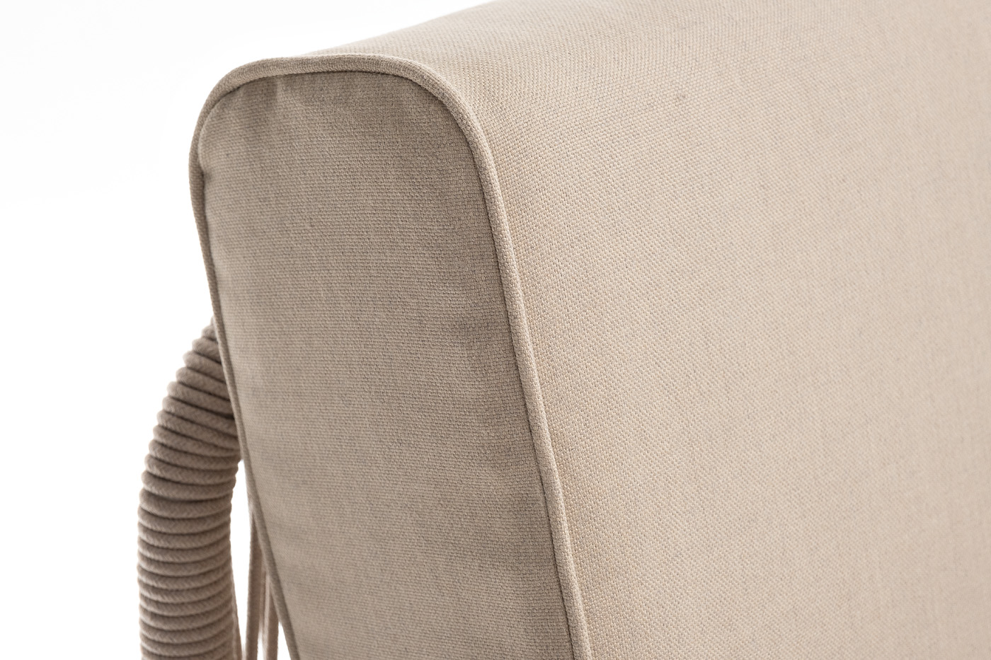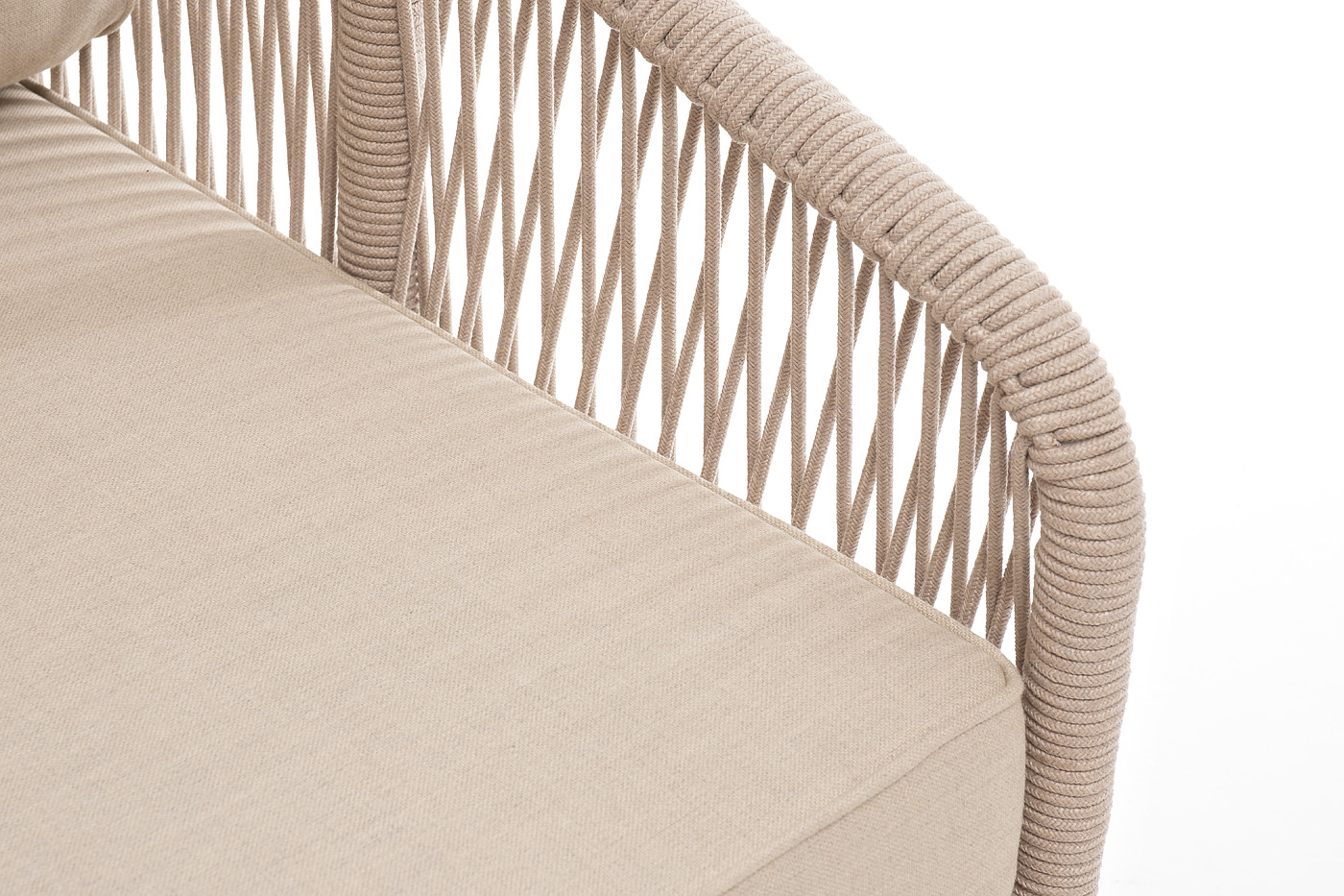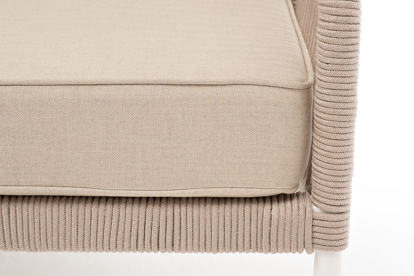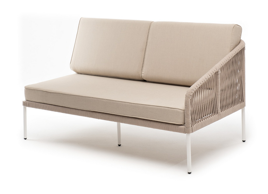 "Канны" левый модуль плетеный из роупа, каркас алюминий белый муар, роуп бежевый круглый, ткань бежевая 15052