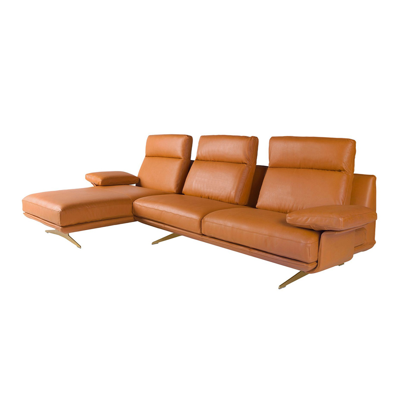 5-местный диван с левым шезлонгом 6226 из терракотово-коричневой кожи