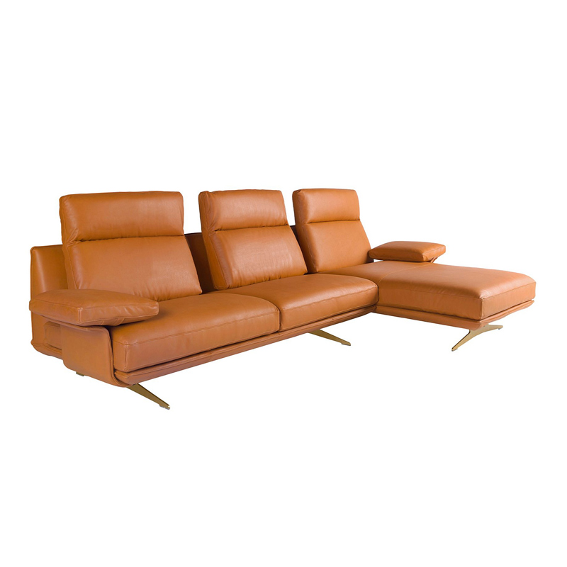 5-местный диван с правым шезлонгом 6227 из терракотово-коричневой кожи