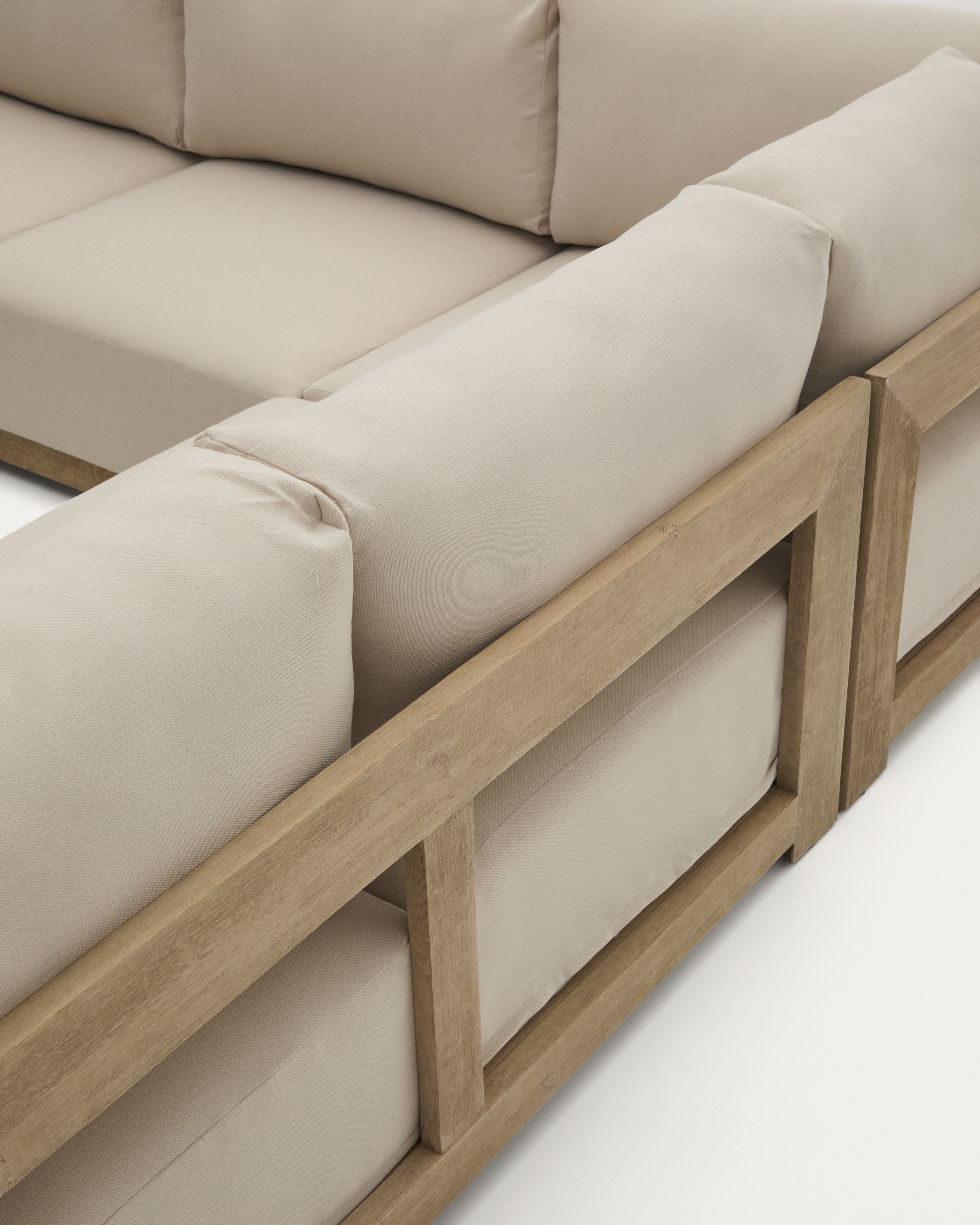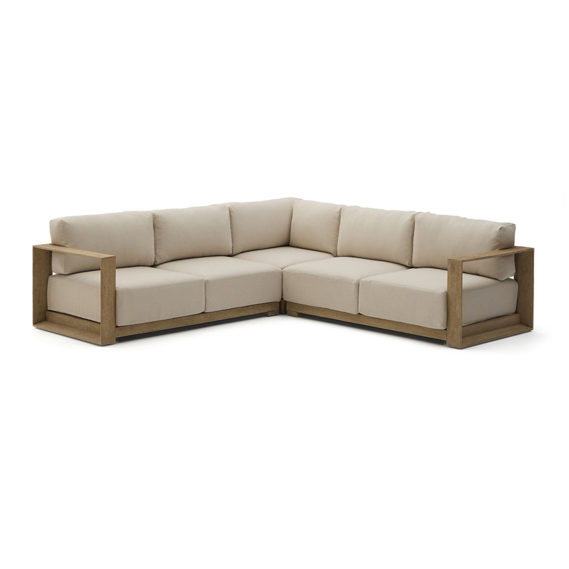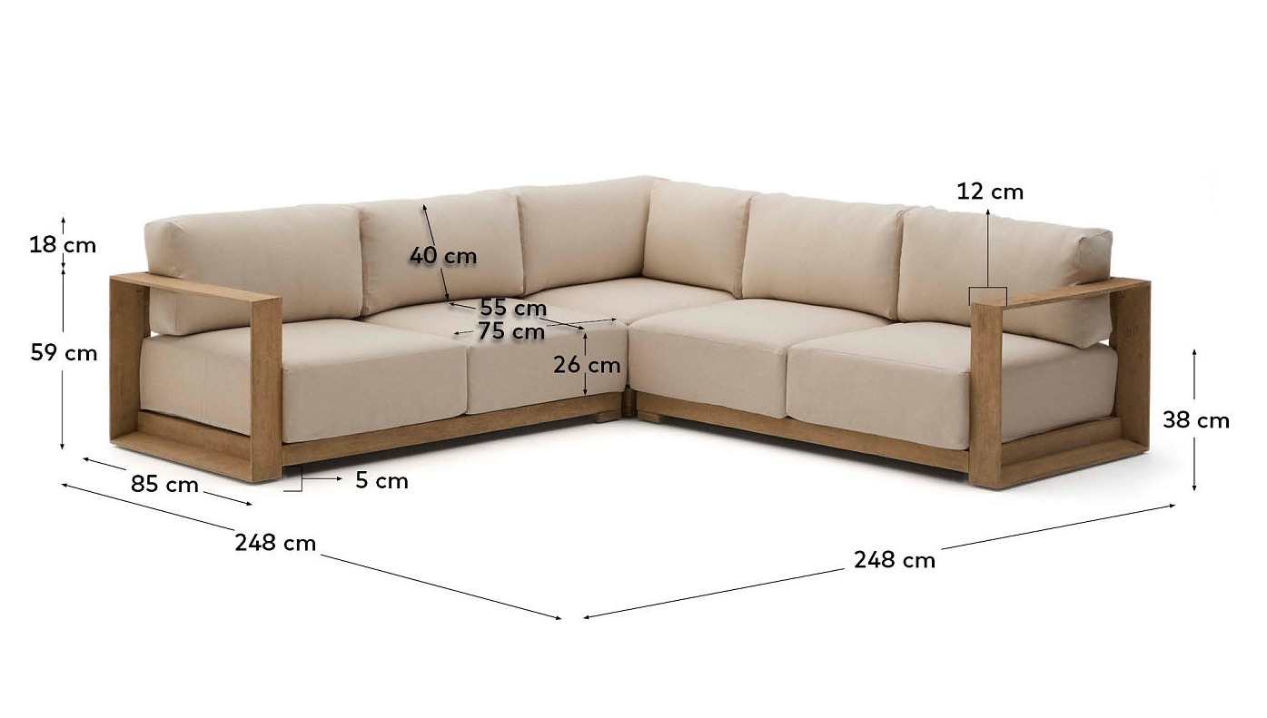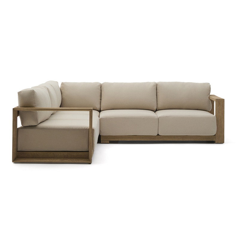 Угловой 5-местный диван Ambra из массива акации со светлой отделкой 248 см