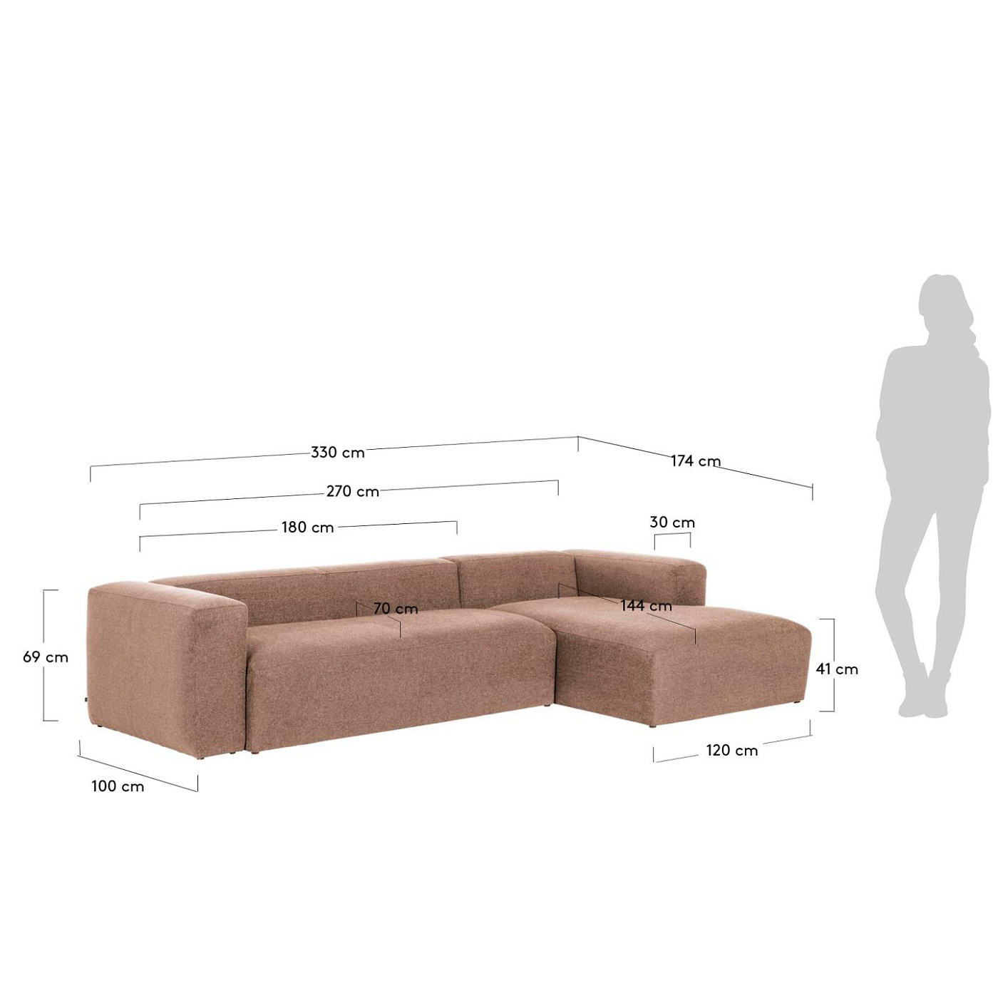 Диван 3-местный Blok с правым шезлонгом розовый 330 см