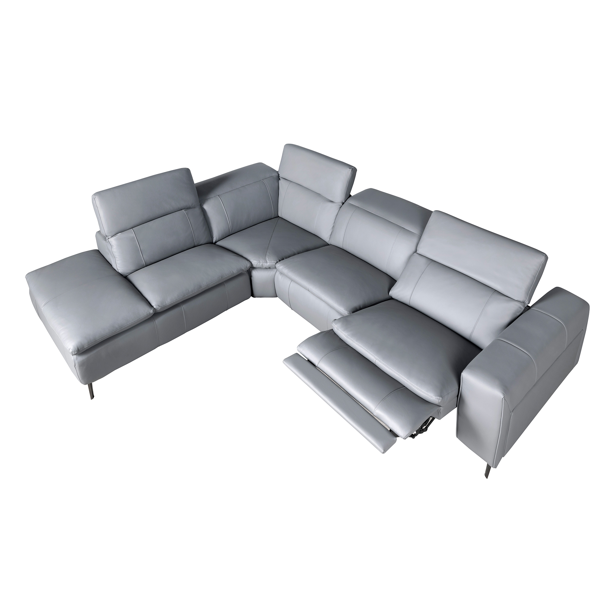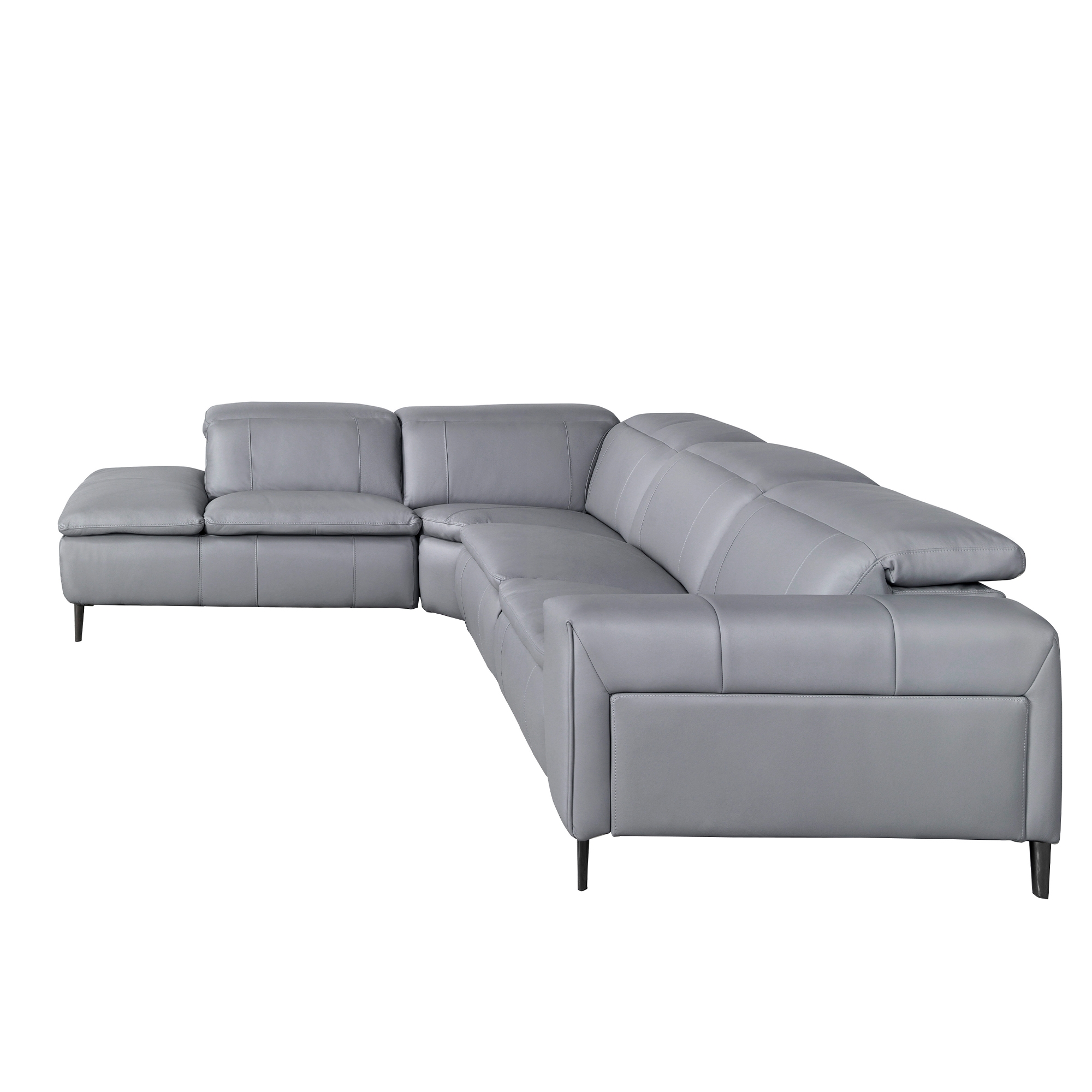 5-местный диван с реклайнером 6218 с левым шезлонгом из серой кожи