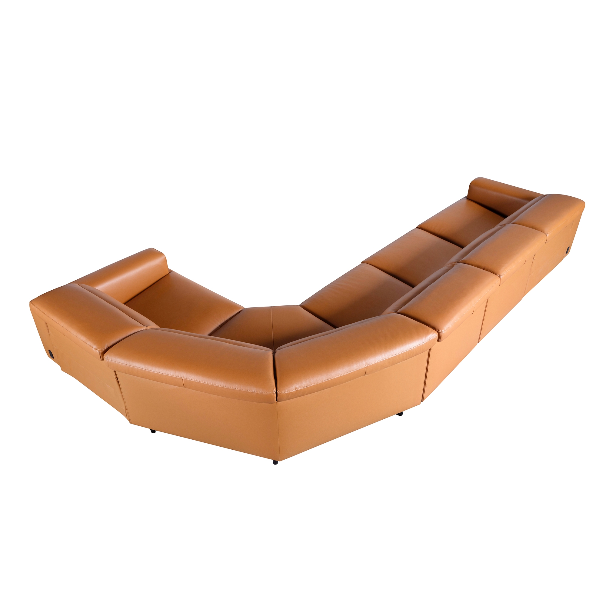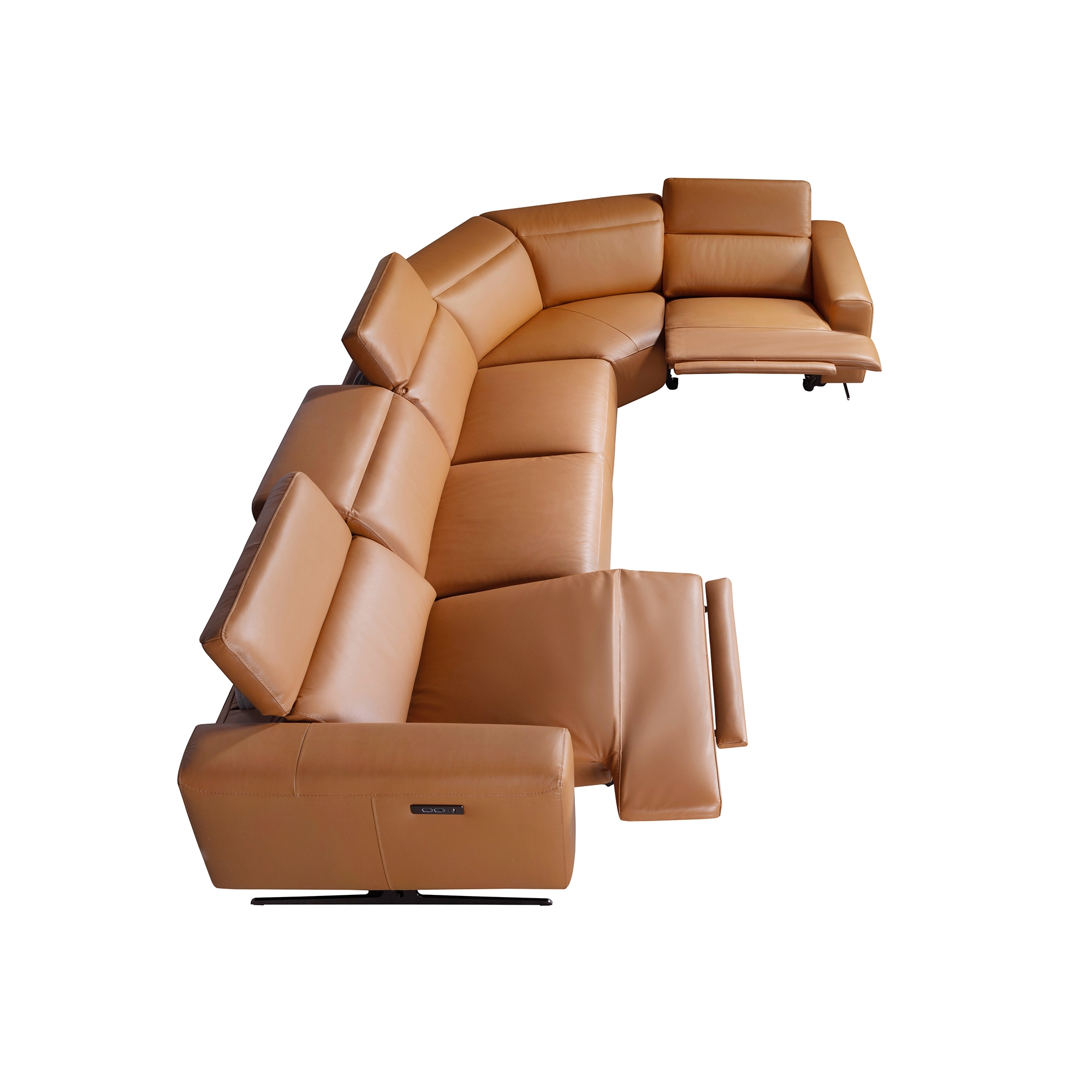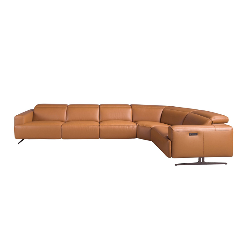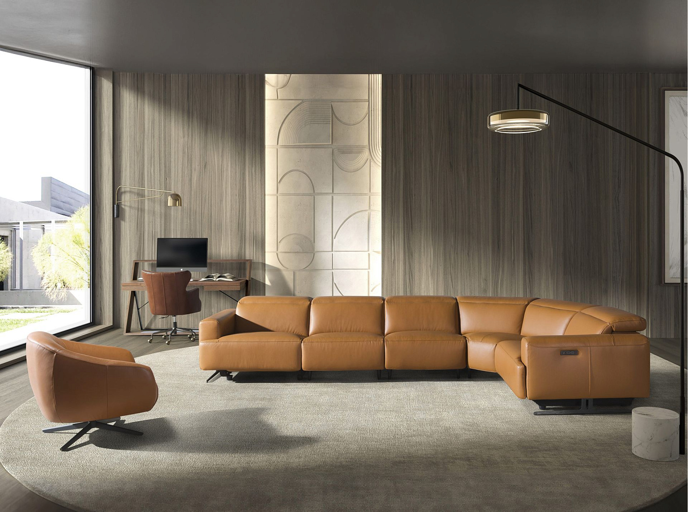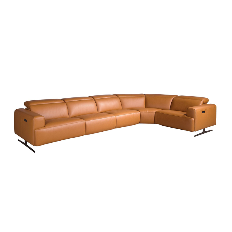 5-местный диван с реклайнером 6277 с правым шезлонгом из коричневой кожи
