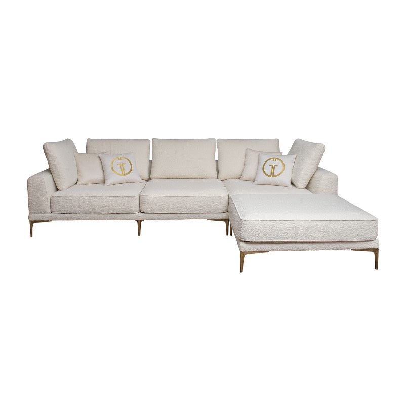 Запросить индивидуальное предложениеКомплект мебели №53 модульный Диван Tesoro (левый угол). В состав комплекта входит: модуль угловой левый DL-1шт, модуль угловой правый KR+P- 1шт. Комплект выполнен в ткани из коллекции Garda Decor- букле Orso Ecru. В состав комплекта входят декоративные подушки: 45*45см в ткани Atmosphera 010-2шт, 45*45см в ткани Atmosphera 000-2in с вышивкой эмблема GD в цвет золото. Металлические опоры 18см, цвет бронза. Габариты комплекта: ширина- 3100мм, глубина-2000мм, высота- 900мм. Глубина сиденья- 750мм, высота посадочного места- 440мм.