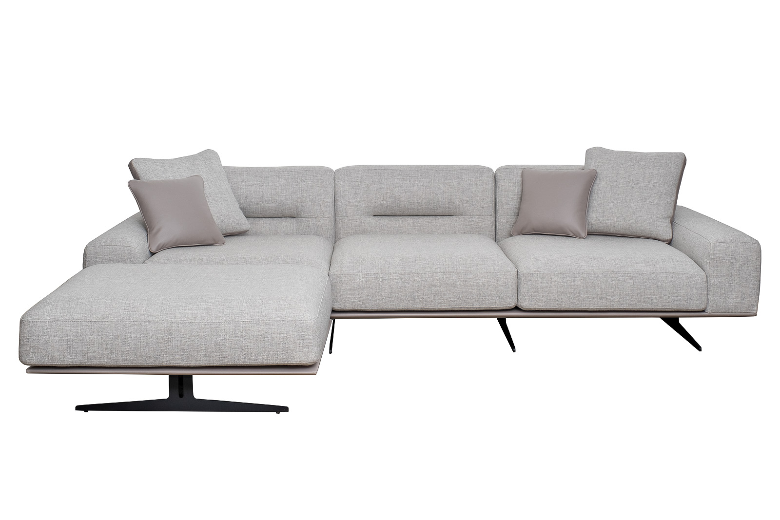 Запросить индивидуальное предложениеКомплект мебели №11 диван модульный PORTO (левый угол). В состав комплекта входит: основание трехместное-1шт, выполнена в иск.коже Enzo902; подлокотник низкий-2шт; сиденье с высокой спинкой-3шт; отдельностоящий пуф- 1шт. Основная ткань комплекта- рогожка Norton SER из коллекции тканей Garda Decor. В сотав комплекта входят декоративные подушки: 50*50см с бурлетом 2шт- в ткани Norton SER. бурлет- иск.кожа Enzo902; 40*40см с кантом 2шт- в иск.коже Enzo 902. Металлические опоры- 170см, цвет черный. Габариты комплекта: ширина-294см, глубина- 194см, высота-75см. Глубина пуфа- 107см, глубина посадочного места- 82см, высота посадочного места- 45см