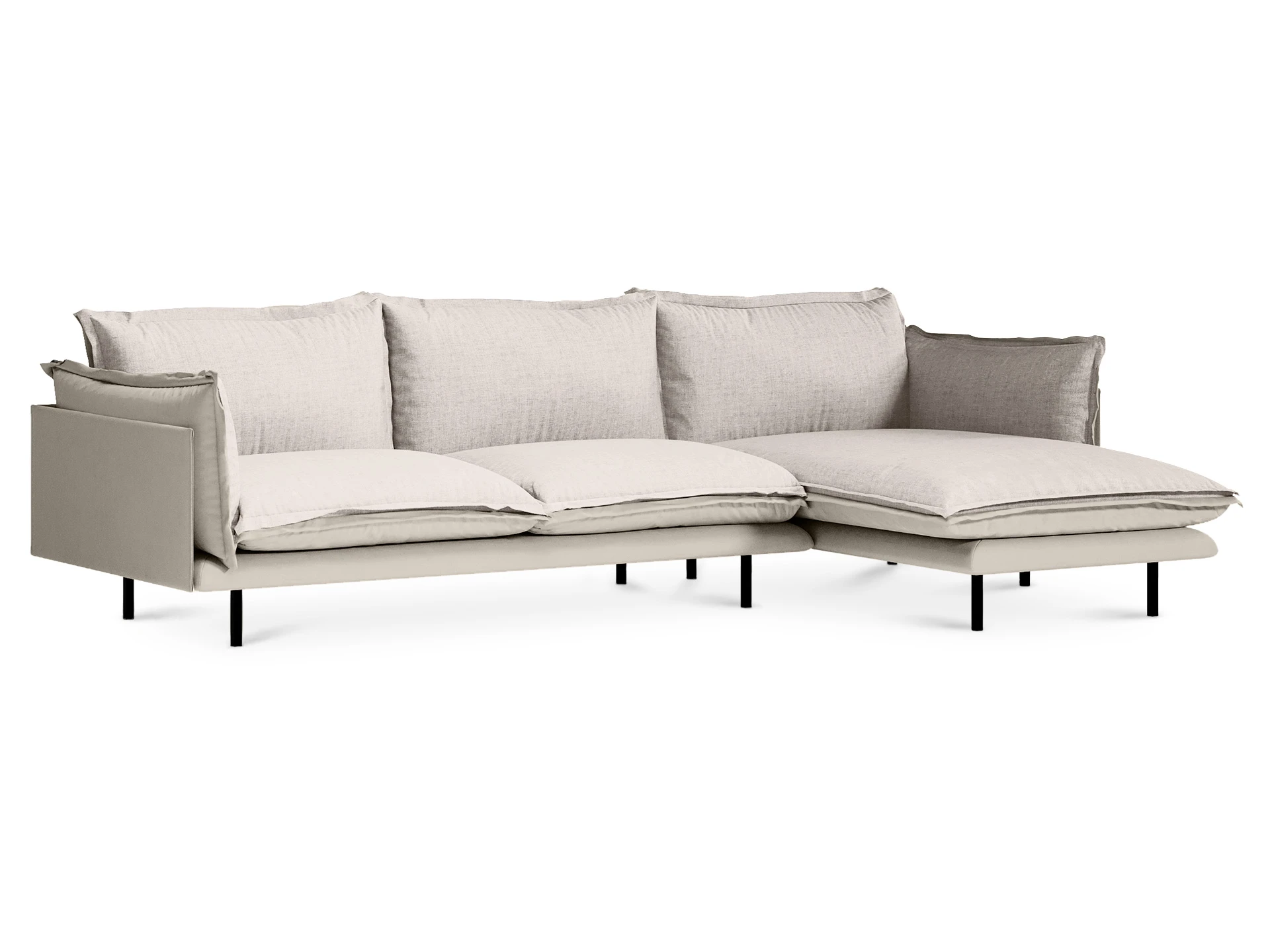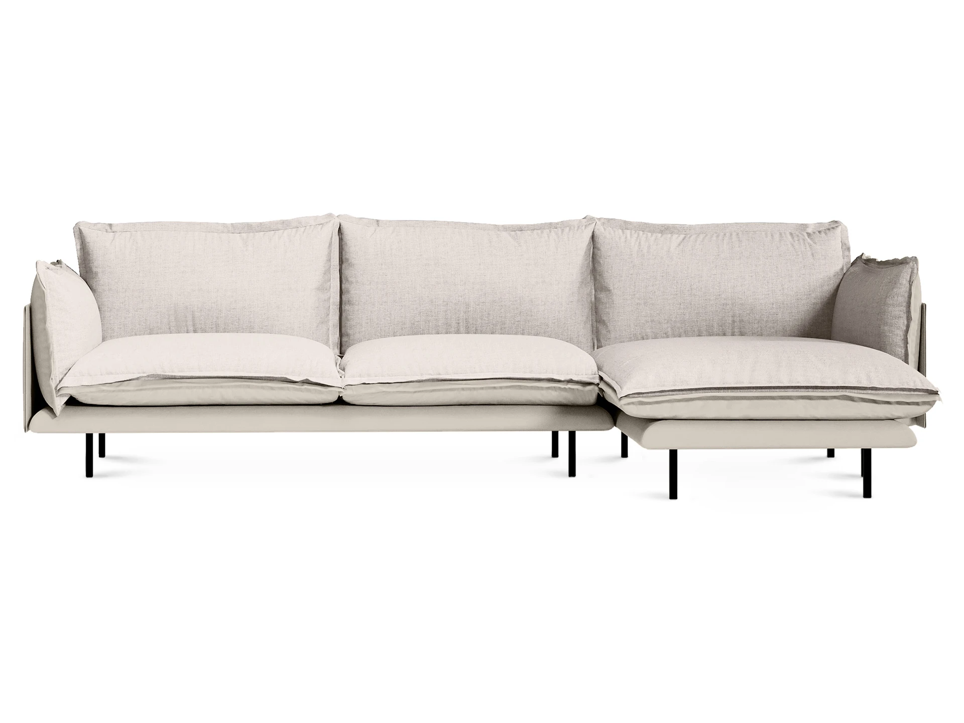 Металлические опоры дивана обеспечивают устойчивость, они окрашены черной матовой эмалью. А также снабжены пластиковыми подпятниками и сохраняют напольное покрытие от царапин.