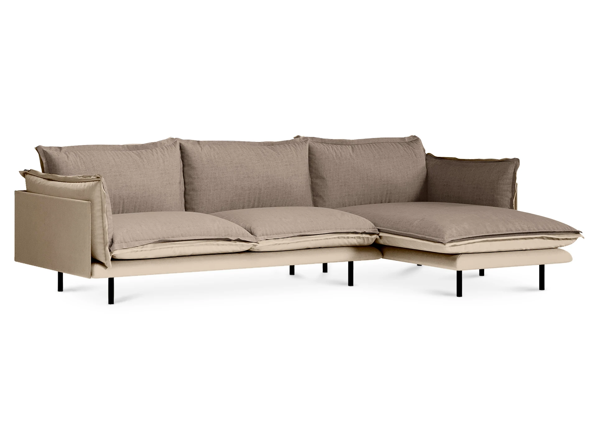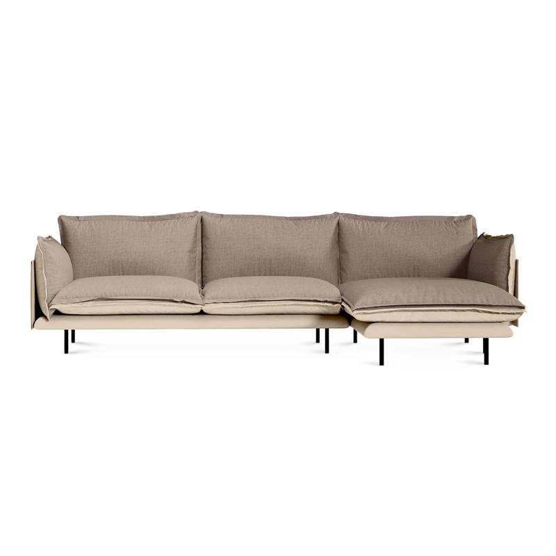 Металлические опоры дивана обеспечивают устойчивость, они окрашены черной матовой эмалью. А также снабжены пластиковыми подпятниками и сохраняют напольное покрытие от царапин.