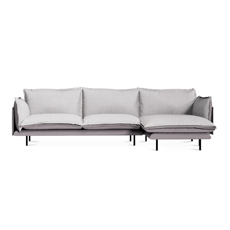 Металлические опоры дивана обеспечивают устойчивость, они окрашены черной матовой эмалью. А также снабжены пластиковыми подпятниками и сохраняют напольное покрытие от царапин.