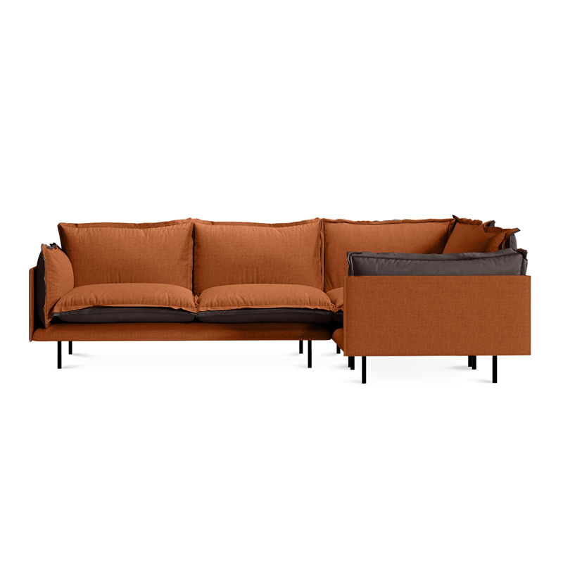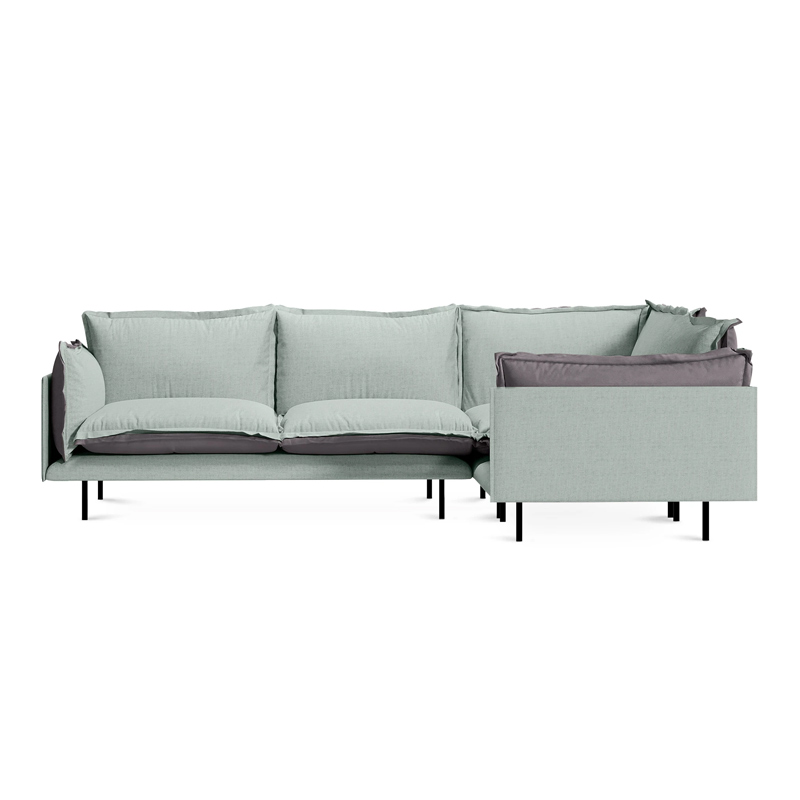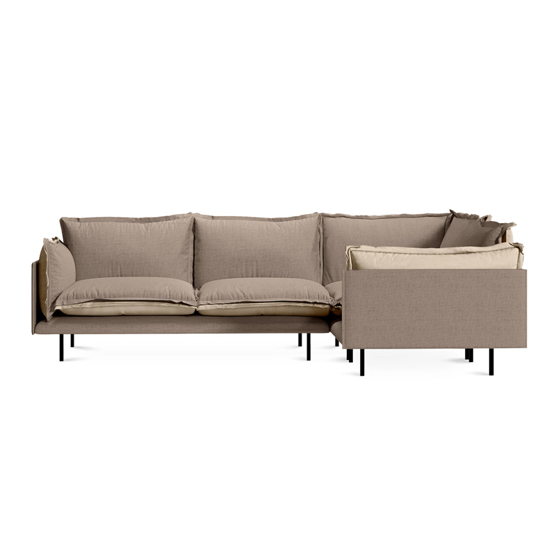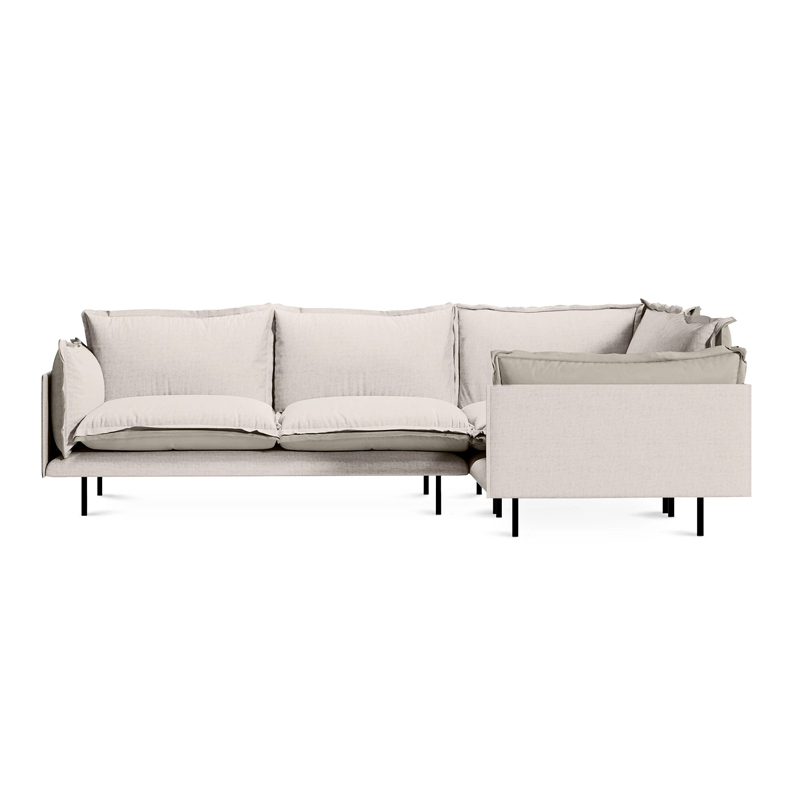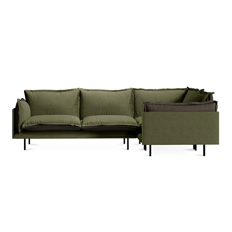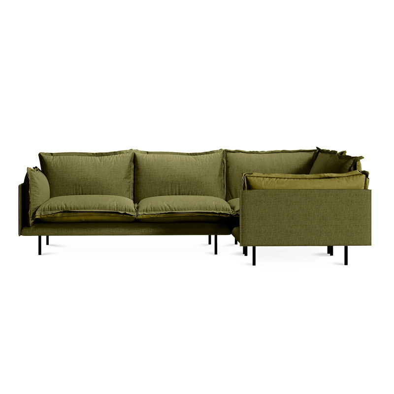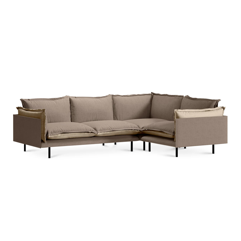 Угол и завершение дивана могут находиться справа или слева. Модули соединяются друг с другом с помощью металлических зацепов.
