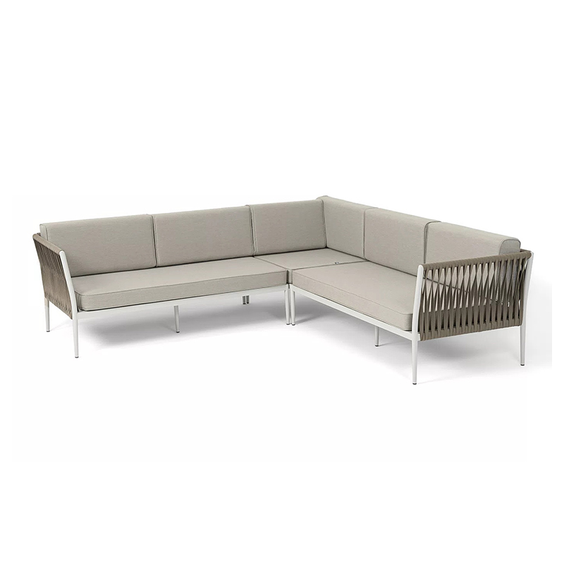 "Касабланка" диван модульный плетеный из роупа, каркас алюминий, роуп серо-коричневый 23мм, ткань бежевая 15052