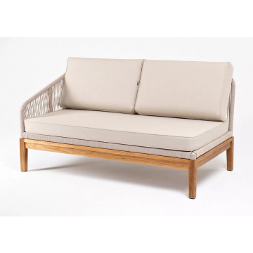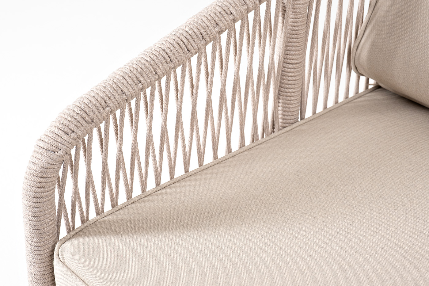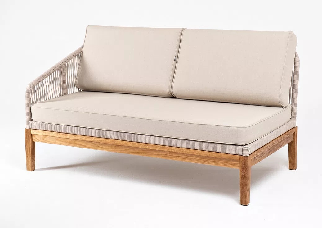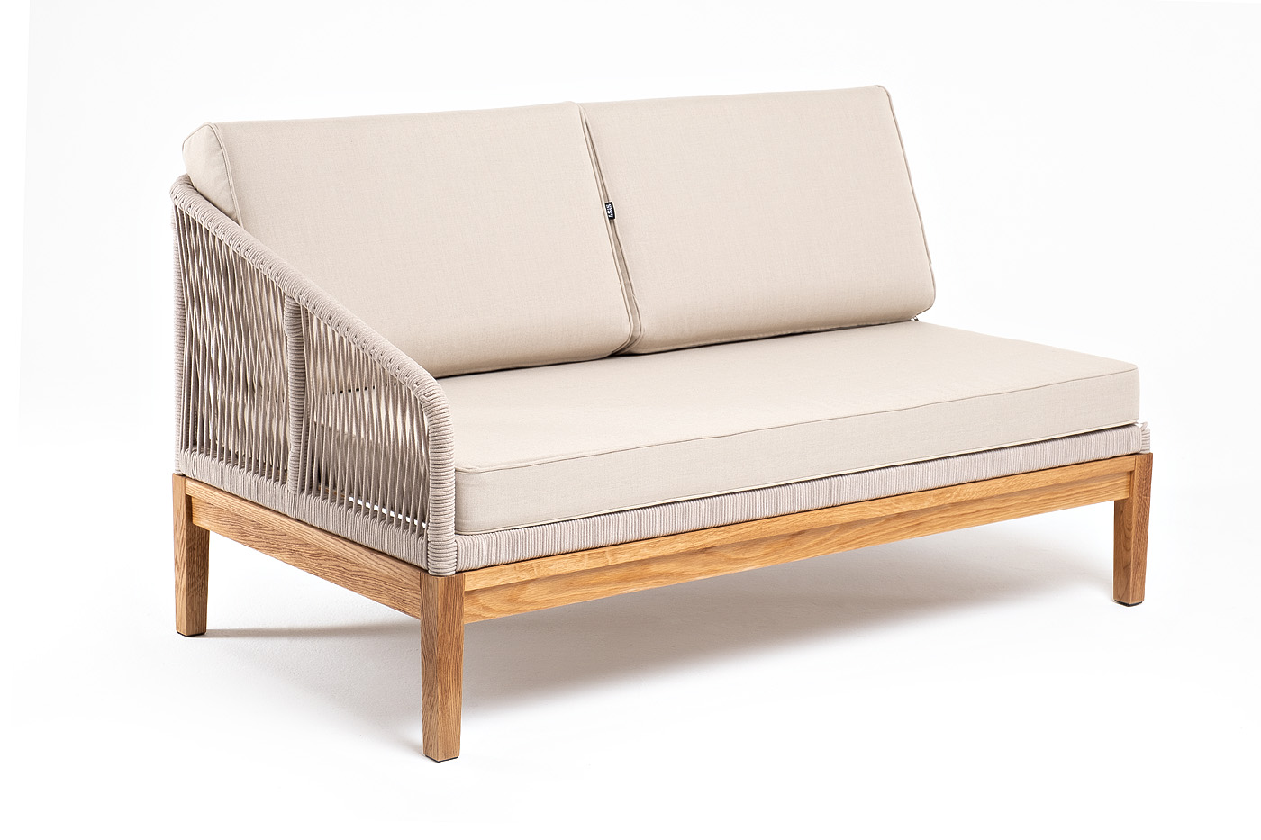 "Канны" правый модуль плетеный из роупа, основание дуб, роуп бежевый круглый, ткань бежевая 15052