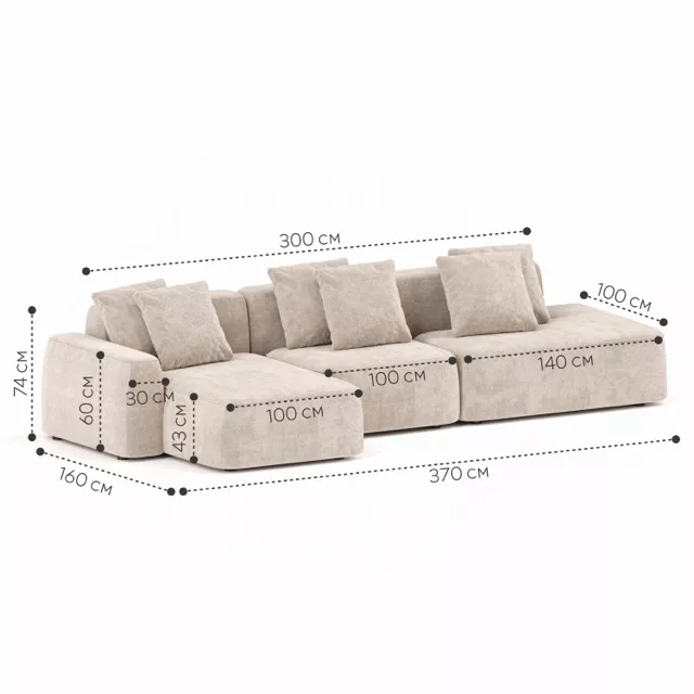 Диван не раскладывается в традиционном смысле этого слова, однако спальное место легко достигается благодаря банкетке, которая в нужный момент быстро фиксируется с помощью специального механизма. Модули можно передвигать, а также докупать при необходимости. Диван отлично подходит как для больших пространств, так и для компактных квартир. Вы можете экспериментировать с расстановкой модулей, создавая уникальные конфигурации, которые соответствуют вашим потребностям и стилю жизни.