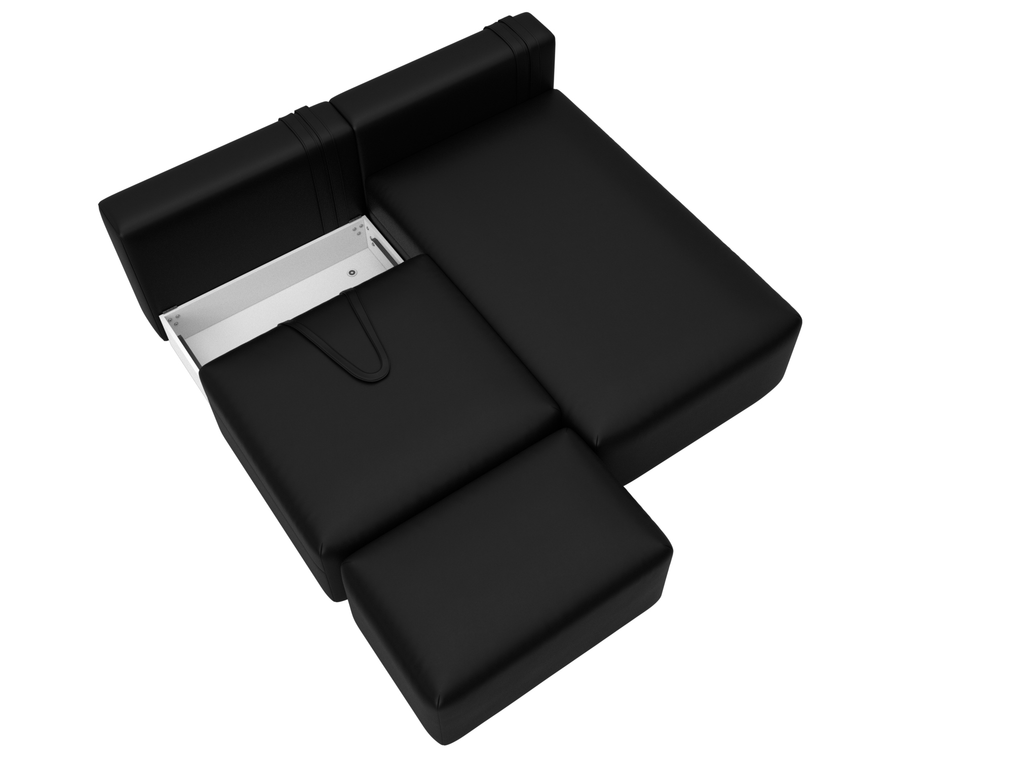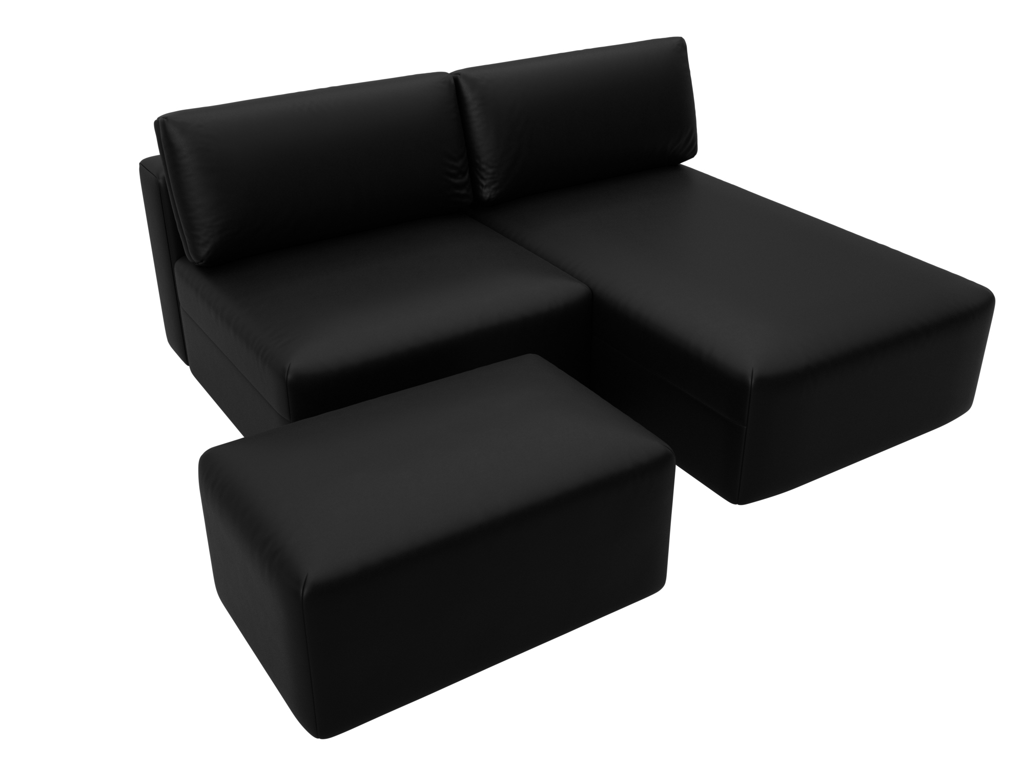 Диван угловой модульный с пуфом Лига-060 НПБ угол универсальный, GRIFON 18 черный, Экокожа