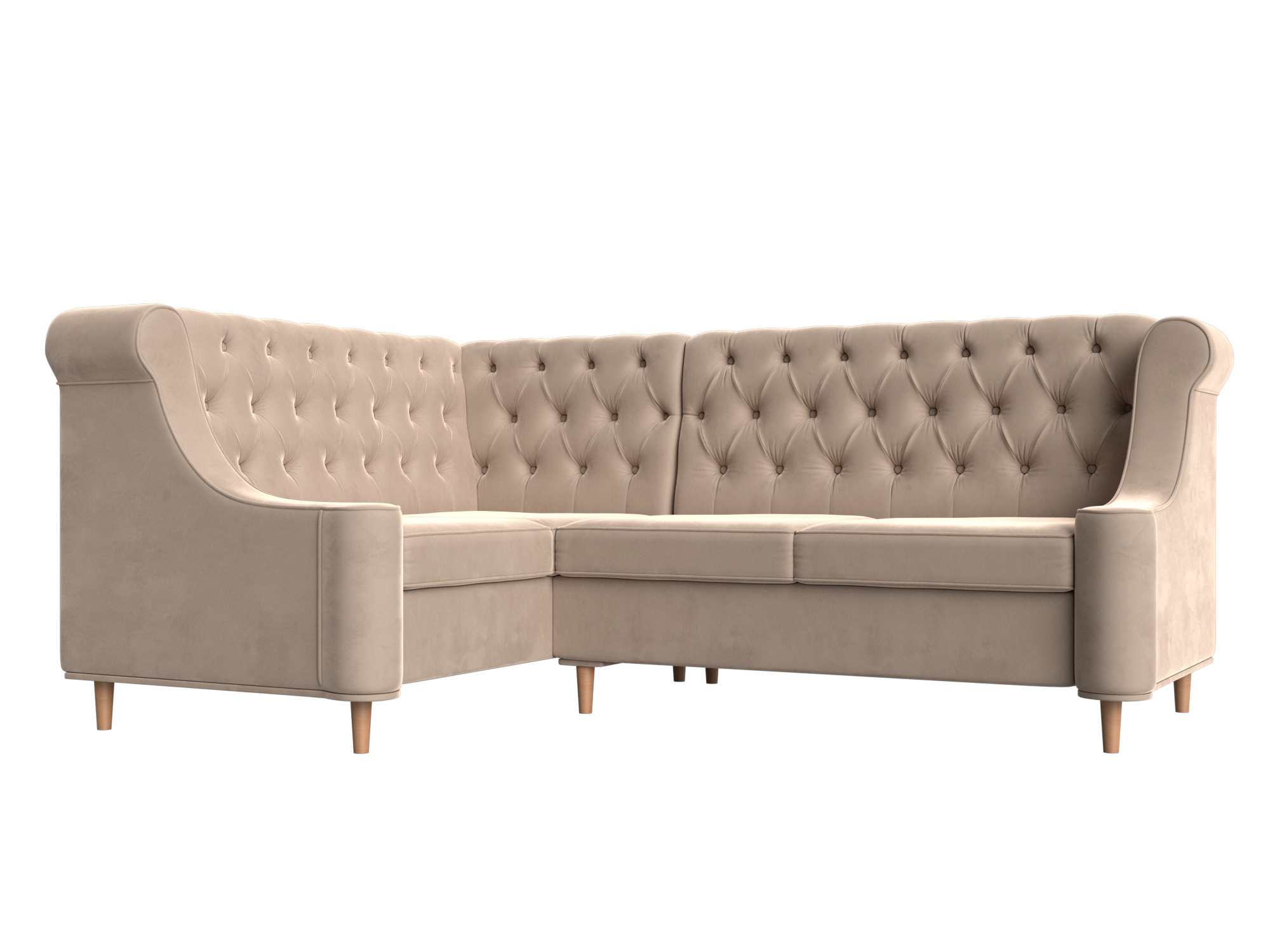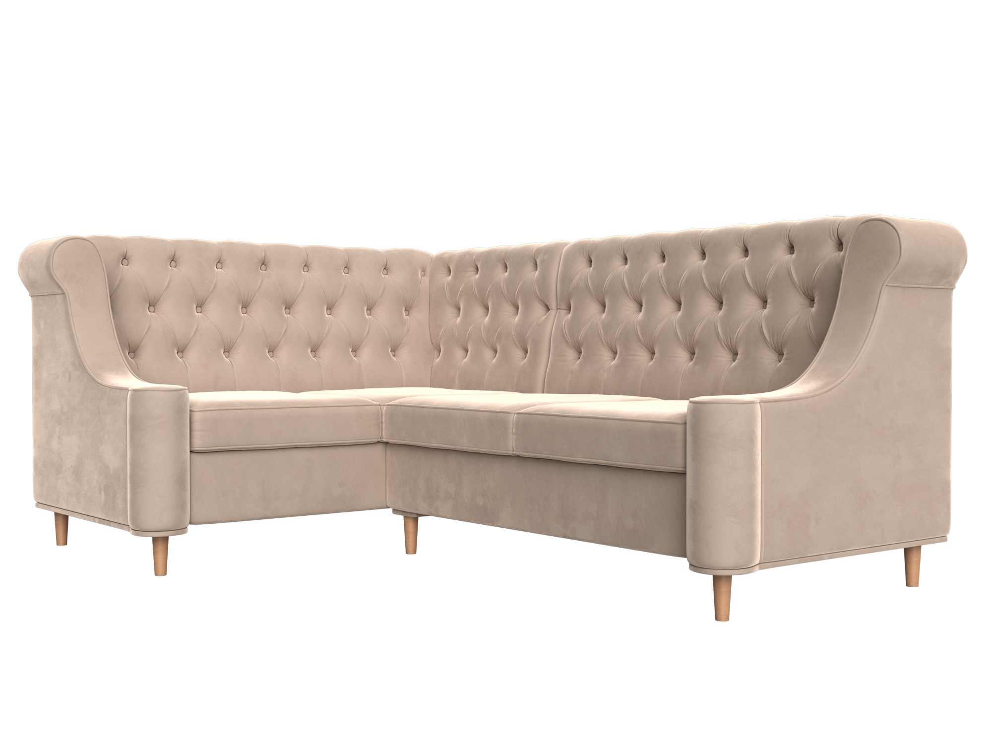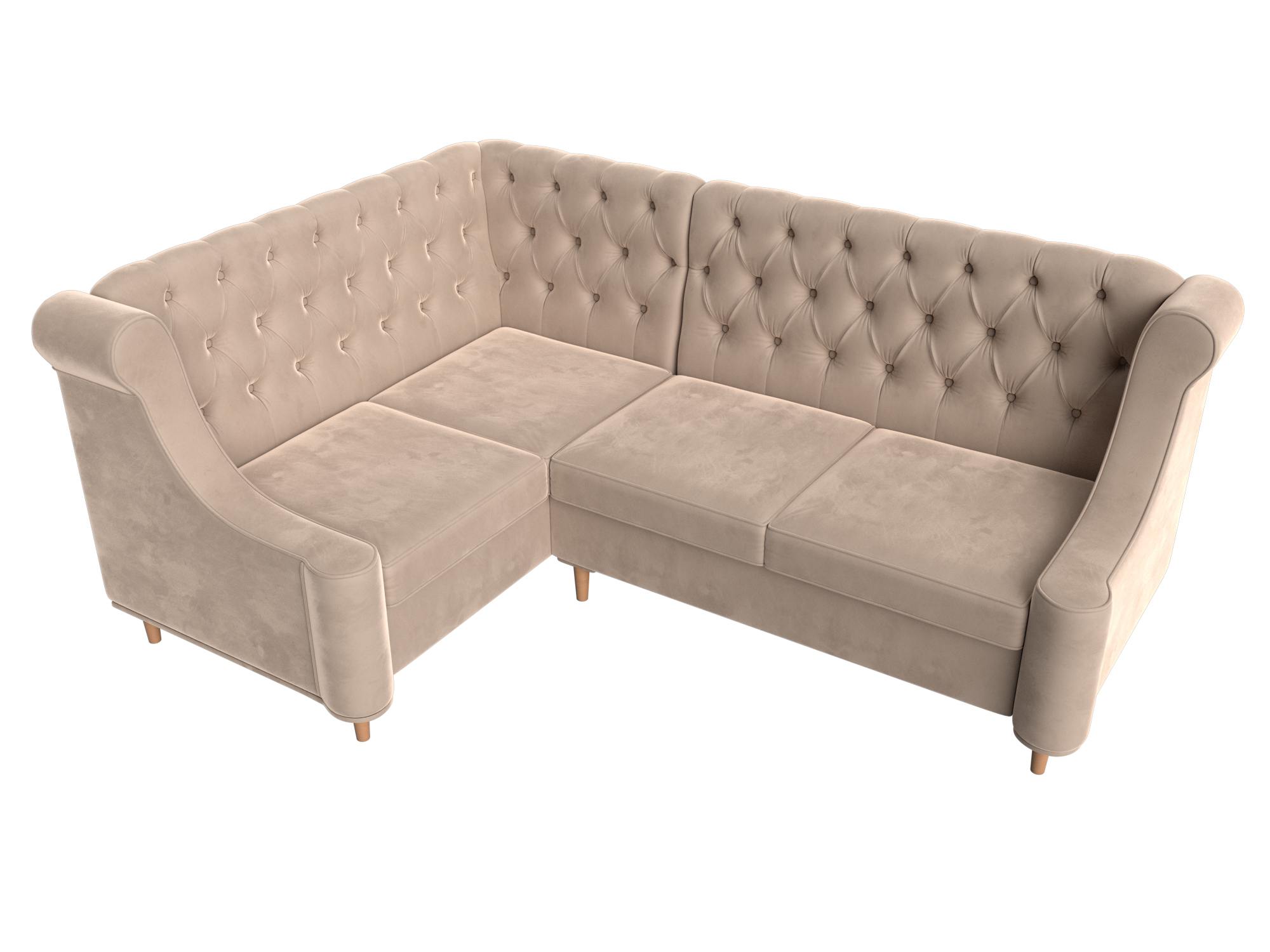 Диван кухонный угловой Бронкс левый угол Бежевый, Велюр