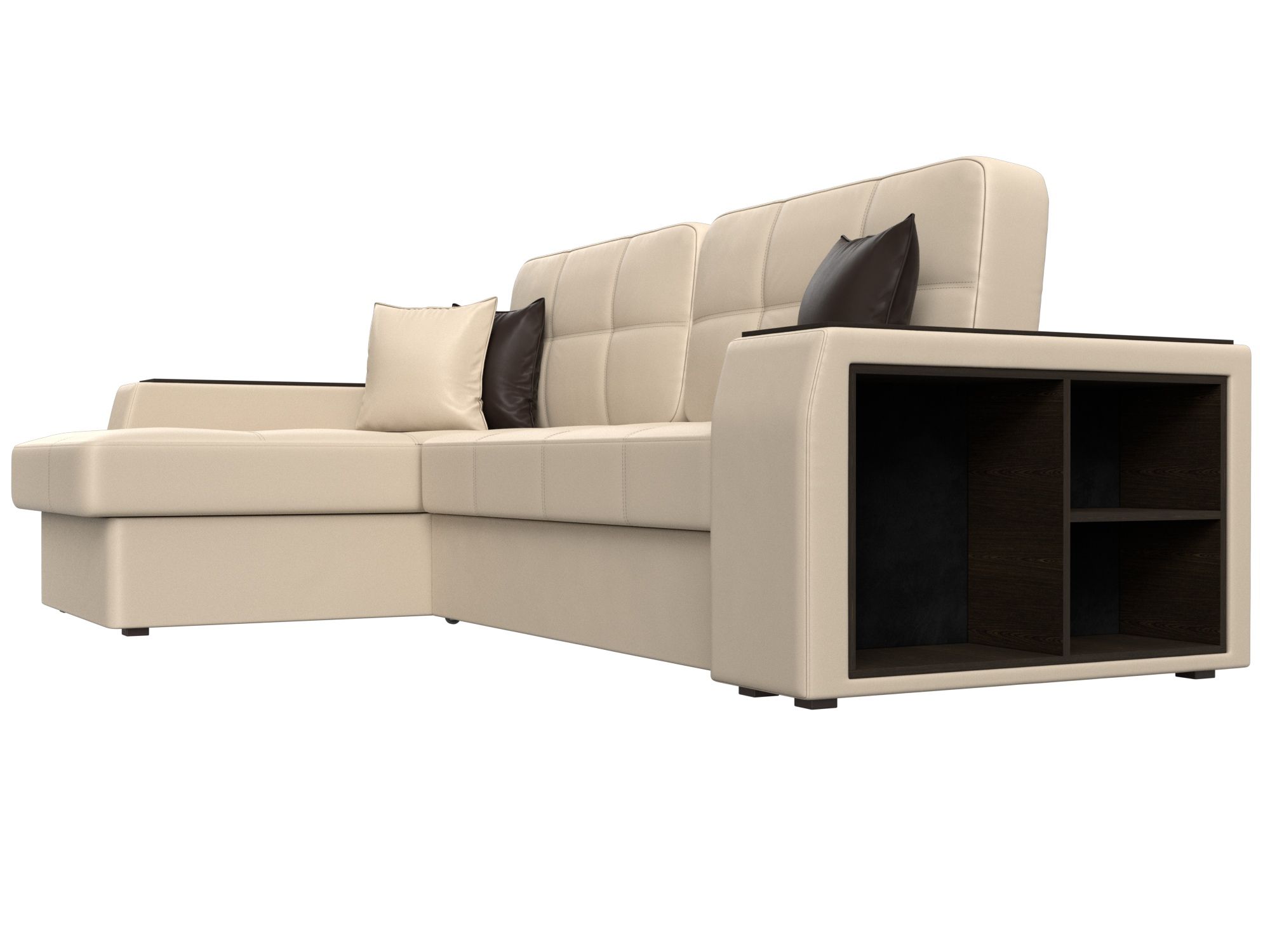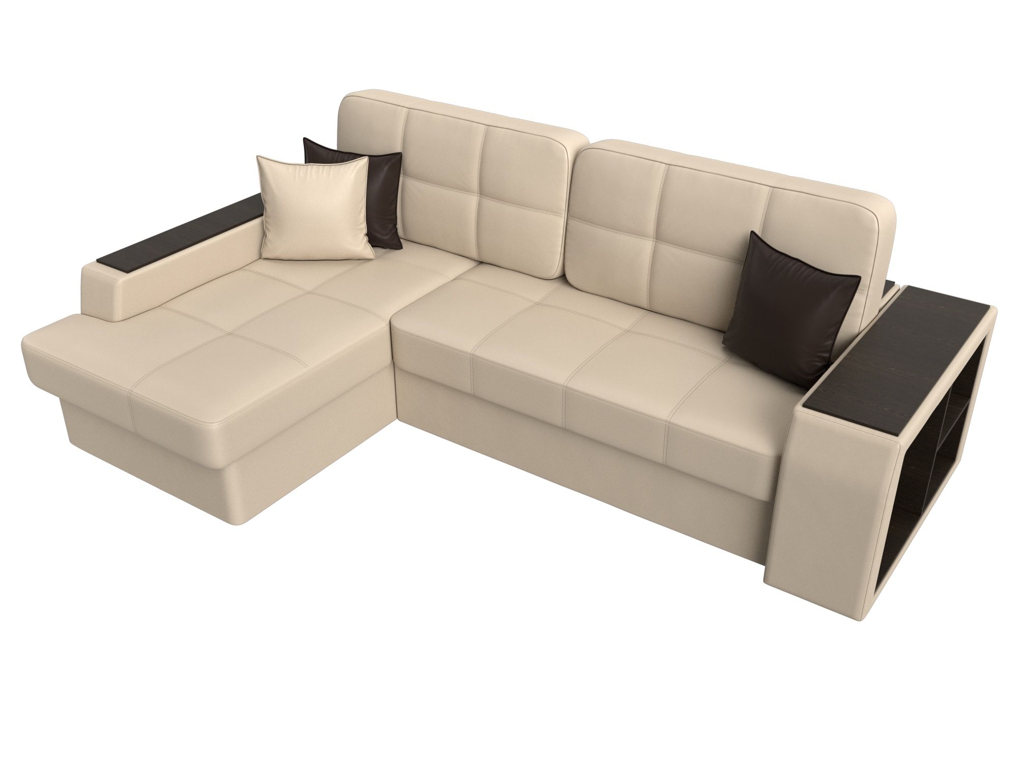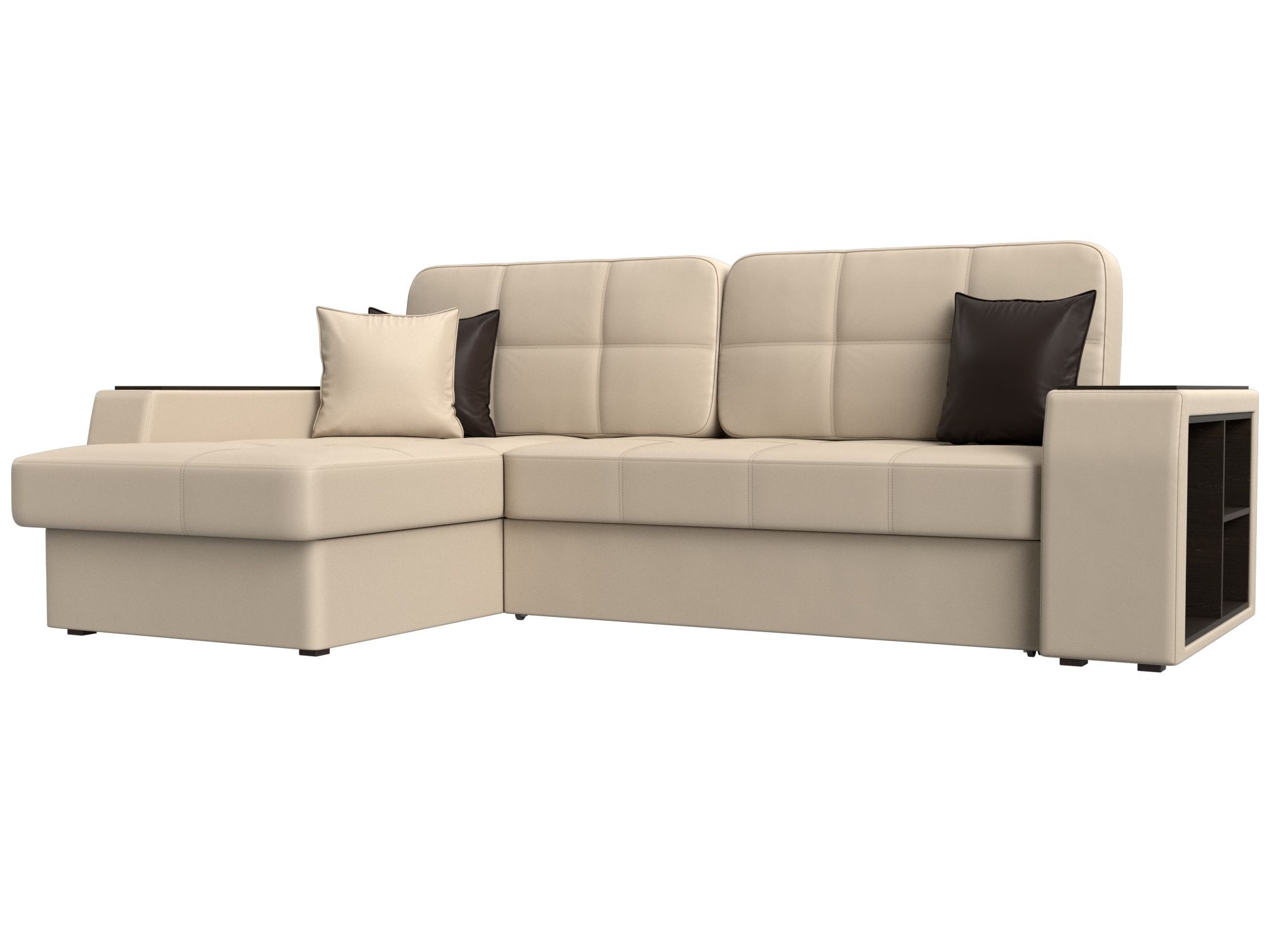 Диван угловой Брюссель левый угол, Бежевый, Коричневый, Экокожа