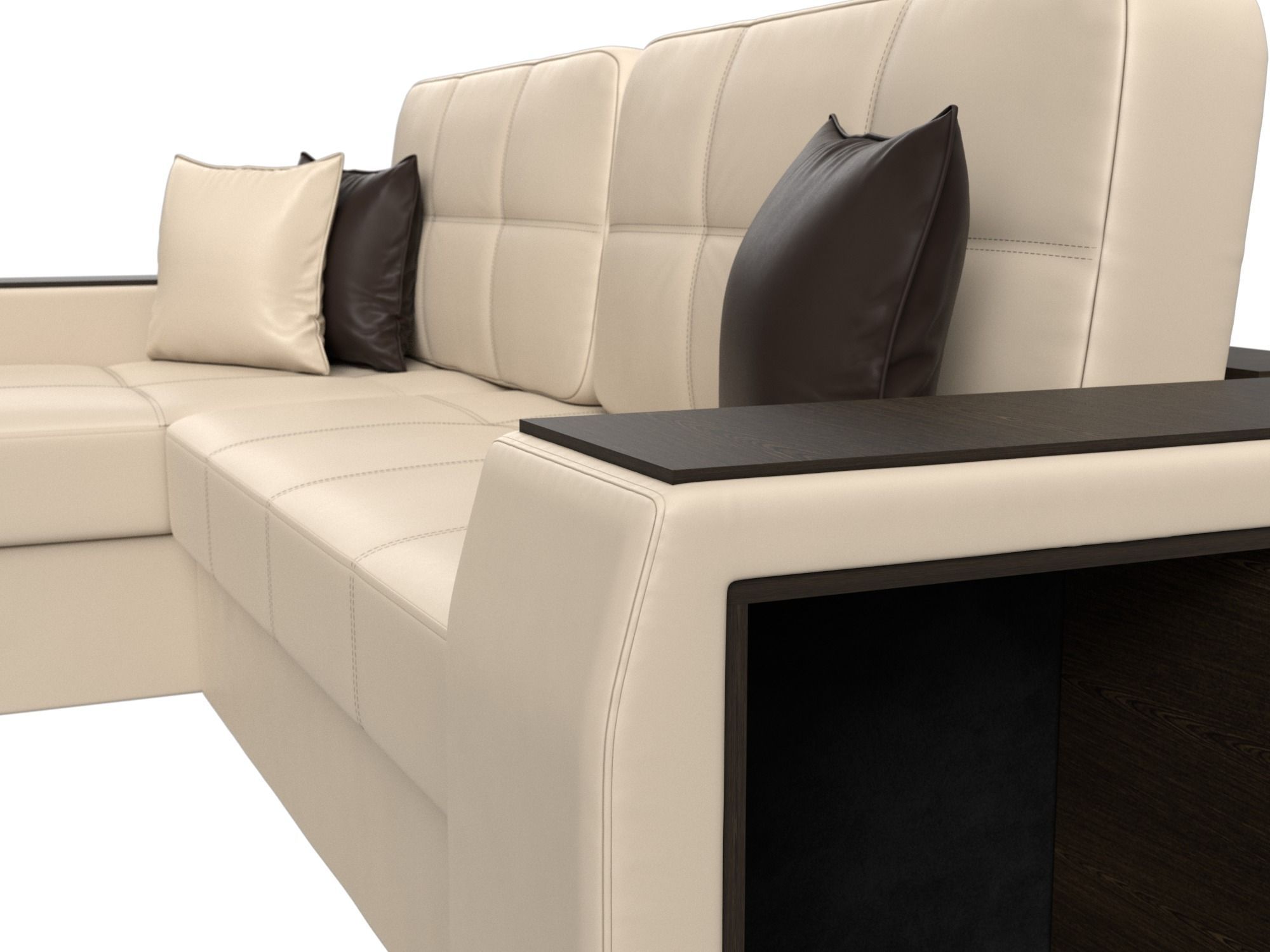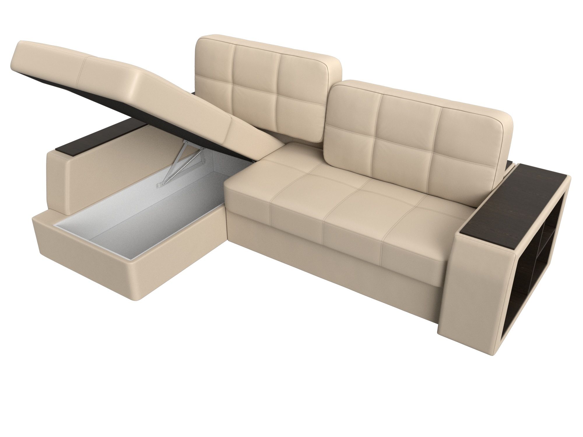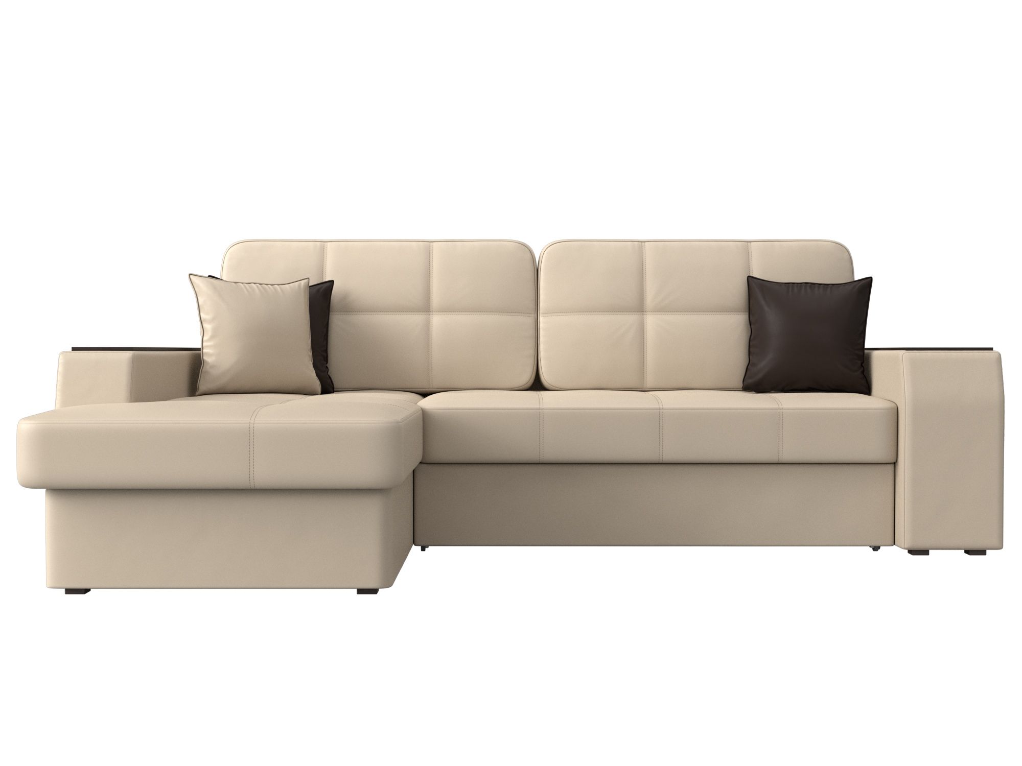 Диван угловой Брюссель левый угол, Бежевый, Коричневый, Экокожа