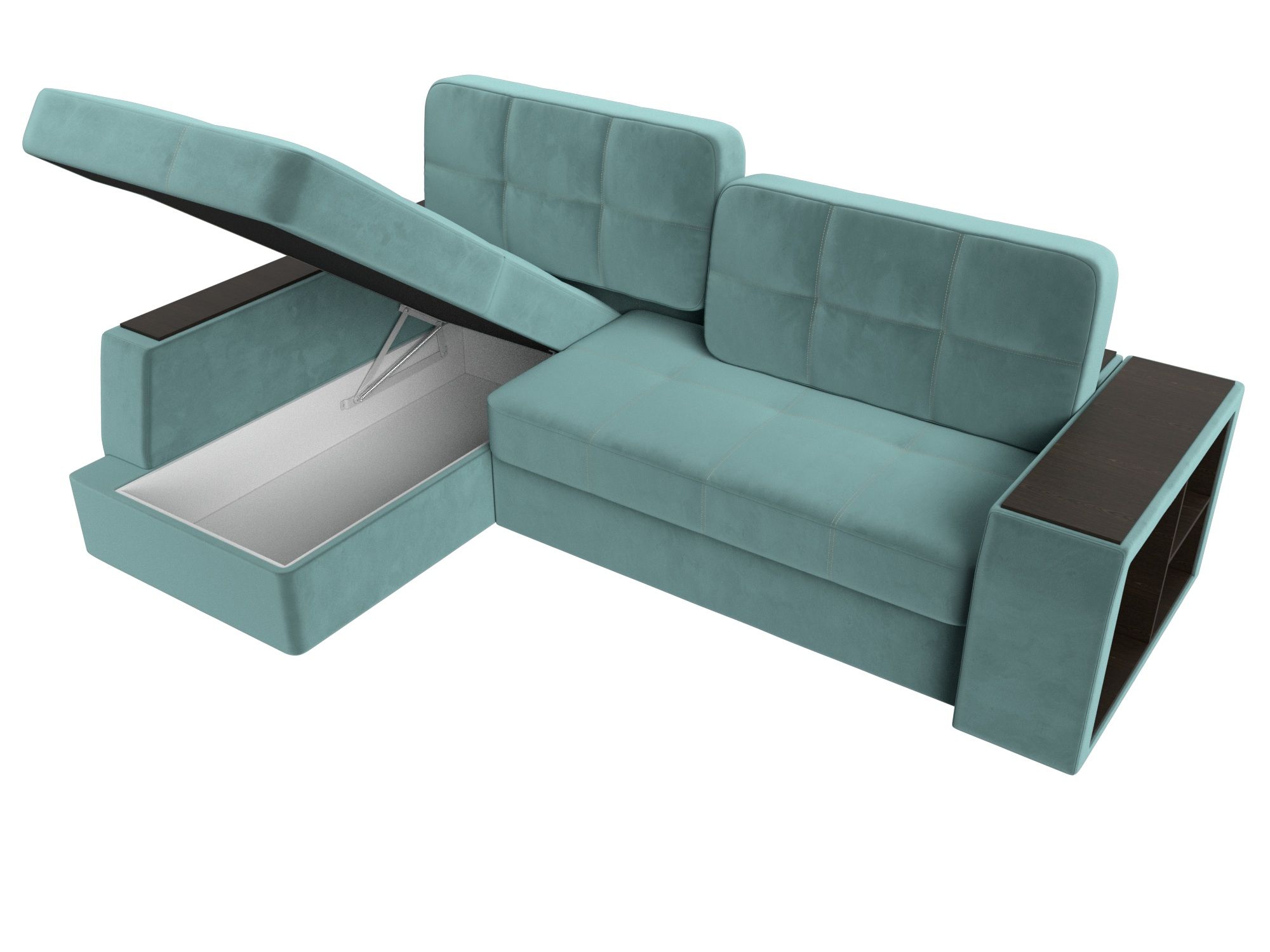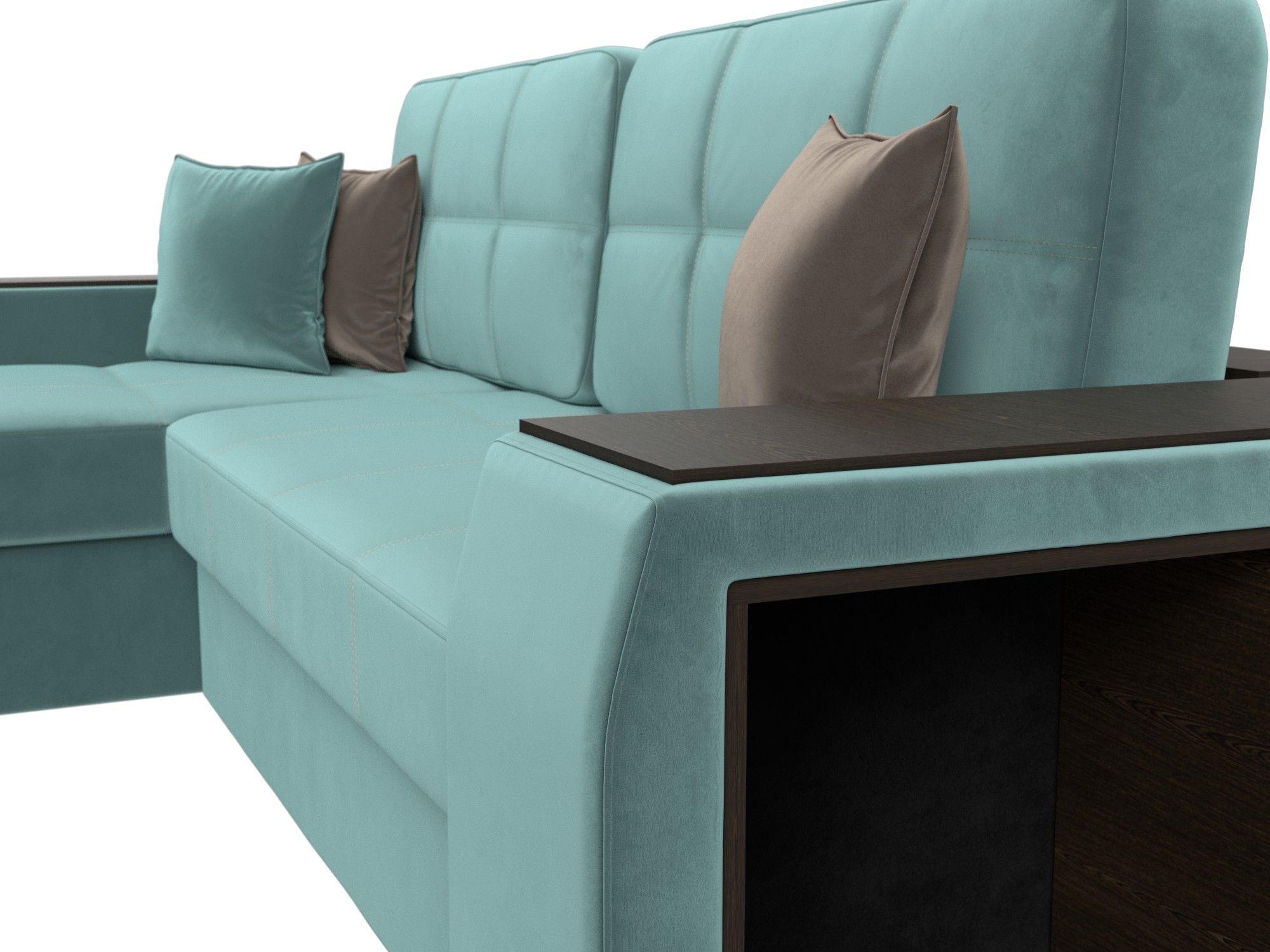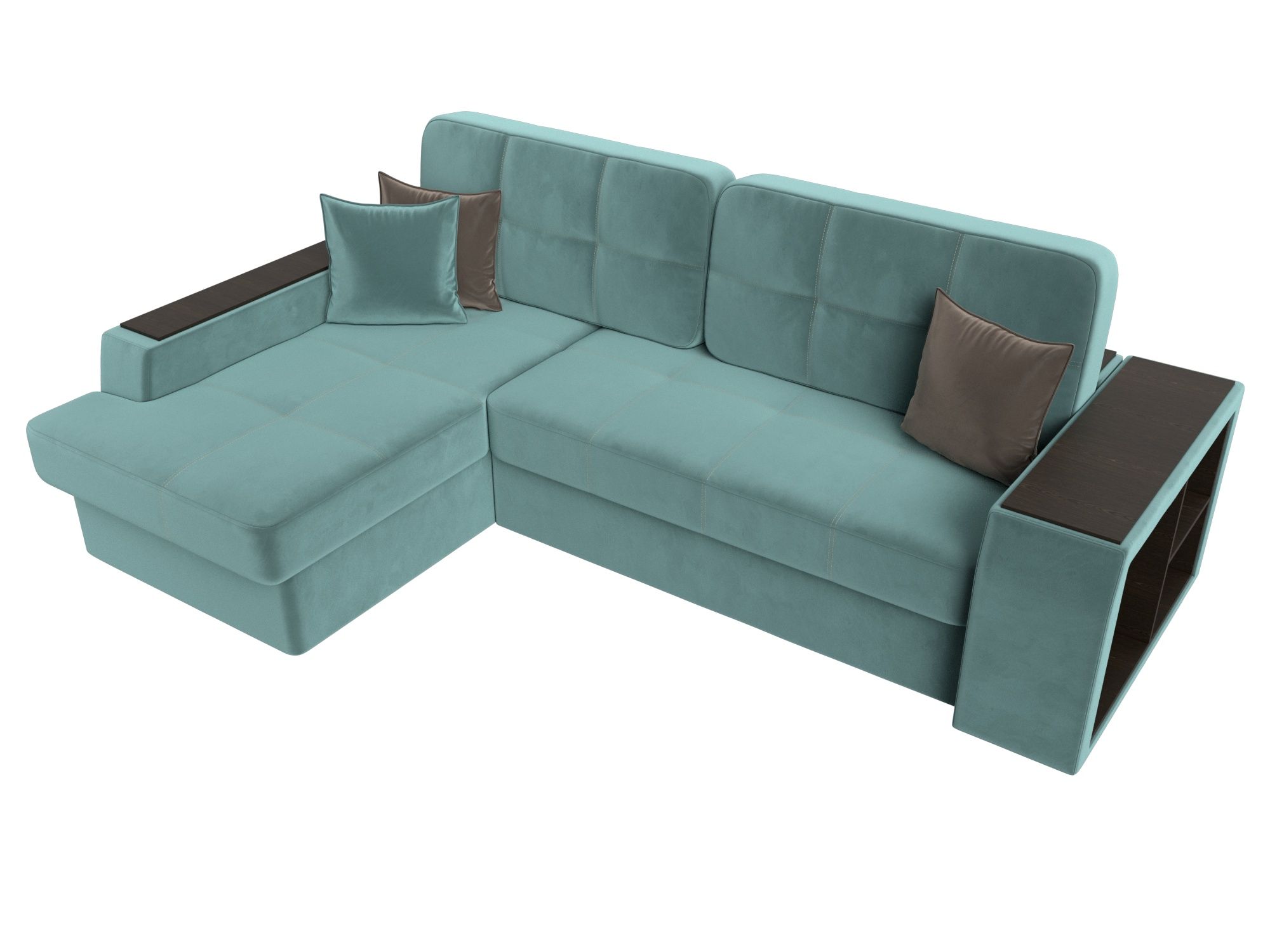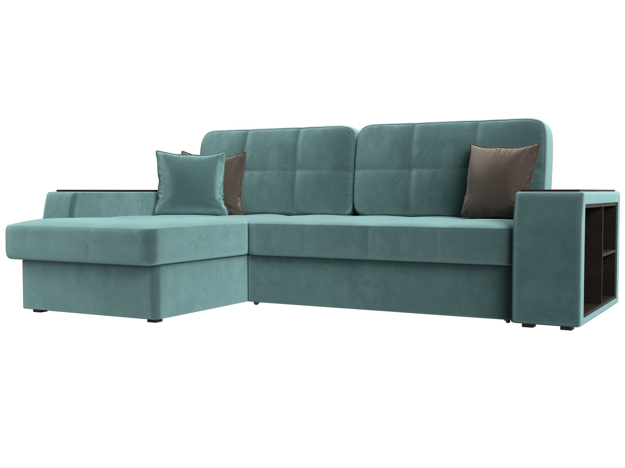 Диван угловой Брюссель левый угол, Seven 113 бирюзовый;Seven 727 коричневый, Велюр