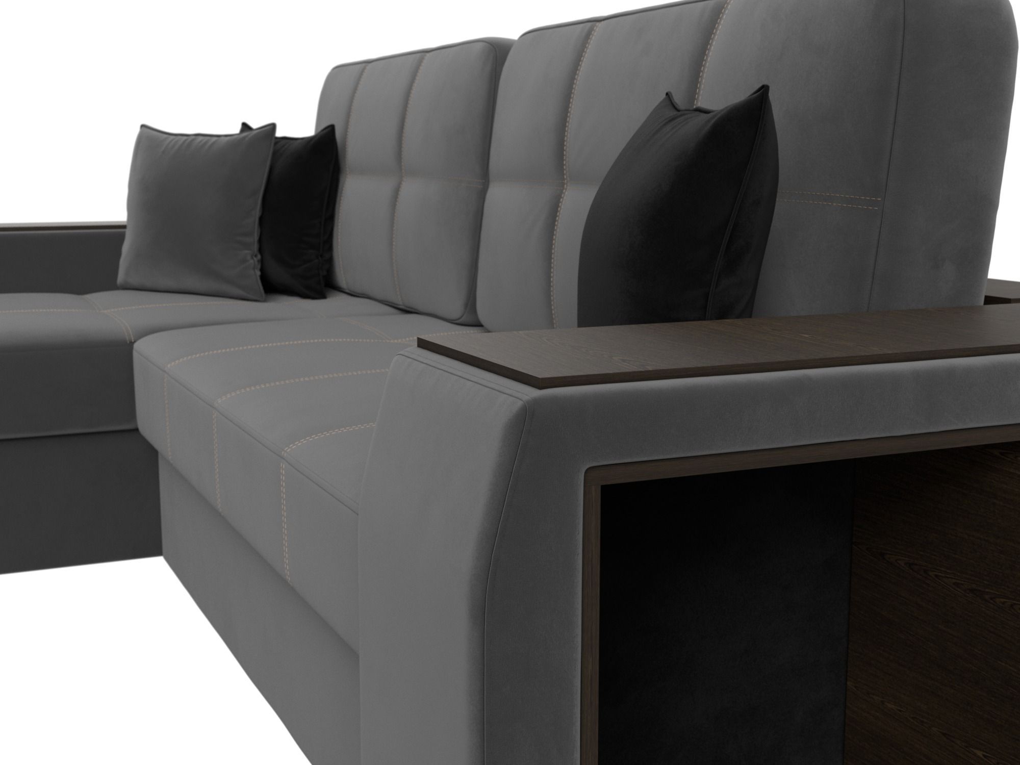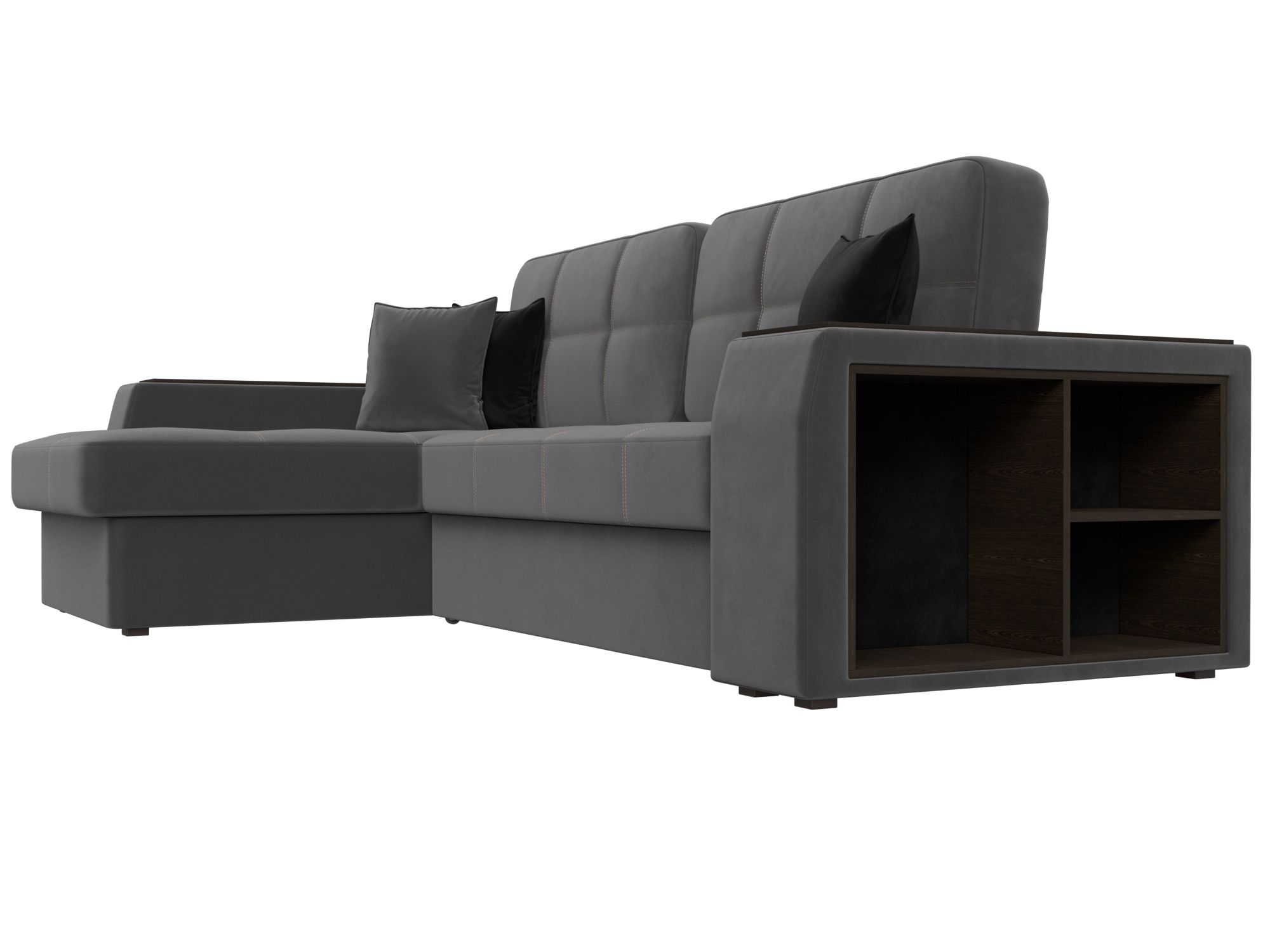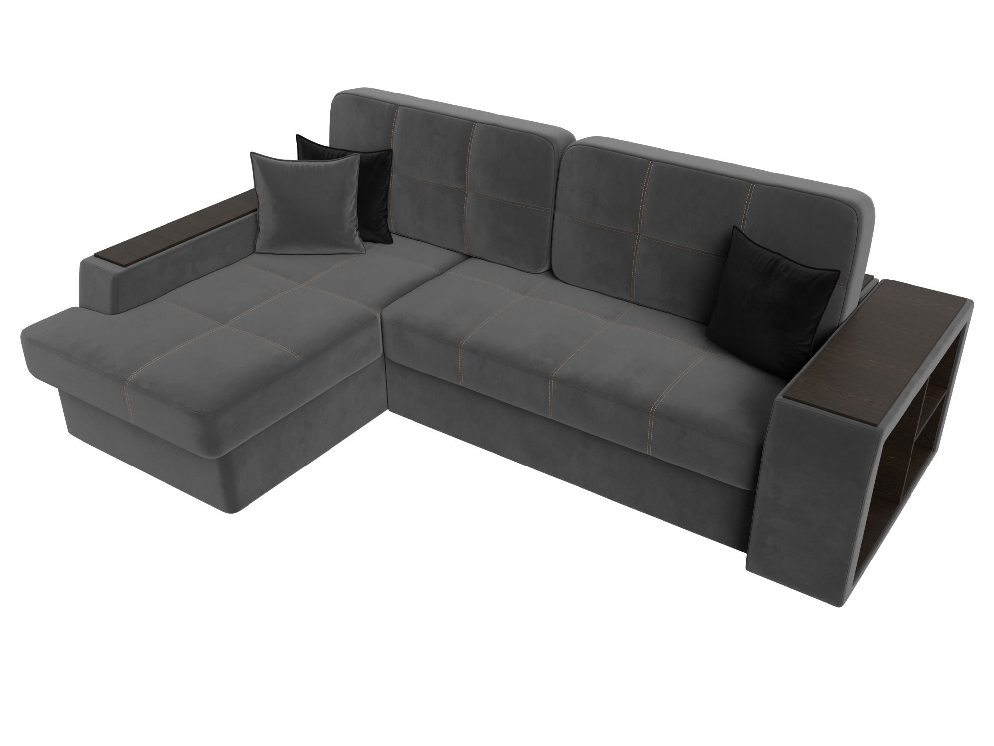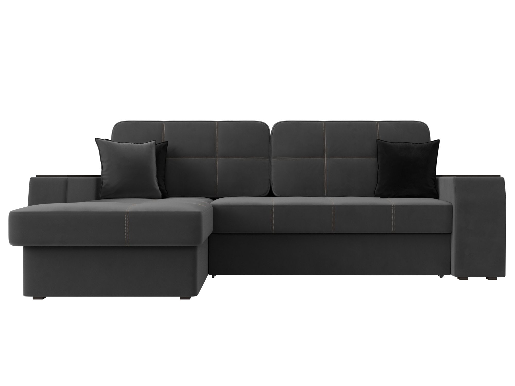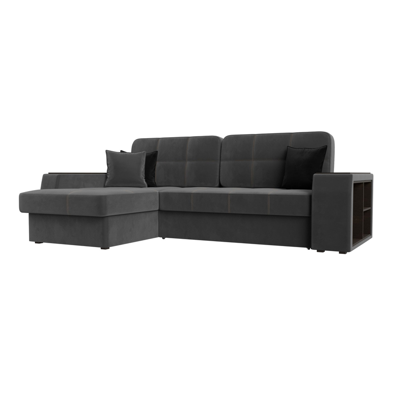 Диван угловой Брюссель левый угол, Seven 17 серый;Seven 35 черный, Велюр