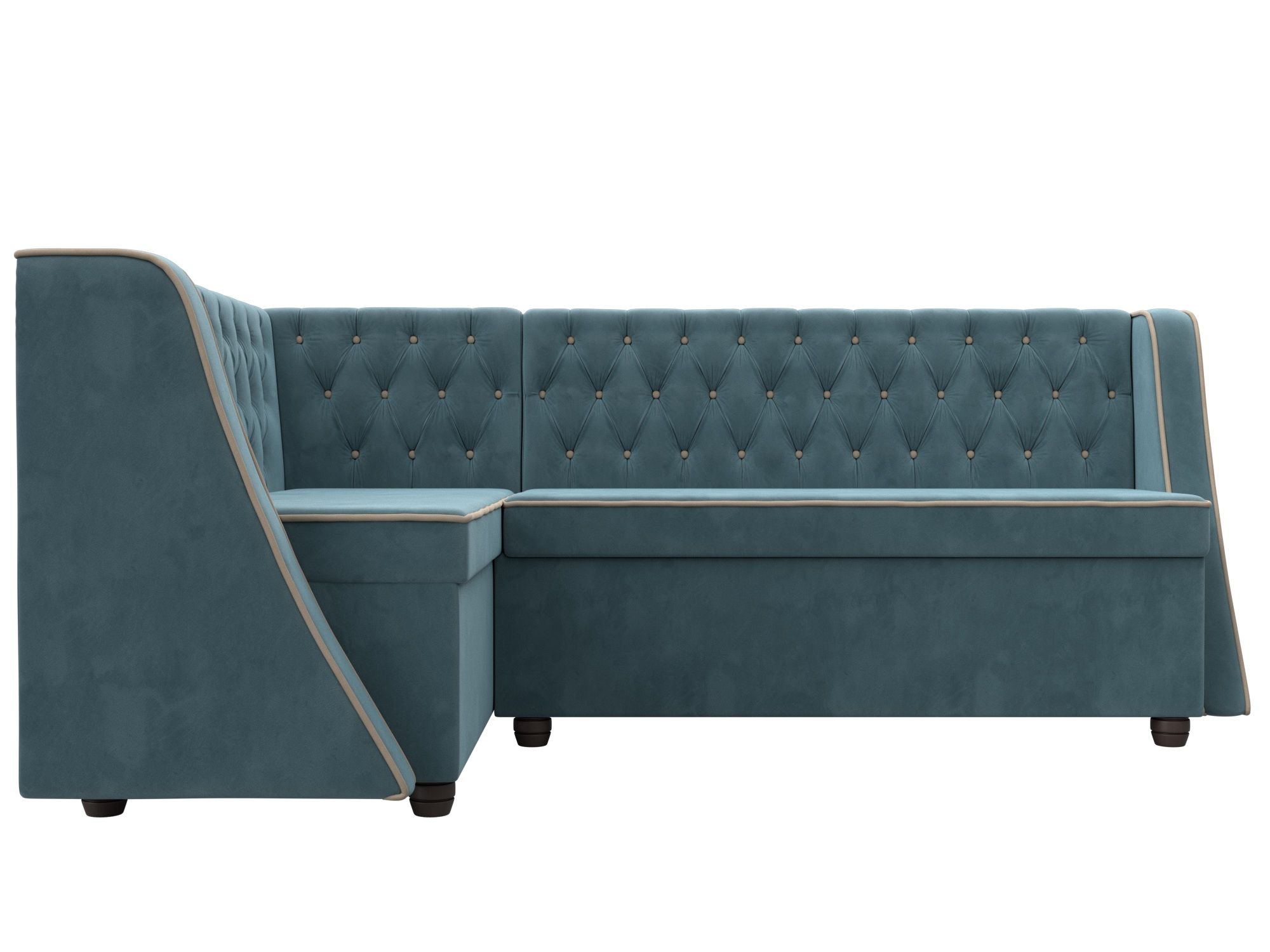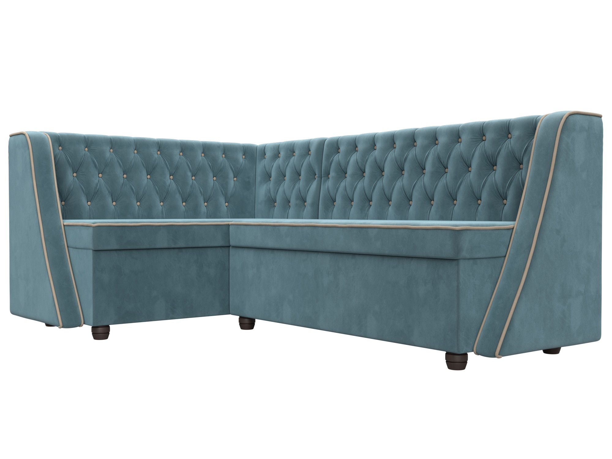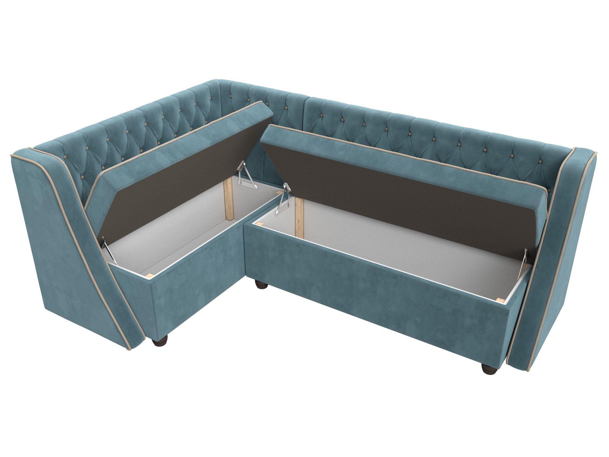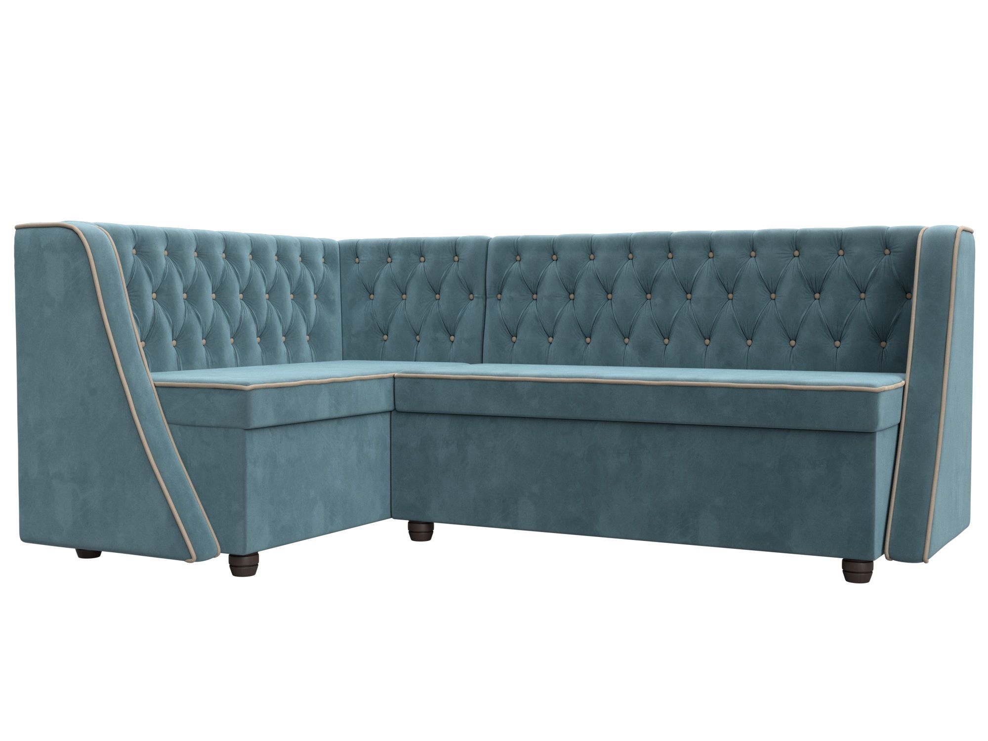 Диван кухонный угловой Лофт левый угол Бирюзовый\Бежевый, Велюр