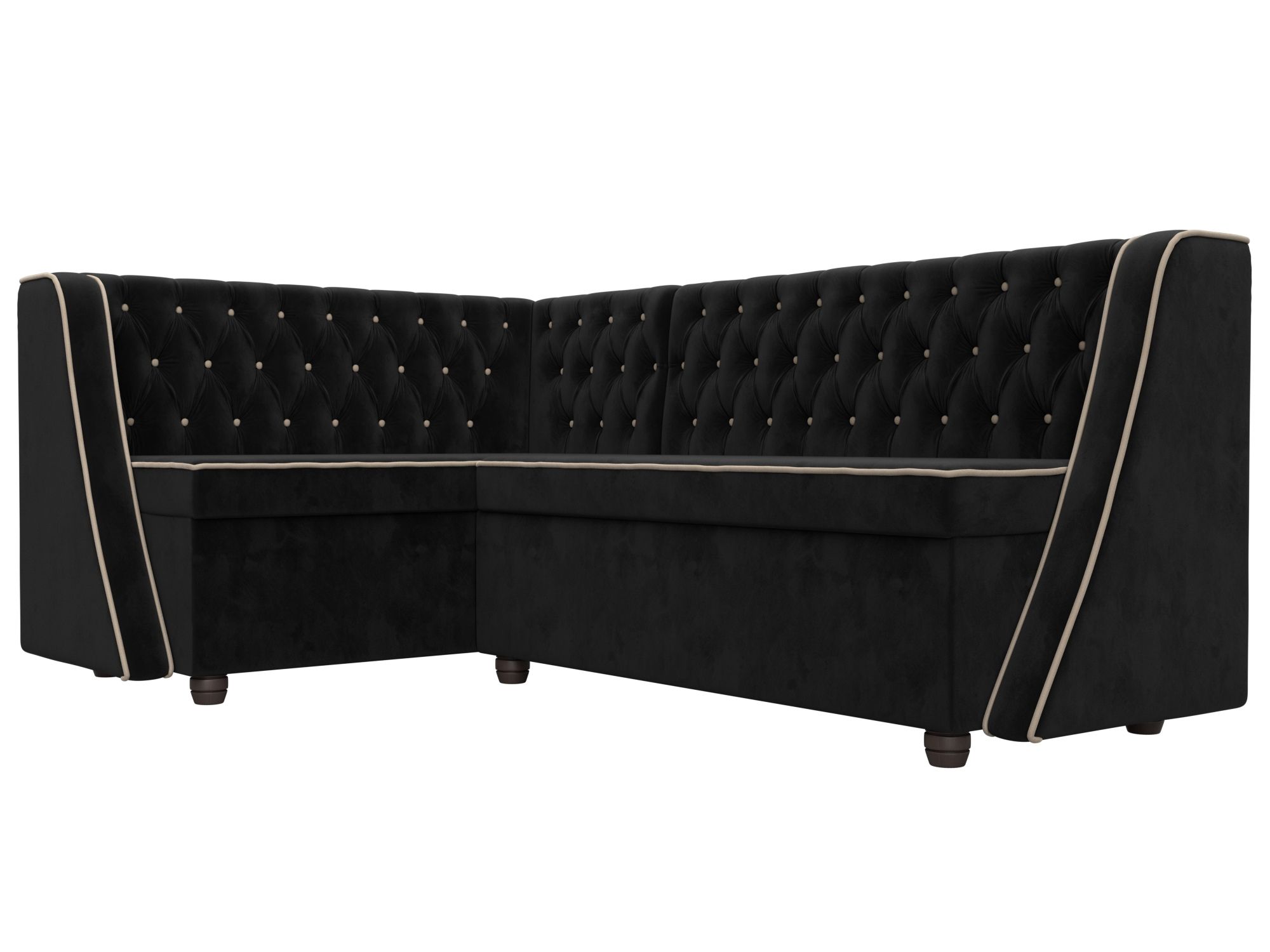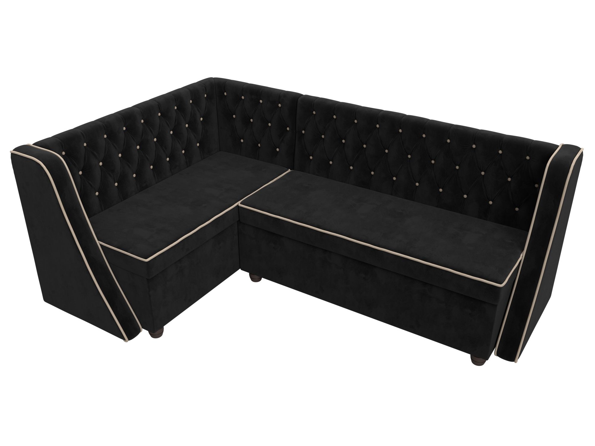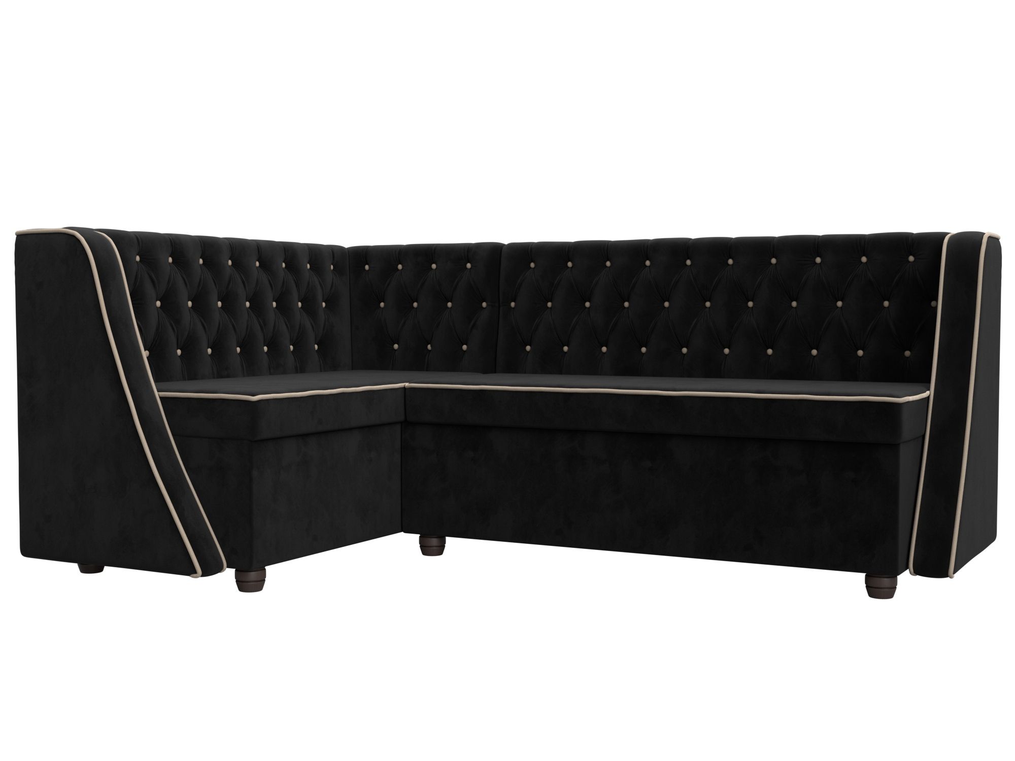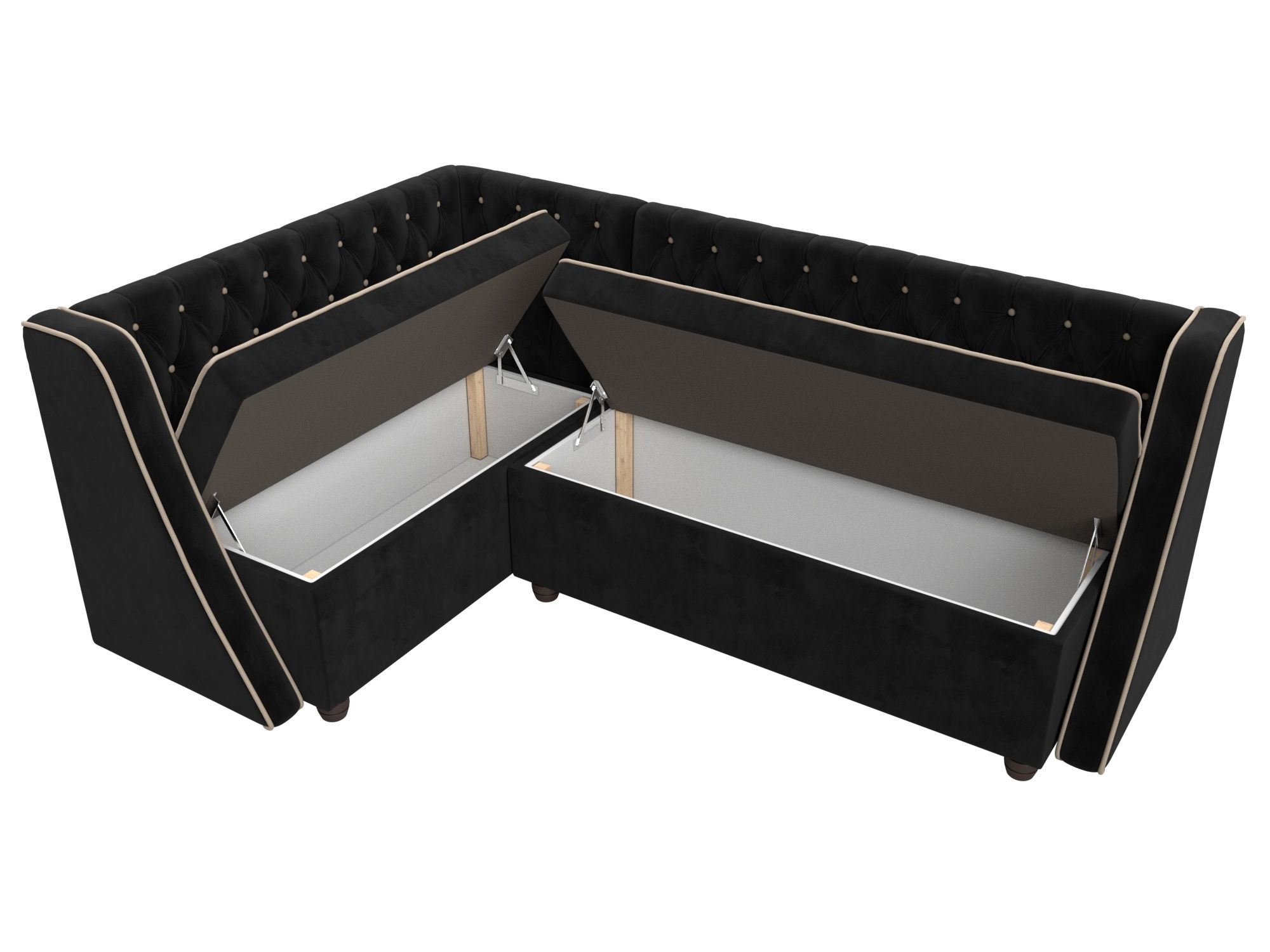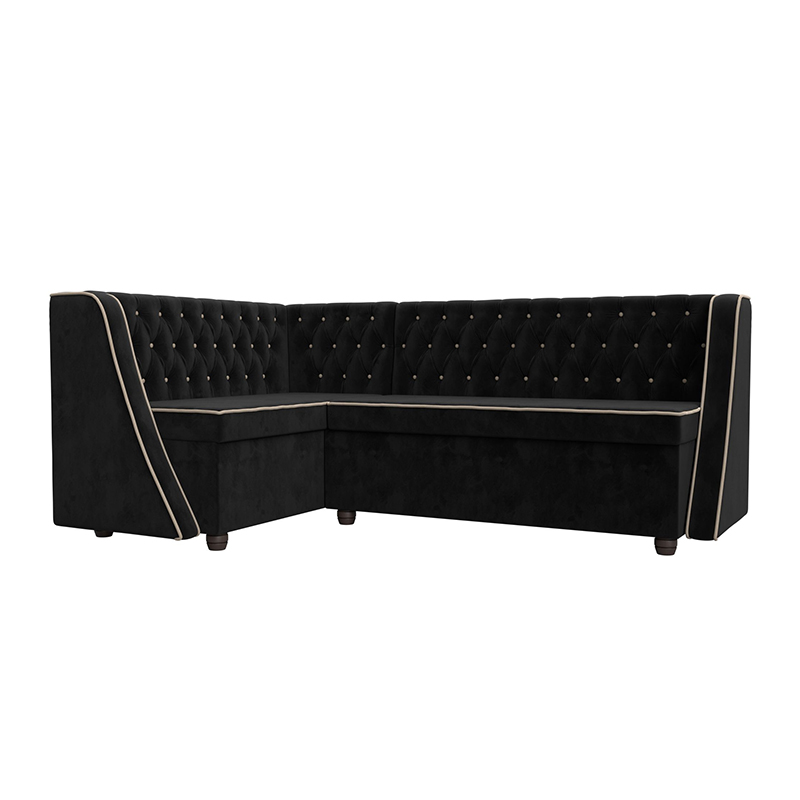 Диван кухонный угловой Лофт левый угол Черный\Бежевый, Велюр