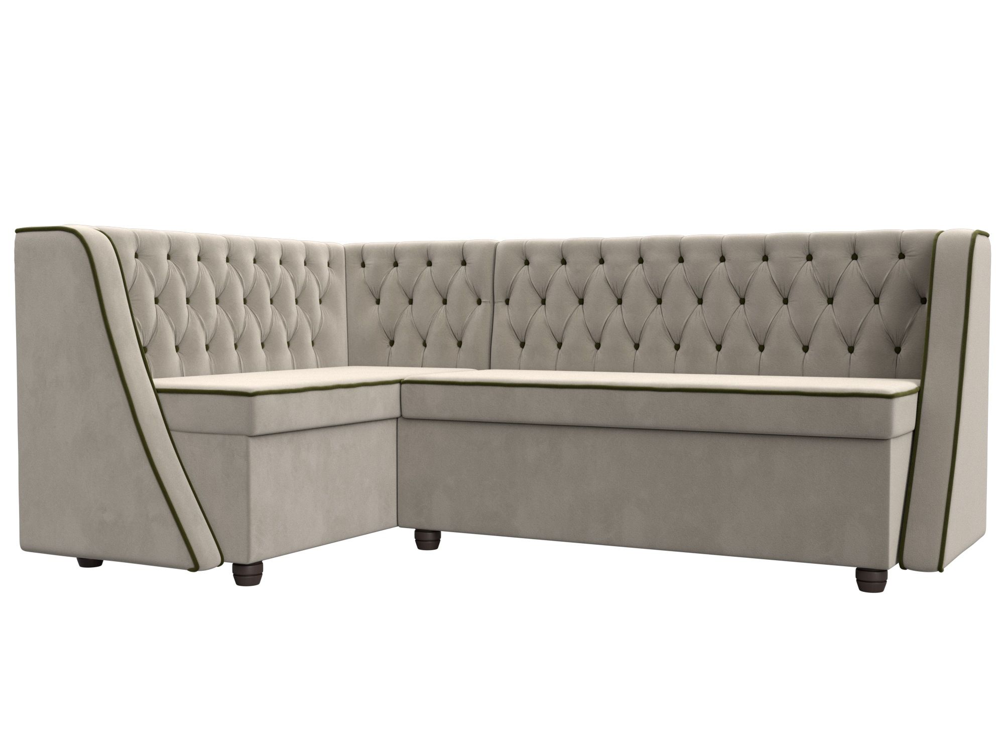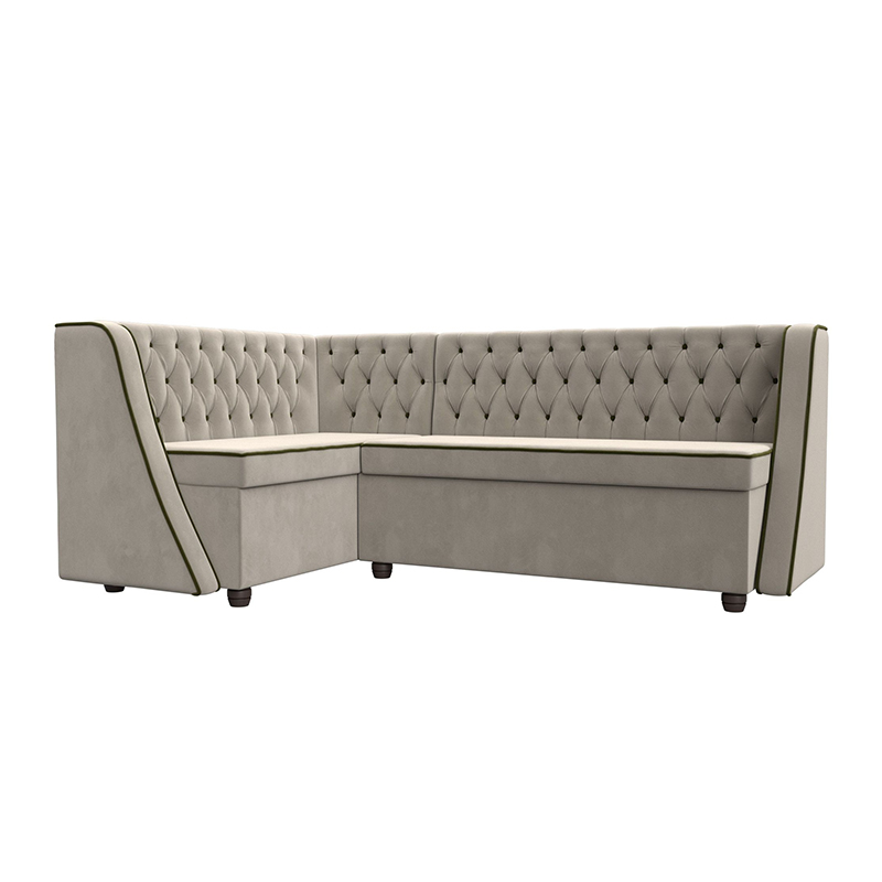 Диван кухонный угловой Лофт левый угол Бежевый\Зеленый, Микровельвет