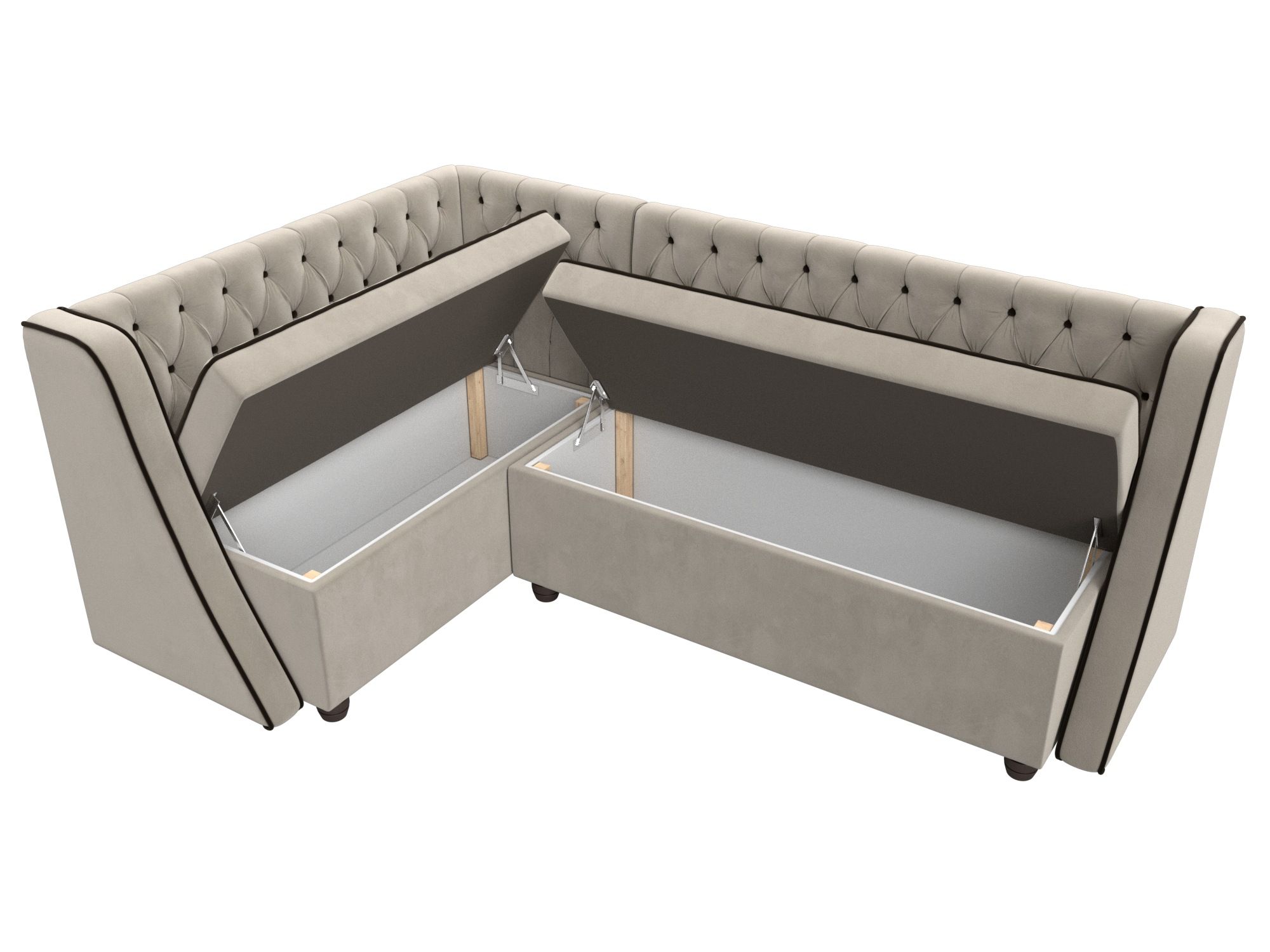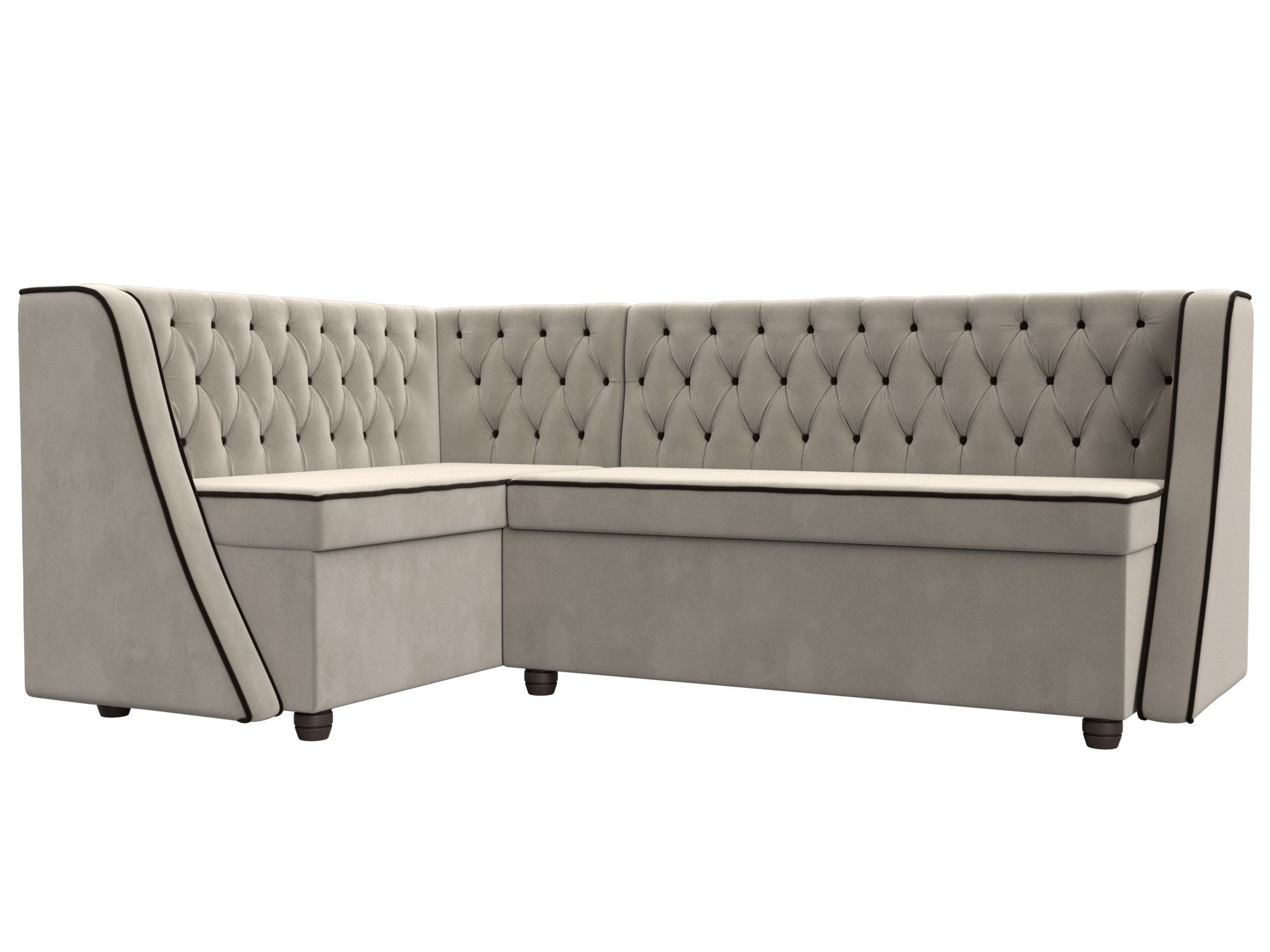 Диван кухонный угловой Лофт левый угол Бежевый\Коричневый, Микровельвет