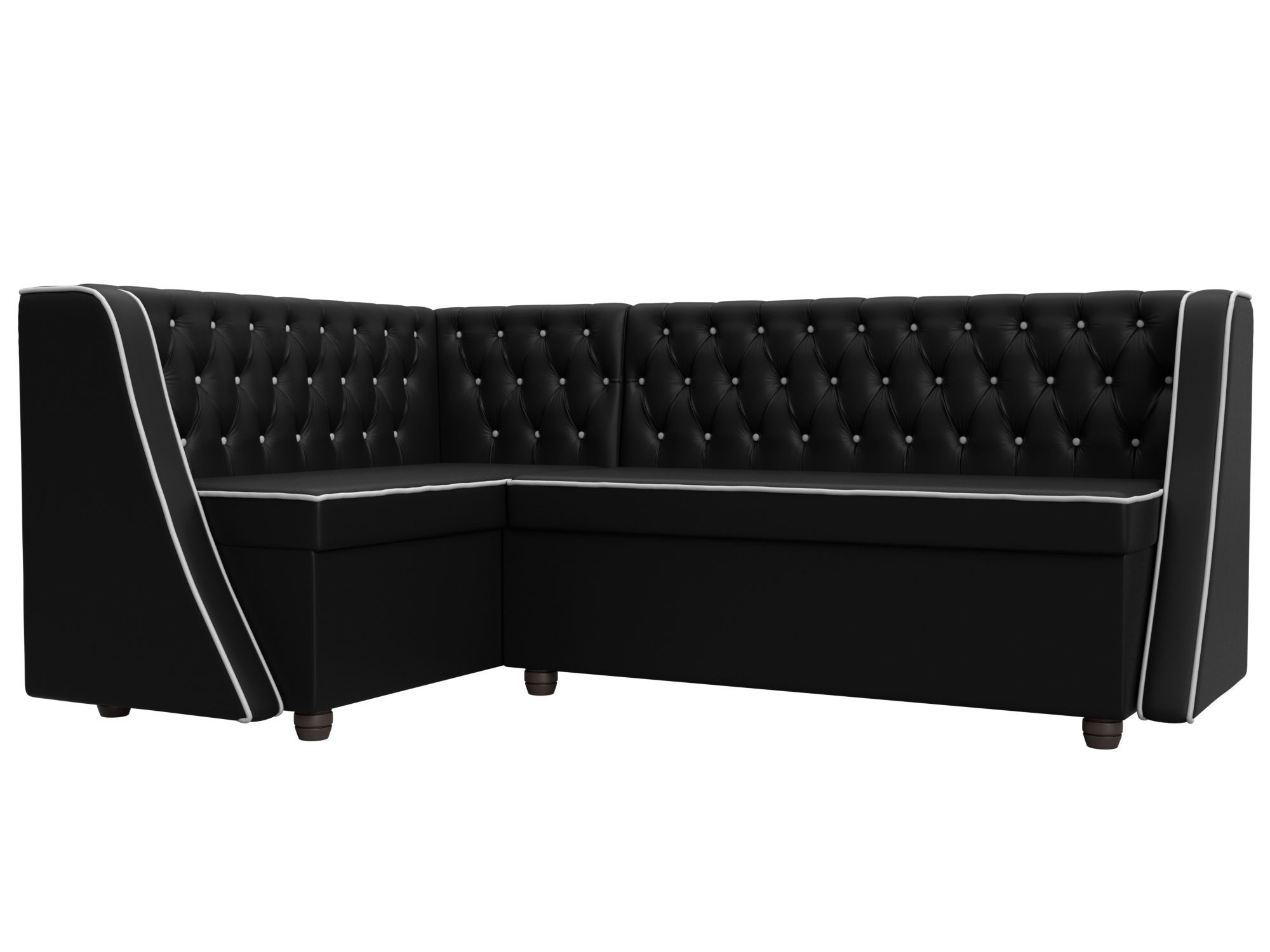 Диван кухонный угловой Лофт левый угол Черный\Белый, Экокожа
