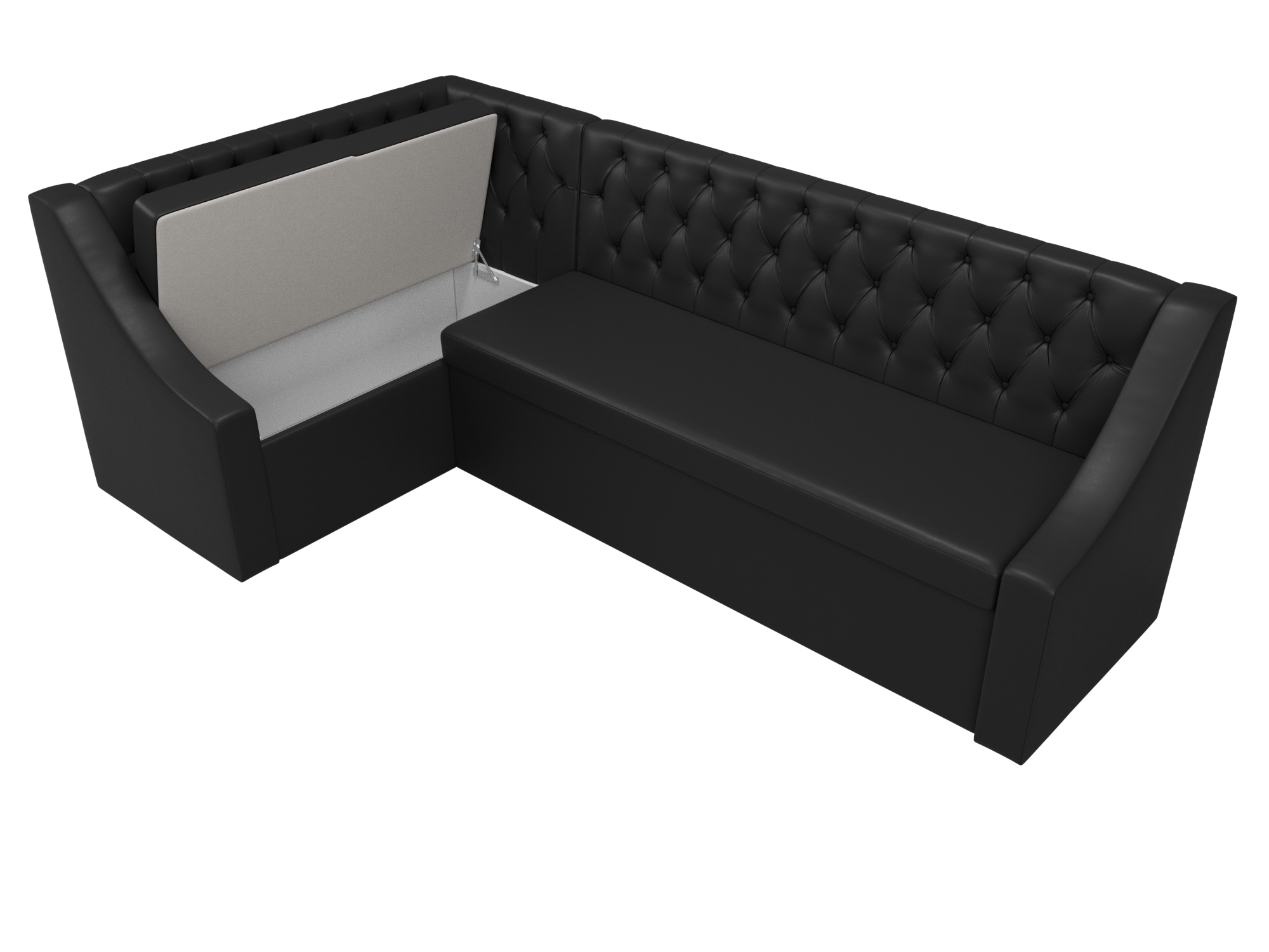 Диван кухонный угловой Мерлин левый угол Черный, Экокожа