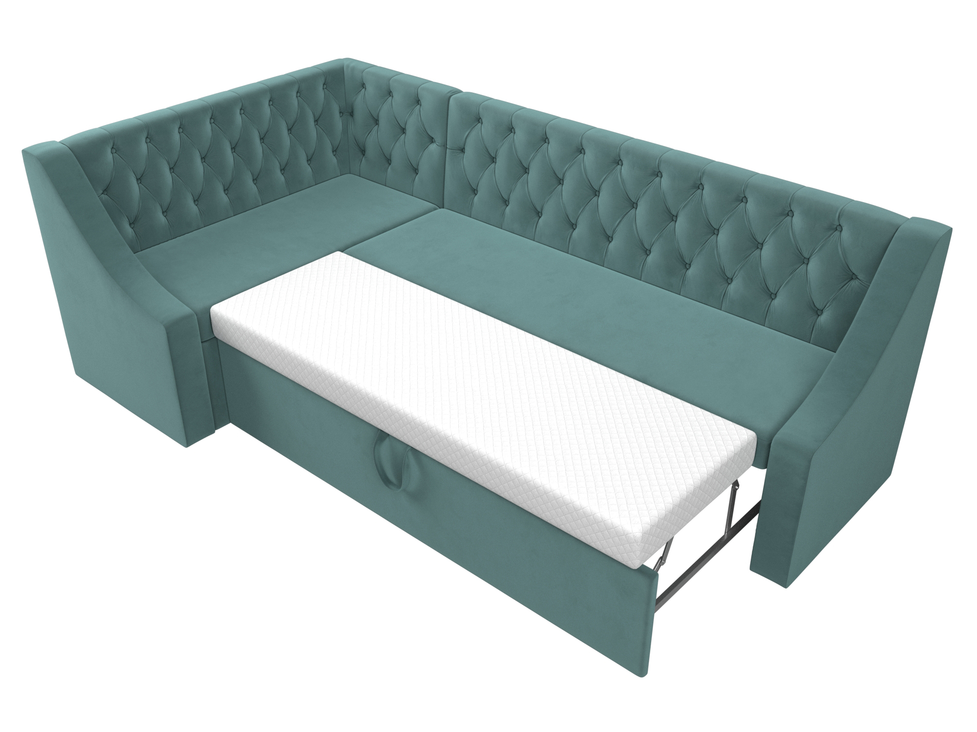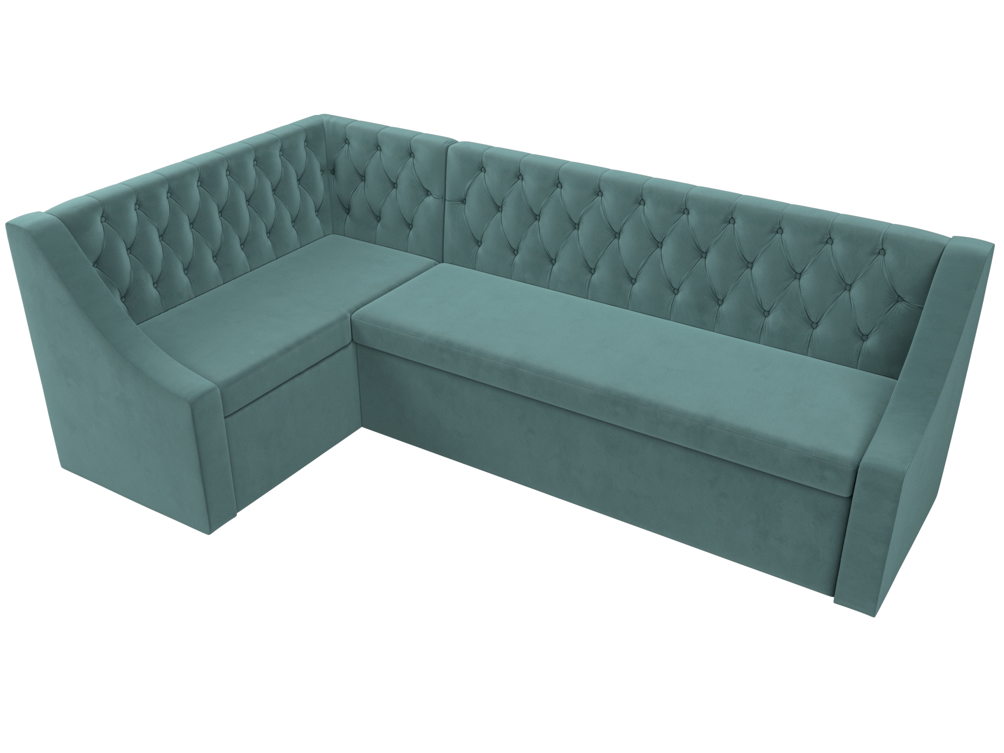 Диван кухонный угловой Мерлин левый угол Бирюзовый, Велюр