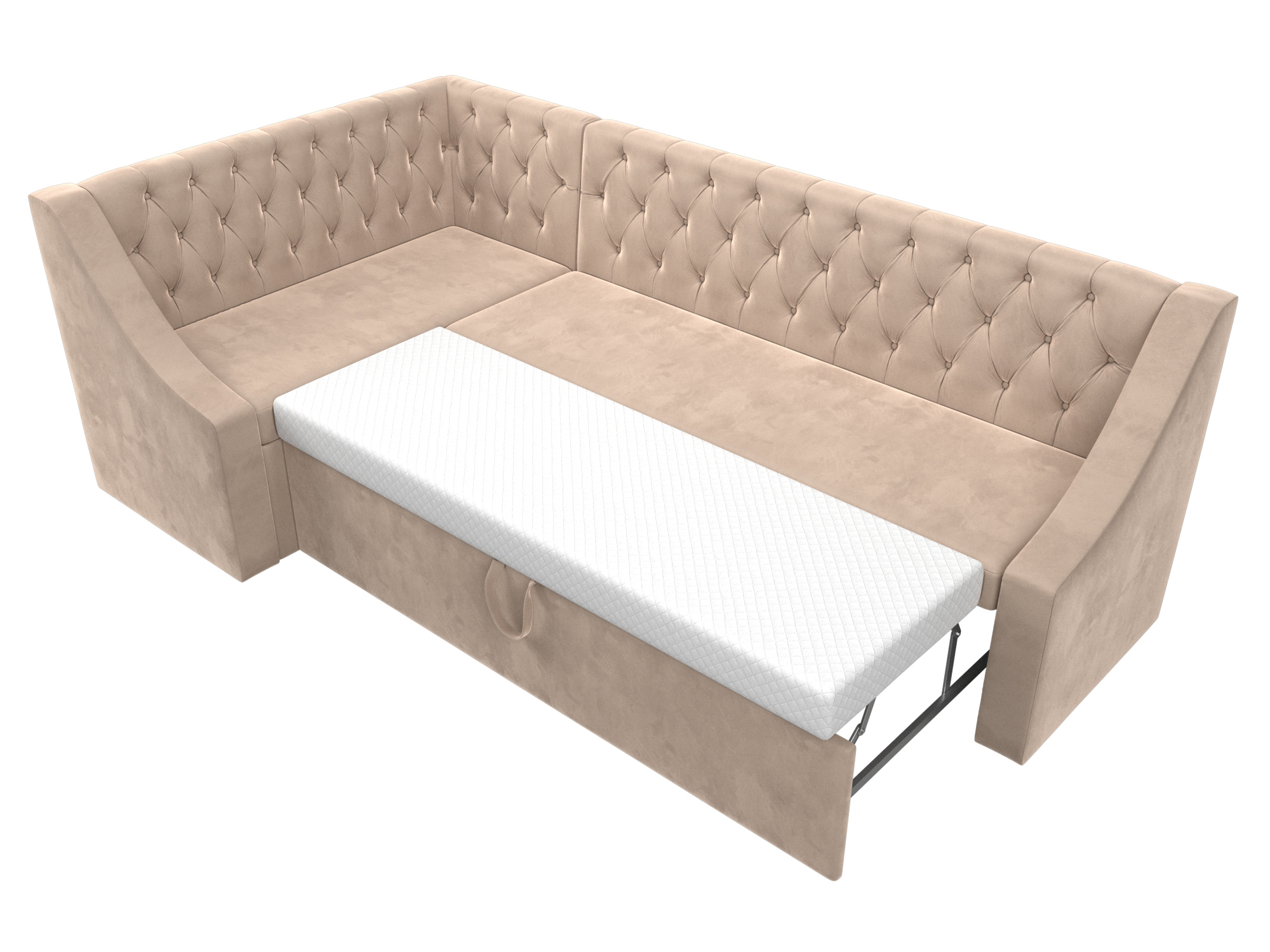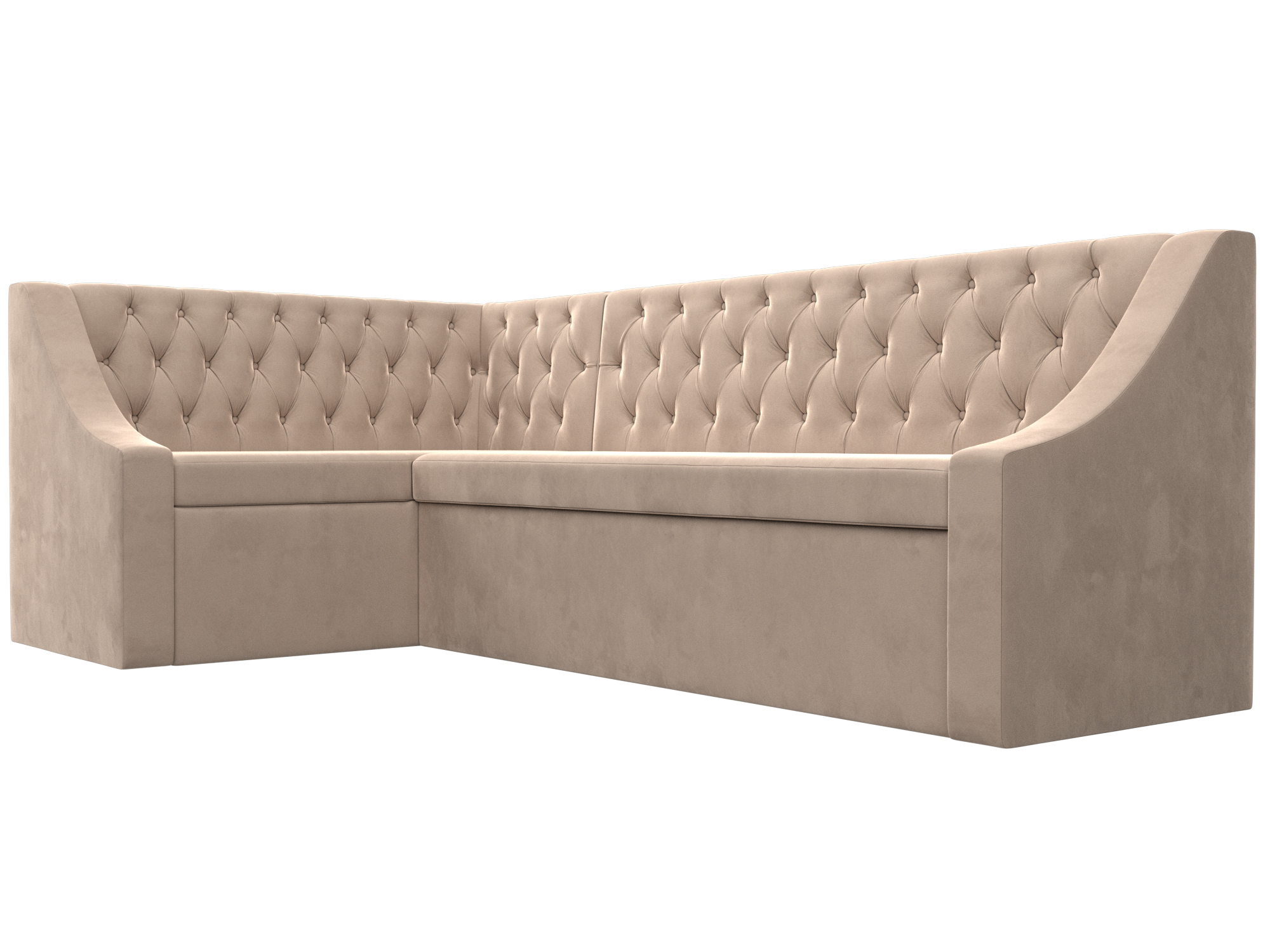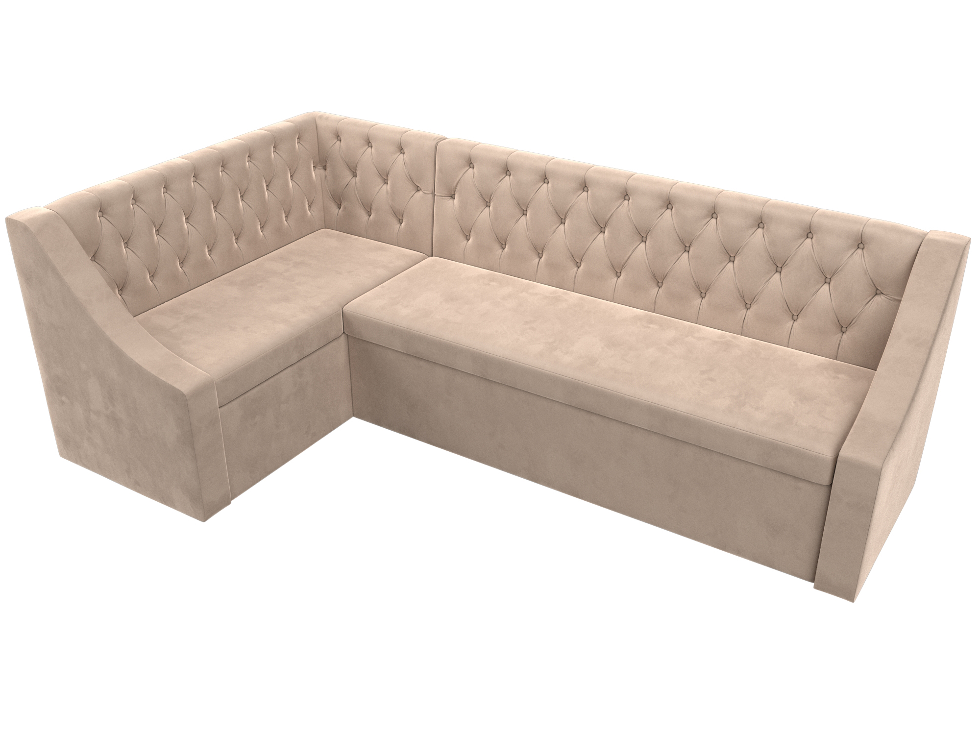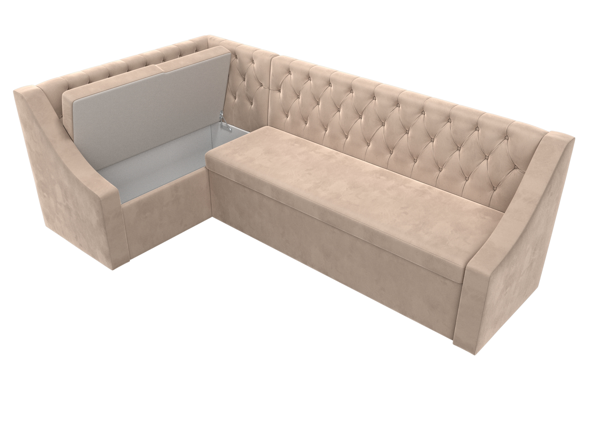 Диван кухонный угловой Мерлин левый угол Бежевый, Велюр