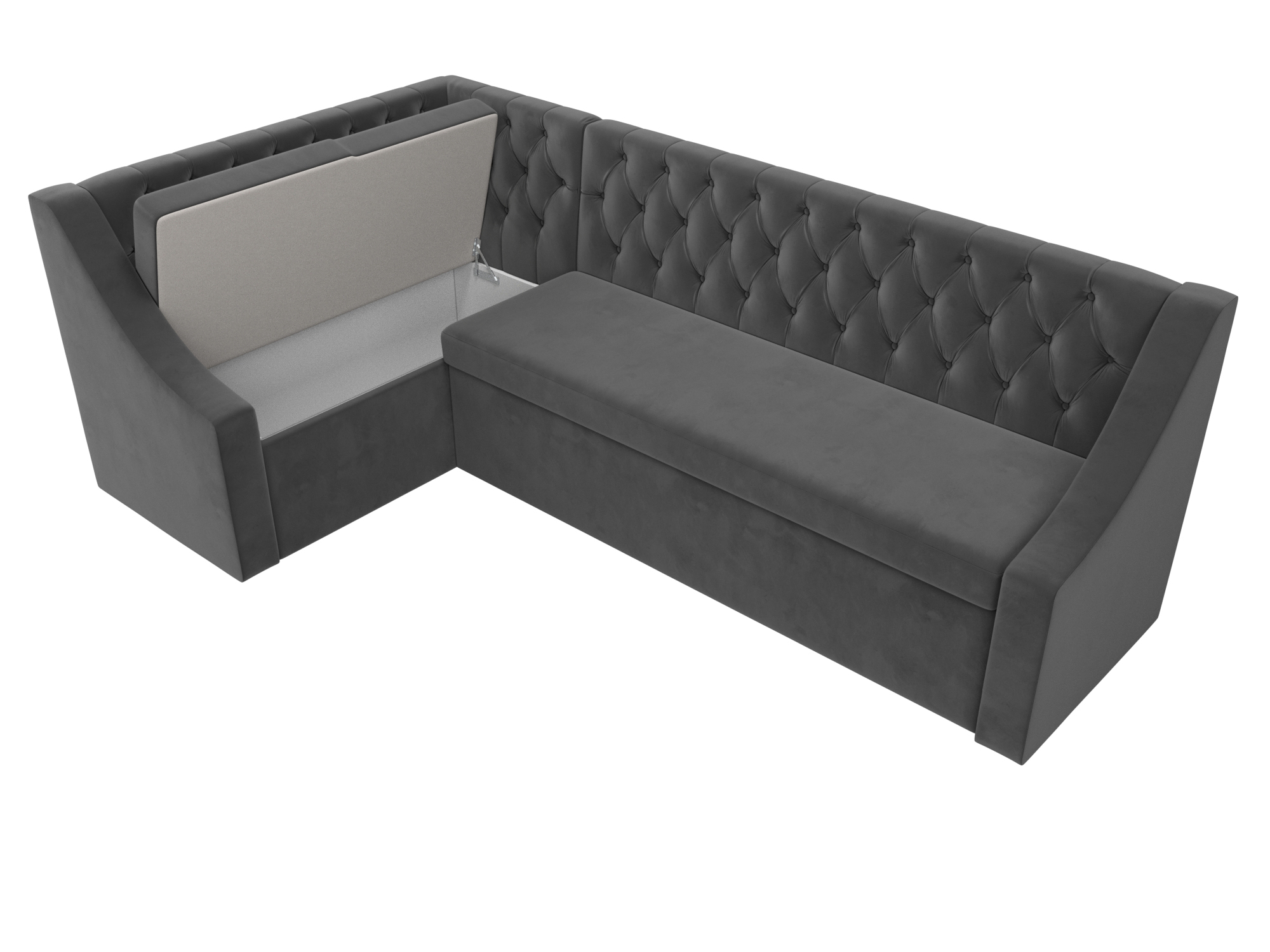 Диван кухонный угловой Мерлин левый угол Серый, Велюр
